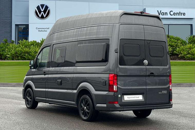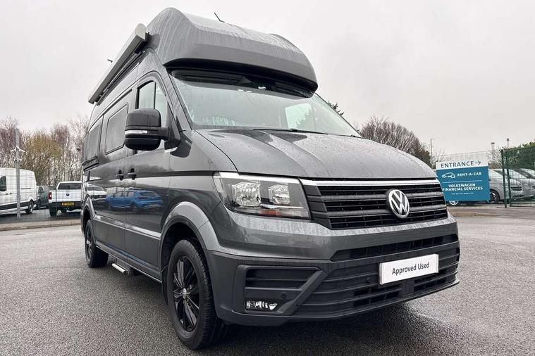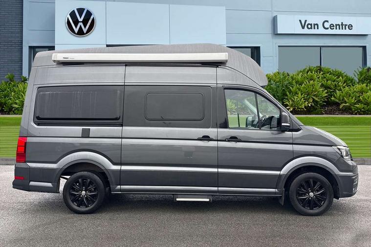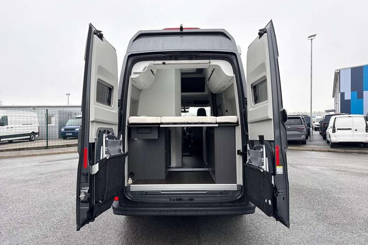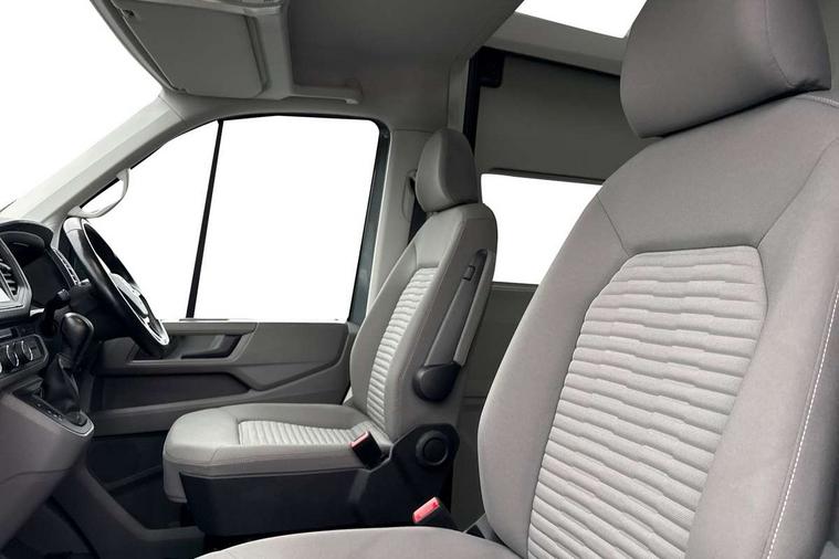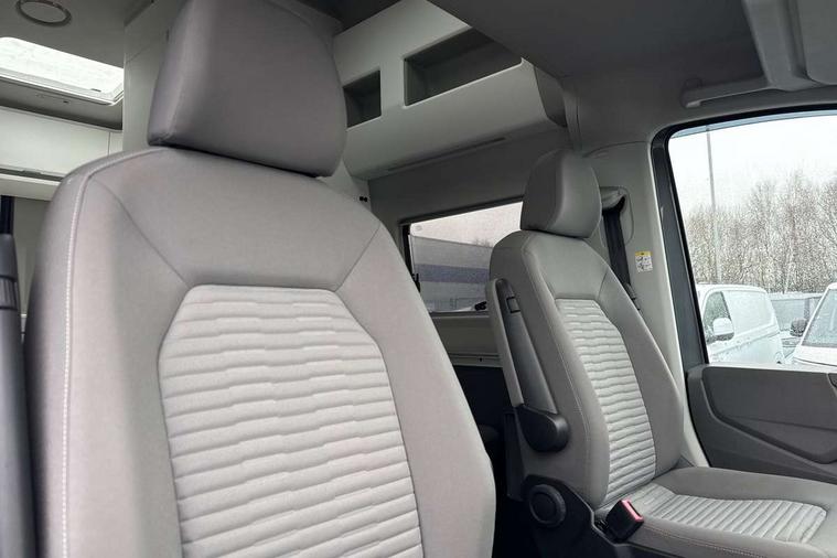 Adaptive cruise control, AppConnect, Bluetooth connection, Central operating unit with touch control for monitoring heating, lighting and water levels, Compact motorhome with multifunctional interior, Cross wind assist, Discover media navigation system with 8" display including streaming and internet, Driver alert system, eCall emergency call system, Electromechanical servotronic steering, Trip computer, We connect plus preparation, 75 litre fuel tank with lockable cap, Second battery - operating 12V voltage, 4 speakers(2 tweeters/2 woofers), DAB+ radio, 180 degree rear wing doors, Automatic hazard lights activation under emergency braking, Body colour bumpers, Electrically operated retractable step, Front fog lights with cornering function, Manual sliding side door - driver's side, Rear wash/wipe, Third brake light, Two piece mosquito nets on sliding door, Two sky lights with sliding blinds and fly screens, Windows with sliding blinds and fly screen, 110 litres fresh water storage tank, 12V socket in cab, 4 x 230V electrical sockets, 70 litres fridge freezer compartment, 90 litres waste water tank, Climatic manually controlled air conditioning with dust and pollen filter and air recirculation, Dinette with 4 seats and table, Driver and passenger swivel seats with armrests, height and lumbar adjustment, Extendable work surface, Folding chairs and tables stored in rear doors, Front head restraints, Fully insulated living area with floor, roof and wall insulation, Gas storage cupboard for two bottles, Hob with two burners, Isofix child seat preparation, Leather trimmed multi function steering wheel with heating function, Multiple USB sockets in cab and living area, Rake/reach adjustable steering wheel, Rear bench seat, Rear headrests, Rubber floor covering in cab, Seat trim covers in valley fabric upholstery, Single front passenger seat, Sink with hot and cold water with folding tap, Transverse two person rear bed, Wet room with shower and cassette toilet, 3 point inertia reel seatbelts - all 4 seats, Anti-lock braking system (ABS), Automatic post collision braking system, Child locks on rear doors, Driver/Front Passenger airbags, Electronic brake assist (EBA), Electronic stabilisation programme (ESP) with load adjusting, Front assist with city emergency braking system, Hill start assist, Parking brake with hill hold control, Seat belt warning light for driver, Traction control system with ASR, Anti theft alarm system with interior monitoring in cab, backup horn and towing protection, Engine immobiliser, Remote central locking with 2 remote keys, 17" Lismore alloy wheels, Tyre mobility kit Includes 12V compressor and tyre sealant,