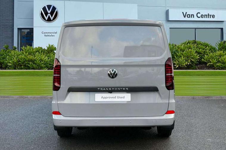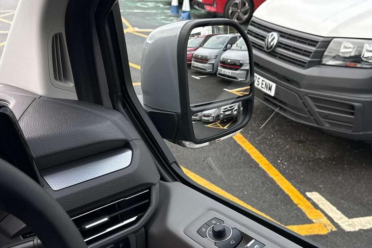 12" digital drivers display, 13" touchscreen infotainment display with wireless app connect and DAB radio, 5G Modem, Adaptive cruise control, Apple CarPlay and Android Auto, Dynamic road sign display, eCall emergency system, Electromechanical speed sensitive power steering, height and longitudinally adjustable steering column, Lane and blind spot assist with exit warning system, Preparation of VW connect and connect plus, Traffic jam assist, Wireless mobile phone charging, Wrong way driver warning, Body colour bumpers, Body coloured door handles, Body coloured door mirrors, Body coloured radiator grille, Electrically heated, adjustable and folding door mirrors, Heat reflecting side window glass, Mud flaps front and rear, Rear Transporter nameplate in black grained decorative trim, Vehicle opening configuration 1x 1st row of seats, 2x all doors, 12V outlet in centre console and 12V outlet on rear right D-pillar, 2x 15-W USB data/charging ports in dashboard and 1x USB-C, 1x USB-A center bottom, 2x LED lights in load compartment, 3x additional super bright LED lights in load compartment, 4 way height and tilt adjustable head restraints, 5 additional USB-C charging ports, Black plastic scuff plate for sliding door in cargo without illumination, Cabin interior lighting, Gear selector lever on steering wheel, Glasses compartment in driver side roof, Grab handle on A-pillar passenger side, Illuminated lockable glovebox, Lashing rings for reinforced floor covering, Narrow centre console with cup holder and compartment for mobile phone, Overhead storage compartment, Rubber floor covering in cab, Striped fabric upholstery, Without passenger seats in load compartment, Driver and front passenger airbag with front passenger airbag deactivation, Dual tone horn, Front and curtain airbags for driver and front passenger, Seat belt pretensioner for driver seat, Anti theft alarm system with interior monitoring in cab, backup horn and towing protection, Electronic immobiliser, Lockable wheel bolts, Preparation for alcohol ignition interlock, 5+ Promise, Alternator - 230A, Electromechanical brake booster, Electronic stability control, ABS, ASR with deactivation button, hill start assist and brake assist system,