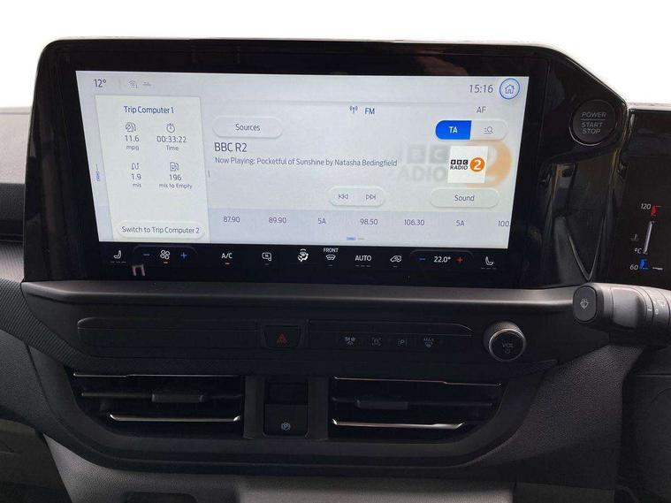 13" Touchscreen, 5G embedded modem, AECS NO SMS/Roll Detect 2G, PAS, Tyre pressure monitor, SYNC 4 - Android Auto/Apple Car Play, advance speech recognition, over the air update capability, Automatic headlights, Automatic windscreen wipers, Body coloured door mirrors, Body coloured front bumper, Body coloured rear bumpers, Daytime running lights, Electric front windows with one touch facility for driver and front passenger, Front mud flaps, Front splash guards, Low roof line, Quickclear front window defroster, Rear cargo hinged door, Rear splash guards, Trailer sway control, 6 Load compartment tie down loops, Courtesy light, Interior grab handle with driver's sunglasses holder, LED lights, Locking glove box lid, Sensico gearshift knob, 2 remote keys, Alcohol Interlock wiring preparation pack, Keyless entry and start, Locking wheel lug nut, Thatcham category 1 alarm, 20L AdBlue tank, ABS, Diesel particulate filter, ESP, Hill launch assist, Traction control, Full wheelcovers,