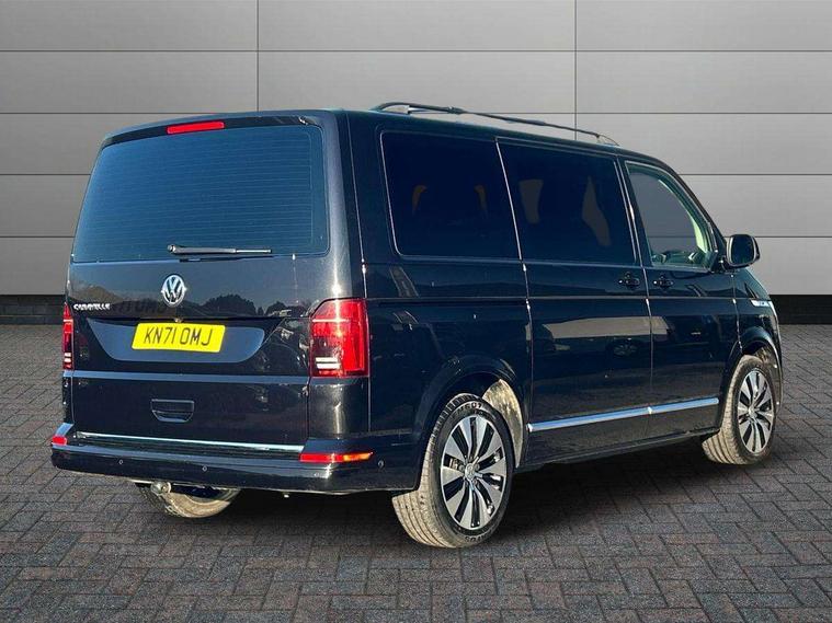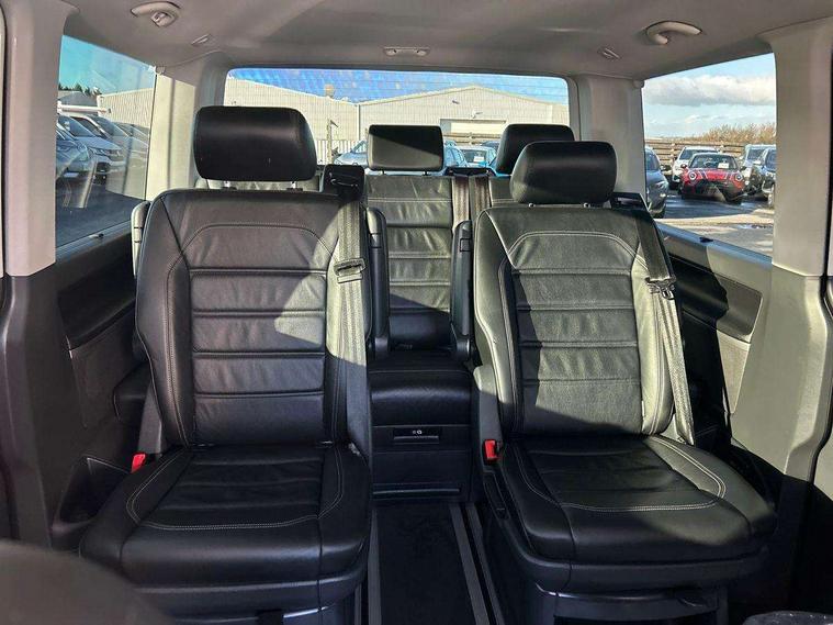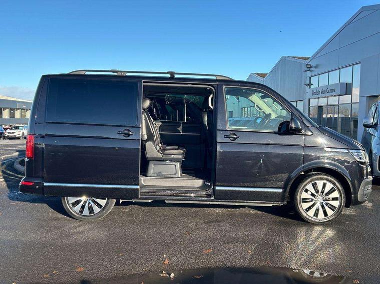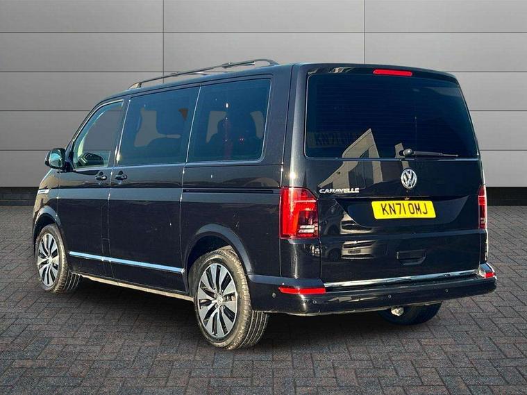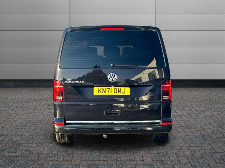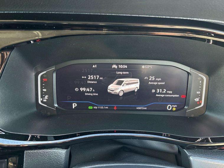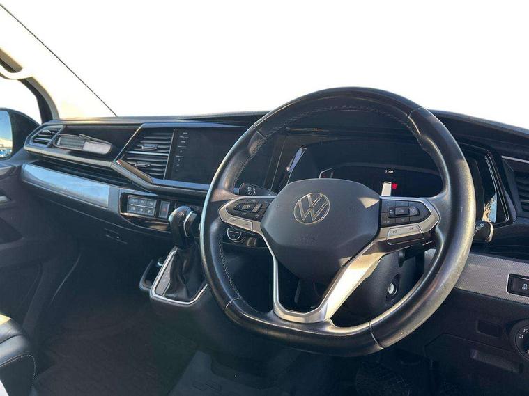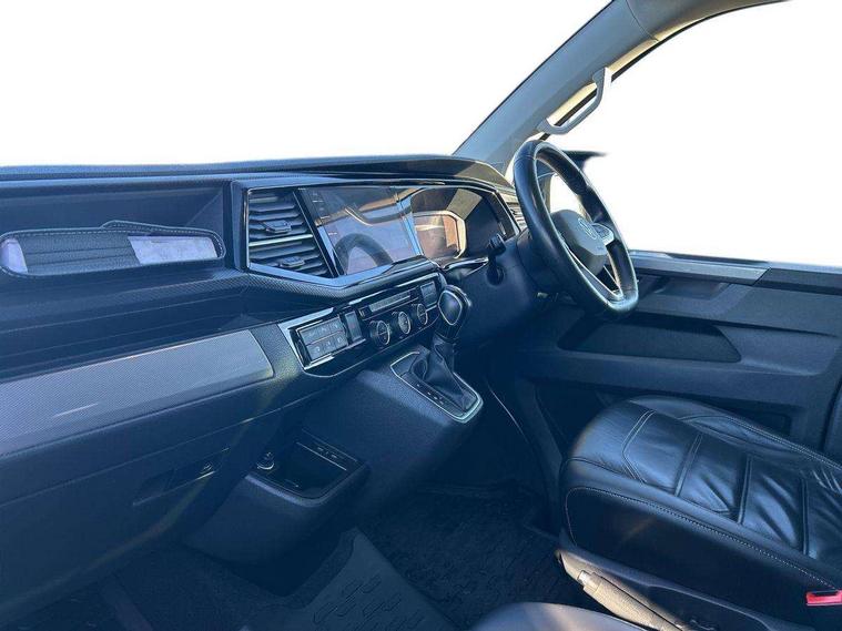 Adaptive cruise control including speed limiter and city emergency braking, Bluetooth handsfree set, Coolant temperature indicator, Cross wind assist, Digital clock, Digital cockpit and driver alert system, eCall emergency system, Electric tailgate without interior release, Mobile phone interface comfort with inductive charging feature, Navigation system preparation, Rear gate with window aperture and power opening and closing, Rest assist, Service interval indicator, Start/stop system with regenerative braking, Tailgate power latching without unlatching from the inside, Trip computer, Voice control system, Warning lights, Wired and wireless app connect, 16 inch chassis with 16 inch brake system, Differential lock, 2 (type C) USB interfaces in dashboard, 2 USB charging sockets in the left C pillar, 6 speakers - 2 tweeters, 2 woofers, 2 full range speakers, DAB digital radio reception, 8 feet standard roof with mounting points for roof rack system, Additional dust seals on the outside, Automatic headlight control system, Automatic headlight range control, B pillar in glossy black contrasting colour adhesive film, Black radiator grille with 5 chrome trims with additional chrome trim at lower radiator grille, Body colour bumpers, Body coloured exterior door handles, Break away auto dimming rear view interior mirror, Caravelle nameplate on the fender and on the rear, Chrome trims in front lower air intake on the sides and in rear, Electric front windows, Exterior mirrors - power adjustable, heated and power folding, Fixed side window front and rear in load/passenger compartment left and right, Heated washer nozzles in front and washer fluid level indicator, LED headlights with LED daytime running lights, Left and right convex exterior mirror, Manual coming and leaving home function, Rear window with heat insulating glass, heated, rear window wiper and washer system, Windshield wiper intermittent control with rain sensor, Without trailer hitch, 2 velour floor mats, 3 Spoke leather multi function steering wheel, Air recirculation system, Air vent in driver's door, Allergen filter, Armrest for both cab seats, Comfort headliner in cab and headliner for recirculated air vents in passenger compartment, Comfort seat on the left and right, in 1st row of seats (not swiveling), Dashboard illuminated dimmable instruments, Electromechanical speed sensitive power steering, height and longitudinally adjustable steering column, Front cupholder, Front/rear reading lights, Glove compartment with illumination, Grab handles on A pillar for access, on driver and front passenger side, Height and tilt adjustable head restraints for all seats, Illuminated steps in passenger/load compartment, Interior lighting with LED technology in load/passenger compartment, Interior lighting with switch off delay and contact switches on all doors, Interior loading edge protection in stainless steel, ISOFIX and top tether child seat anchorage in 2nd to 4th rows, Jack and tool kit, Lashing rings for load restraint system for reinforced floor covering, Leather handbrake grip, Lockable glovebox, Luggage compartment cover, Passenger compartment side trim panel with leather look mirror, Rail seat system in passenger compartment, Rear cupholders, Refrigerant R1234yf, Reinforced carpet floor covering in passenger compartment, Roller blinds for side windows, Separately controllable seat heater in cab, left and right, Soft folding grab handles on roof frame, Special interior noise suppression measures, Special sound deadening measures in cab and passenger compartment, Stainless steel load sill protection, Step illumination with caravelle lettering, Storage compartment on outer side of front seats, Storage net on lower dash passenger side, Storage pockets in backrests of front seats, Sun visors with illuminated mirror and airbag label on front passenger sun visor, Sunshades for side windows in passenger compartment, Two 12V accessory power outlets, Variable intensity instrument illumination, Velour non woven floor covering in cab, Chrome pack - Caravelle, Non smokers pack - Caravelle, 3 point automatic seatbelts in rear, Brake pad warning light, Driver and front passenger airbag with front passenger airbag deactivation, Electronic brake force distribution, Electronic stability control, ABS, ASR with deactivation button, hill start assist, brake assist system, Front assist with autonomous emergency braking, Front side airbags with curtain airbags for driver and front passenger, Height adjustable 3 point seat belts on outer seats in cab with electric pretensioners, Power operated child safety locks, Single tone horn, Traction control, Warning buzzer and light for driver seat belt not fastened, Alarm deactivation switch of interior and tow away protection on B pillar, Anti theft alarm system with interior monitoring in cab, backup horn and towing protection, Central locking system with radio remote control, system controls inside and safelock, Deadlocks, Electronic immobiliser, Lockable fuel cap, Locking wheel bolts, Comfort dashboard titanium black lower part with black chrome elements and bezels, Pewter wave grey decorative inserts,
