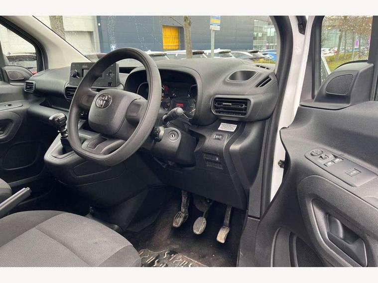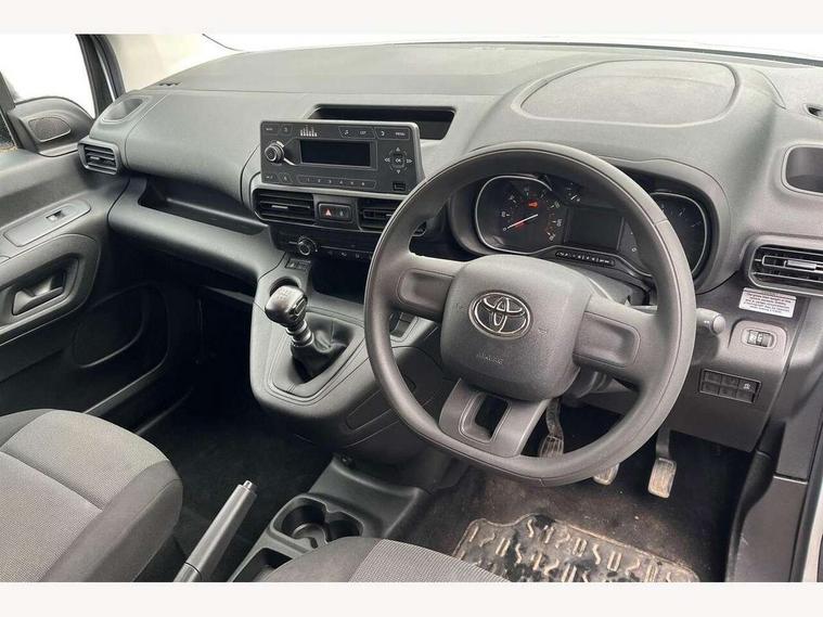 5" touchscreen multimedia display, Analogue speedometer, Analogue tachometer, Audio switches behind steering wheel, Bluetooth handsfree connectivity, eCall emergency system, LCD screen and pictogram, Monochrome multi information display, MyT connected services, PAS, Tyre pressure warning system (TPWS), 2 speakers, Digital radio (DAB), USB connector, 180 degree opening rear doors, Anti jam protection on windows, Auto Headlights, Black door handles, Black door mirrors, Black front and rear bumpers, Black protection moulding on side door, Black upper front grille, Daytime running lights, Electric front windows with one touch up/down facility, Heated and power adjustable door mirrors, Manual retractable door mirrors, Manual wipers, Panel rear wing doors, Privacy glass 30% smoke tint, Roof antenna, Roof rails, Roof rails predisposition, Tinted windows, Two manual sliding side doors, 3 spoke urethane steering wheel, Additional tray on passenger dashboard, Black interior door handles, Bottle holders (0.5L), Cargo area lighting and 3 bulbs, Cargo deck load hook x6, Chrome insert on gear shift, Closed upper passenger dashboard storage compartment, Cooler in glovebox, Driver and single passenger seat, Fabric seats, Front bottle holders, Front room lights, Full metal bulkhead, Gear shift indicator, Height adjustable front headrests, In-floor storage box, LED Driver and front passenger personal lights, Manual air conditioning, Mirror on driver sun visor, Open glovebox passenger side, Open tray on passenger dashboard, Open upper driver dashboard storage compartment, Overhead driver and front passenger storage, Panel bulkhead, Piano black insert on gear shift, Plastic load floor protection, Pollen filters, Row 1 carpet floor, Row 3 panel on both sides (in place of window), Rubber cargo liner, Rubber floor mats in load area, Urethane gear shift, Passenger airbag, Supplement restraint system (SRS) 2 airbags, 1 remote key + 1 simple key, Central locking, Key starting system, Anti lock braking system (ABS), Brake assist, Downhill Assist Control (DAC), Electronic brake force distribution (EBD), Electronic Stability Control (ESC), Hill start assist, Manual parking brake, Stop/start function, Vehicle stability control, 16" grey steel wheels with black large centre caps, Full size spare wheel,