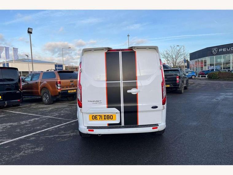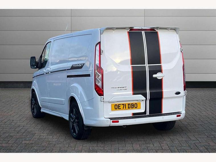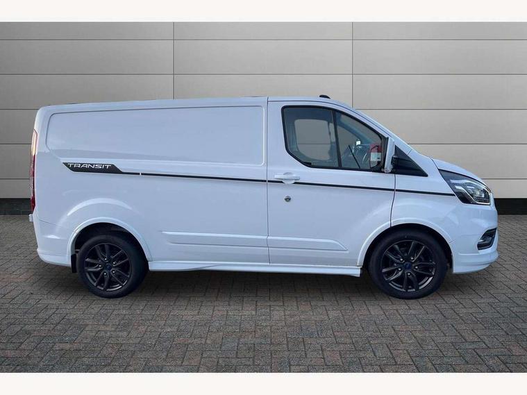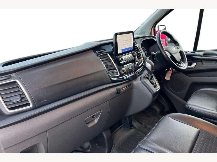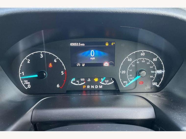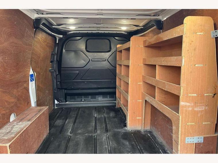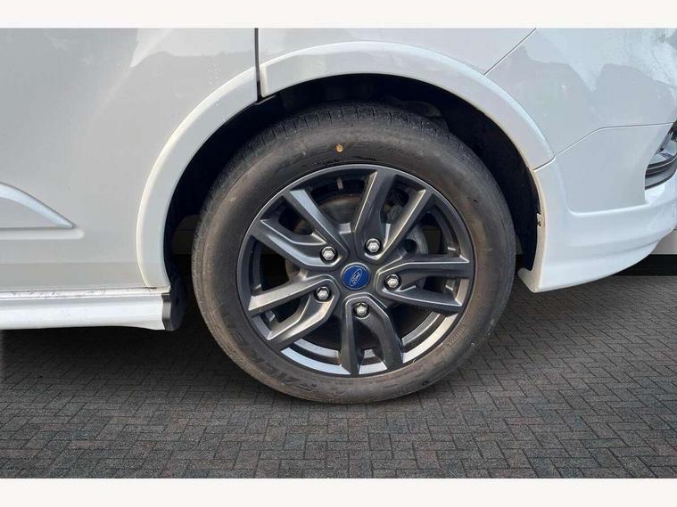 Easy fuel capless refuelling system, Embedded modem, Ford Eco mode, PAS, Seatbelt warning indicator, Selectable drive mode, Tyre pressure monitor, Vehicle maintenance monitor, Audio controls mounted on steering wheel, 180 Degree rear cargo check arms, Body coloured body side mouldings, Body coloured door mirrors, Body coloured front bumper, Body coloured lift/decklid exterior handles, Body coloured rear bumpers, Coloured grille with 3 base bars, Door open tyre carrier drop, Electric front windows with one touch facility for driver and front passenger, Emergency brake light flashing, Front splash guards/Mud flaps, Headlamp levelling, Hood accent stripe, Intermittent front wash/wipe, Passenger side sliding load door with track cover, Rear door edge warn reflectors, Rear mudflaps, Sport van body styling kit, Wide bodyside grey mouldings, 2 Interior grab handles, Assist handle, Colour keyed exterior pack, Complete rear trim board, Courtesy light, Driver and passenger sunvisors with illuminated vanity mirrors, Easy clean load floor, Front manual air conditioning, Full width unglazed steel bulkhead with through load hatch, Header mounted package tray, Height adjustable front headrests, Illuminated footwell, LED load compartment light, Lockable glove box, Map reading lights, Molded gear shift knob, Moulded cab floor liner, Part leather upholstery, Partial molded headliner, Partial rubber inside floor cover, Passenger underseat storage box, Reach and rake adjustable steering column, Recirculation heater, Sunglasses roof storage, Tool kit, Interior trim accent pack C - Transit custom, Less rear seat pack - Transit Custom, Visibility Pack 3 - Transit Custom, 3 point seatbelts for all seats, Driver's airbag, Dual note electric horn, Front outer passenger airbag with deactivation switch, Front passenger airbag, Height adjustable drivers seatbelt mount, Passenger seatbelt height adj, Seatbelt remainder for driver and passenger, Auto locking on drive-away, Auto relocking, Configurable Unlocking, Inclination anti-Theft sensor, Locking wheel lug nut, Power door dead locks, Remote central locking, Speed dependent power lock group, Thatcham category 1 alarm with 2nd remote key, 2 12v sockets, 80 litre fuel tank, ABS, Auto start/stop system, Diesel particulate filter, ESP, Extra heavy duty alternator, Mechanical parking brake, Non limited slip differential front axle, Roll stability control, Side wind mitigation, Standard duty suspension, 18" 7.5 5x2 spoke alloy wheels, Full wheelcovers, Mini steel spare wheel,