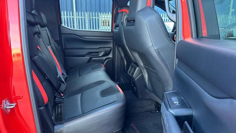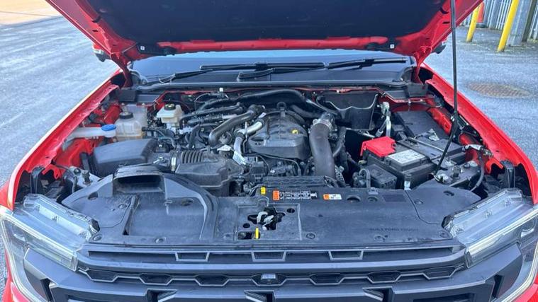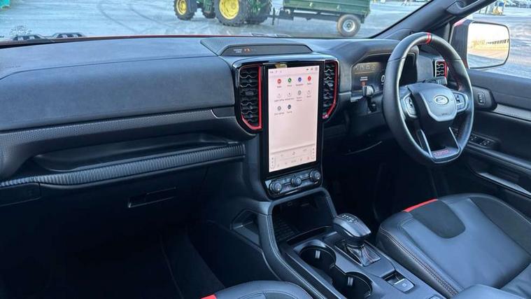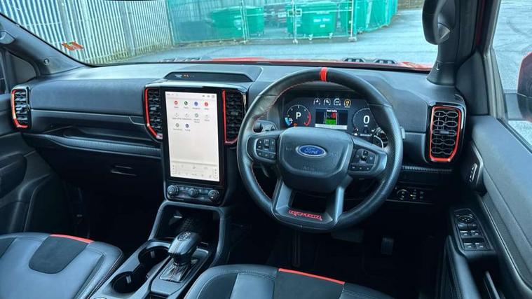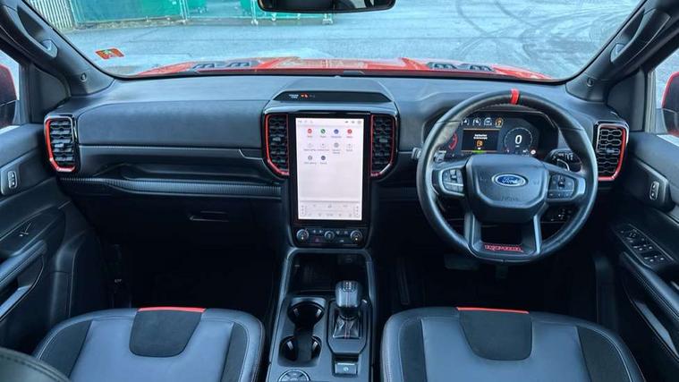 A-pillar assist handle, Electric power assisted steering, Electronic automatic gearshift, Full TFT/LCD instrument cluster, Passenger side roof mounted grab handle, Wireless charging pad, 360 lighting, Accent colour HD front bumper, Acoustic laminated windscreen, Assisted conventional tailgate, Automatic headlamp levelling, Automatic headlights, Black front fender grille, Black grille, Body colour exterior mirrors, Body coloured door handles, Cast alloy side step, Daytime running lights, Dual power heated fold back door mirror with puddle lamps, E-marked glass, Electric rear window defroster, Electric windshield defroster, Electrochromic interior mirror, Extra large wheelarch flares, Fog lamp bezel, Front splash guard, Front towing hooks, Fuel tank guard, High mounted stop lamp, LED Front fog lamp, Level 3 Taillamps, Manual liftgate, Matrix LED headlamps, Metal underbody protection, Non locking capless fuel fill, Power front windows with one touch up/down, Power rear windows, Privacy glass, Rain sensitive windshield wipers, Rear bumper step accent color, Rear fog lamps, Rear splash guard, Rear towing hooks, Self coloured decklid handles, Tempered glass front window, Under hood engine cover, 12v socket in bedliner, Cargo light, Console with double lid, Driver and passenger sunvisor with mirror, Electronic dual zone automatic air conditioning, Fresh air heater, Front premium floor mats, Heated steering wheel, High series air register, LED ambient interior lighting, Load box bedliner, Load box edge protectors, Locking glove box lid, Non woven carpet, Overhead console with dome lamps, Pollen filter, Pull out cup holder, Radio noise supression, Rear floor ducts, Roof storage for driver sunglasses, Steering wheel with multimedia controls, Super matte leather upholstery, Tie down hooks, Washer tank level warn lamp, Front seat pack 9 - Ranger, Functional upgrade pack 3 - Ranger, Heavy duty terrain pack - Ranger, ICE feature pack 106 - Ranger, Interior trim pack 15 - Ranger, Rear seat pack 15 - Ranger, Breakdown warning triangle, Child proof rear door locks, Driver and passenger airbag, Dual note electric horn, 2 Remote control unit - key fob, Locking wheel lug nut, Passive keyless entry and start system, Power door dead locks, Stolen vehicle recovery system, Tailgate lock, Thatcham alarm system, Thatcham security system, 400W Power inverter, ABS/ESP brakes with electronic brake boost, Battery management system, Cabin socket and loadbox socket, Electric parking brake, Electrical outlet 3, Engine start/stop system, Front and rear disc brakes, Locking front axle, Locking rear axle, Performance suspension, Rear power point plug, 17" alloy wheels painted in precision grey and all terrain tyres with Ford carbon black centre cap, 17" Aluminium spare wheel, Spare tyre lock,