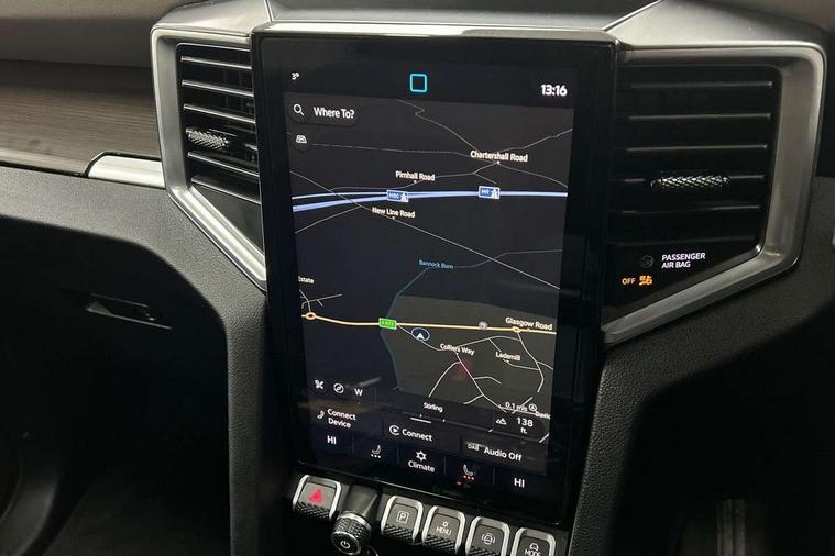 12-inch Infotainment system, Adaptive cruise control ACC with predictive speed limiter, Area View 360 camera, Autonomous emergency braking front assist with monitoring and braking for vehicles, pedestrians, cyclists, Digital Cockpit 12-inch, Dynamic road sign display, eCall emergency system, Lane keeping system lane assist and lane change system side assist, Navigation system, Park assist including park distance control in front and rear, rear traffic alert, PAS, Selector lever, Without manual activation of 360-degree surround and cargo area lighting, Without tachograph, Without trailer maneuvering system Trailer Assist, 1 USB charging socket on the interior rearview mirror, 6 speakers, AM / FM antenna and digital radio reception DAB+, Preparation for VW Connect Basic and VW Connect Navigation, Advanced high-beam control Dynamic Light Assist for IQ.LIGHT LED matrix headlamps, Black bumper in rear with chrome-plated styling elements, Black side steps with silver insert, Body coloured exterior mirror housings and door handles, Body-colored rear gate handle, Chrome styling roll bar, Dark-tinted privacy glass rear side windows and rear window, Diversity antenna, Dynamic headlight range control, Exterior mirrors, power-adjustable, heated and power-folding, with surround lighting, Front and rear power windows, Fuel filler door with integrated misfueling prevention device, Heated rear window, IQ Light LED matrix headlamps, LED front fog lamps, LED rear combination lamps, Mud flaps front and rear, Painted bumper in front with silver insert, Radiator grille with chrome bezel, Satin air vents, Trailer hitch preparation, Windshield sound-insulating with windshield heater, Windshield wiper intermittent control with rain sensor, Without hardtop, Without roof rails/roof rack, Without towing eyes in rear, Without trailer hitch, Without underride guard, 10-way power-adjustable driver seat and 8-way adjustable front passenger seat, 3 head restraints in 2nd row of seats, 3 point belts in addition height-adjustable in 1st row of seats, 3-point belts in 2nd row of seats, 3-seater bench in 2nd row of seats, Ambient lighting, Art velours upholstery, Carpet floor covering, Center armrest in rear, Child seat anchors ISOFIX on outer rear seats, i-Size compatible, Child seat recognition, Door handles in chrome, Driver seat with map pocket, Dual-zone climate control Climatronic, Gearshift/selector lever knob, leather, Glove compartment, illuminated and lockable, Headliner ebony black, Heating and fresh air system, Inductive charging feature, Leather-wrapped multi-function steering wheel, Overhead console 2 reading lights for driver and front passenger with glasses compartment in overhead console, Premium dashboard in leather look vinyl, Refrigerant, Roof grab handle on driver side, rigid grab handles, on A-pillar, Seat belt pretensioner, Seat occupied recognition with seat belt reminder for driver, front passenger and rear seat area, Sun visor on driver and front passenger side with illuminated vanity mirror, Tie-downs on the cargo area, Top tether child safety seat anchorage, Velour floor mats, Without hand brake lever, Without LED cargo area lighting, Without load compartment cover, Without load compartment loadliner, Without load support including protection frame on the rear cabin wall, Rear seat package II, Curtain and side airbags with center airbag, Front passenger airbag deactivation, Knee airbags for driver and front passenger, Without fire extinguisher, Without first aid kit, Anti-theft alarm system with interior monitoring, backup horn and towing protection, Keyless locking and starting system Keyless Access with SAFELOCK and 2 remote control folding keys, Online anti-theft alarm system, Rear gate lockable via central locking system, Remote control key, Tire Pressure Monitoring System (direct measurement), Wheel lock for spare wheel, Wheel locks, With programmable key, 120-V/230-V outlet in rear center console, 3.55 gear ratio, Alternator - 250A, Automatic post collision braking system, Electronic parking brake, Electronic stability control (ESC) and Electromechanical brake booster, Emission standard, Four-wheel drive, Particle filter, Standard suspension, Stop/start function, Without differential lock in rear, Without electrical interface for external use, 6 switches in overhead console, 18" Amadora silver alloy wheels, Alloy spare wheel,