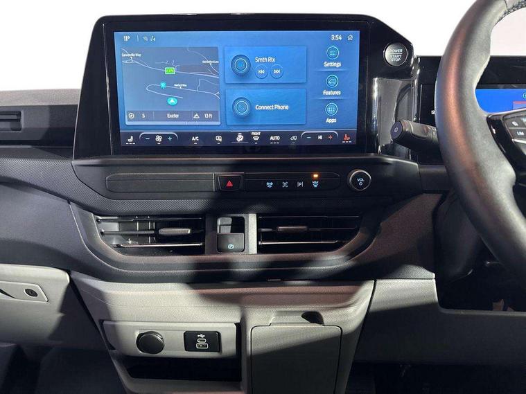 13" Touchscreen, 5G embedded modem, AECS NO SMS/Roll Detect 2G, PAS, Tyre pressure monitor, SYNC 4 - Android Auto/Apple Car Play, advance speech recognition, over the air update capability, Automatic headlights, Automatic windscreen wipers, Body coloured door mirrors, Body coloured front bumper, Body coloured rear bumpers, Daytime running lights, Electric front windows with one touch facility for driver and front passenger, Front mud flaps, Front splash guards, Low roof line, Quickclear front window defroster, Rear cargo hinged door, Rear splash guards, Trailer sway control, 6 Load compartment tie down loops, Courtesy light, Interior grab handle with driver's sunglasses holder, LED lights, Locking glove box lid, Sensico gearshift knob, 2 remote keys, Alcohol Interlock wiring preparation pack, Keyless entry and start, Locking wheel lug nut, Thatcham category 1 alarm, 63 litre fuel tank, ABS, ESP, Hill launch assist, Traction control, Full wheelcovers, Tyre repair kit,