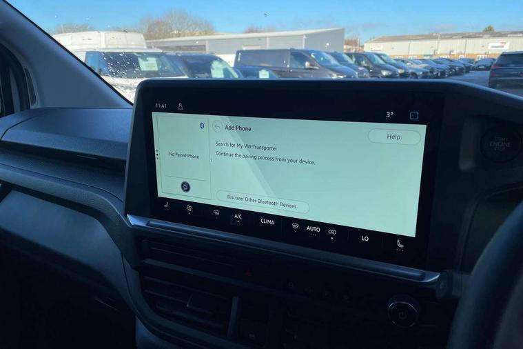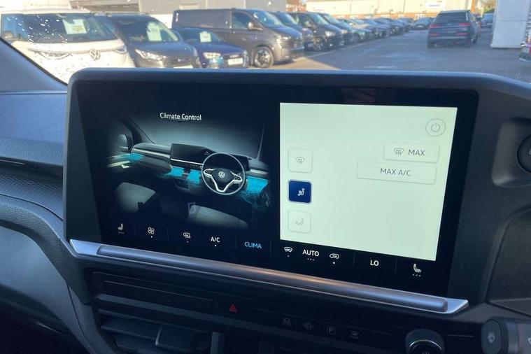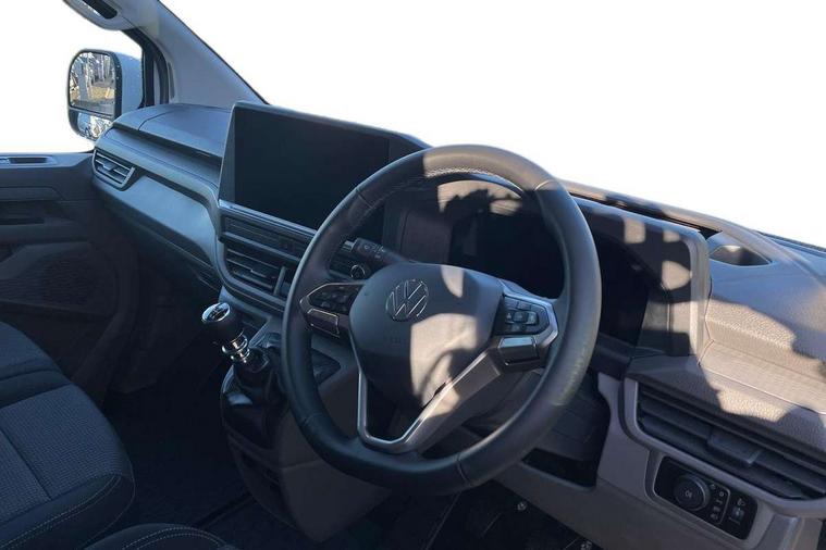 12" digital drivers display, 13" touchscreen infotainment display with wireless app connect and DAB radio, 5G Modem, Adaptive cruise control, Apple CarPlay and Android Auto, Dynamic road sign display, eCall emergency system, Electromechanical speed sensitive power steering, height and longitudinally adjustable steering column, Lane and blind spot assist with exit warning system, Preparation of VW connect and connect plus, Wireless mobile phone charging, Wrong way driver warning, Body colour bumpers, Body coloured door handles, Body coloured door mirrors, Body coloured radiator grille, Electrically heated, adjustable and folding door mirrors, Heat reflecting side window glass, Mud flaps front and rear, Rear Transporter nameplate in black grained decorative trim, Vehicle opening configuration 1x 1st row of seats, 2x all doors, 12V outlet in centre console and 12V outlet on rear right D-pillar, 2x 15-W USB data/charging ports in dashboard and 1x USB-C, 1x USB-A center bottom, 2x LED lights in load compartment, 3x additional super bright LED lights in load compartment, 4 way height and tilt adjustable head restraints, 5 additional USB-C charging ports, Black plastic scuff plate for sliding door in cargo without illumination, Cabin interior lighting, Glasses compartment in driver side roof, Grab handle on A-pillar passenger side, Illuminated lockable glovebox, Lashing rings for reinforced floor covering, Leatherette gear lever, Narrow centre console with cup holder and compartment for mobile phone, Overhead storage compartment, Rubber floor covering in cab, Striped fabric upholstery, Without passenger seats in load compartment, Driver and front passenger airbag with front passenger airbag deactivation, Dual tone horn, Front and curtain airbags for driver and front passenger, Seat belt pretensioner for driver seat, Anti theft alarm system with interior monitoring in cab, backup horn and towing protection, Electronic immobiliser, Lockable wheel bolts, Preparation for alcohol ignition interlock, 5+ Promise, Alternator - 230A, Electromechanical brake booster, Electronic stability control, ABS, ASR with deactivation button, hill start assist and brake assist system,