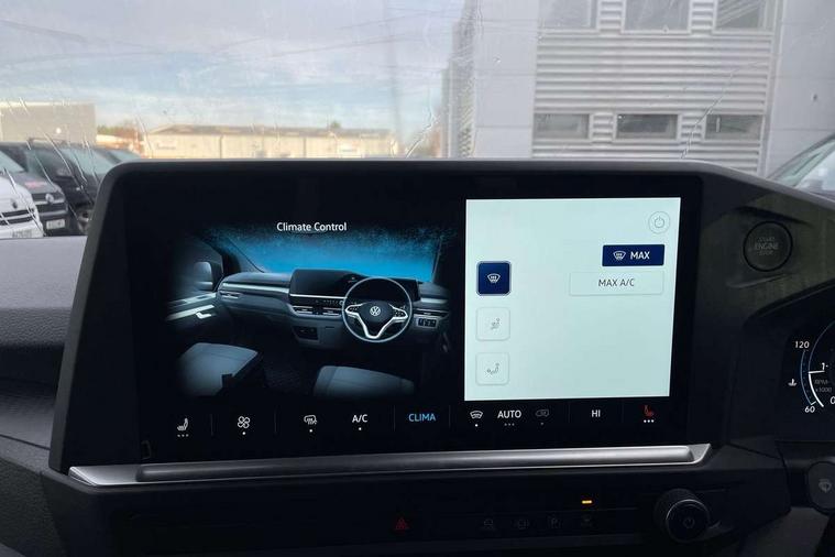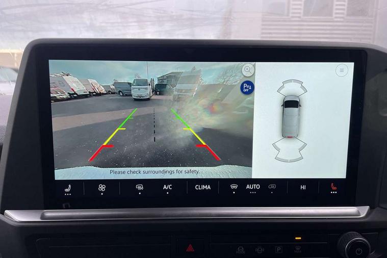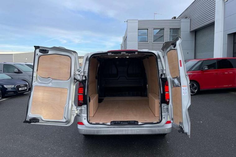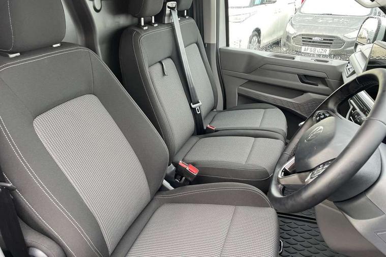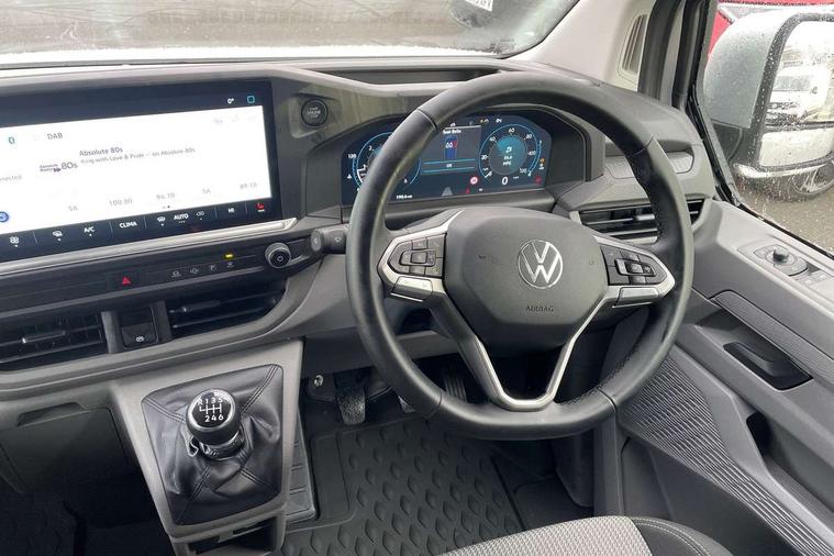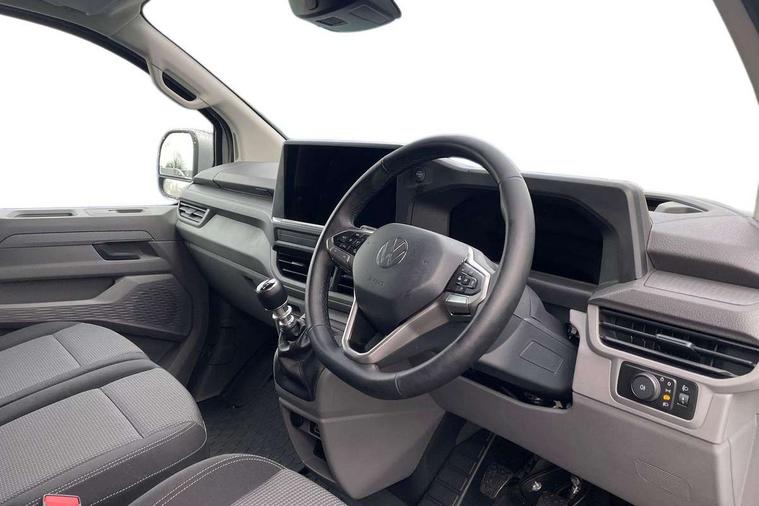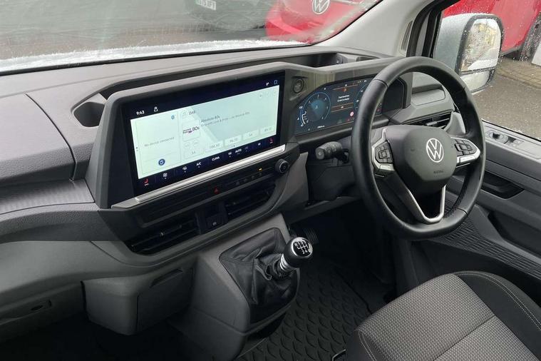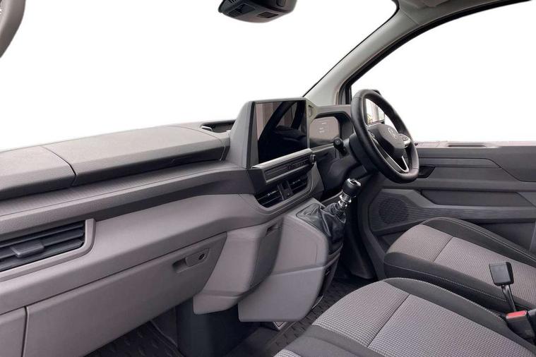 12" digital drivers display, 13" touchscreen infotainment display with wireless app connect and DAB radio, 5G Modem, Adaptive cruise control, Apple CarPlay and Android Auto, Dynamic road sign display, eCall emergency system, Electromechanical speed sensitive power steering, height and longitudinally adjustable steering column, Lane and blind spot assist with exit warning system, Preparation of VW connect and connect plus, Wireless mobile phone charging, Wrong way driver warning, Body colour bumpers, Body coloured door handles, Body coloured door mirrors, Body coloured radiator grille, Electrically heated, adjustable and folding door mirrors, Heat reflecting side window glass, Mud flaps front and rear, Rear Transporter nameplate in black grained decorative trim, Vehicle opening configuration 1x 1st row of seats, 2x all doors, 12V outlet in centre console and 12V outlet on rear right D-pillar, 2x 15-W USB data/charging ports in dashboard and 1x USB-C, 1x USB-A center bottom, 2x LED lights in load compartment, 3x additional super bright LED lights in load compartment, 4 way height and tilt adjustable head restraints, 5 additional USB-C charging ports, Black plastic scuff plate for sliding door in cargo without illumination, Cabin interior lighting, Glasses compartment in driver side roof, Grab handle on A-pillar passenger side, Illuminated lockable glovebox, Lashing rings for reinforced floor covering, Leatherette gear lever, Narrow centre console with cup holder and compartment for mobile phone, Overhead storage compartment, Rubber floor covering in cab, Striped fabric upholstery, Without passenger seats in load compartment, Driver and front passenger airbag with front passenger airbag deactivation, Dual tone horn, Front and curtain airbags for driver and front passenger, Seat belt pretensioner for driver seat, Anti theft alarm system with interior monitoring in cab, backup horn and towing protection, Electronic immobiliser, Lockable wheel bolts, Preparation for alcohol ignition interlock, 5+ Promise, Alternator - 230A, Electromechanical brake booster, Electronic stability control, ABS, ASR with deactivation button, hill start assist and brake assist system,