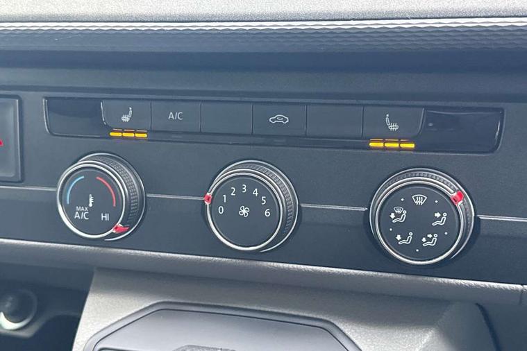 Adaptive cruise control, Cross wind assist, Dimmable illuminated instruments, Driver alert with Multi-function display plus, eCall emergency system, Forward collision warning front assist with autonomous emergency braking, Mobile phone interface, Multi function display plus with black and white display, 2 USB interfaces type C in dashboard, 4 speakers with 2 tweeters and 2 woofers, Composition colour radio with 6.5" touchscreen, Digital radio reception (DAB+), Volkswagen app connect, Closing rear wing door with unlatching from the inside, Front fog lamps with cornering light, Heat insulating glass (green) in cab and passenger/load compartment, Heated front windscreen, Left convex exterior mirror, Power folding adjustable door mirrors with separately heated, Radiator grille with 2 chrome trims, Rear wing doors without window apertures, Right convex exterior mirror, Transporter nameplate on the rear fender, 3 spoke leather wrapped multi function steering wheel, Comfort headliner in cab, hardboard roof trim in passenger and load compartment, Dust/pollen filter, Front and rear left without window closed side panel in load compartment, Front seats on the right in 1st row of seat, Heavy duty tool kit and jack, High partition, Interior plastic loading edge protection, LED Interior lighting in load and passenger compartment, Refrigerant R134a, Standard lower part dashboard in palladium, Storage compartments on cab seats and reading light, Without right side window apertures in passenger and load compartment, Comfort pack - Transporter, Exterior pack without fog light- Transporter, Light and vision pack - Transporter, Non smoker pack - Transporter, 3 point height adjustable seat belts on outer seats cab with electric pretensioners, Driver and front passenger airbag with front passenger airbag deactivation, Warning buzzer and light for driver and front passenger seat belt not fastened, Without child safety lock in passenger compartment, Anti theft alarm system with interior monitoring in cab, backup horn and towing protection, Lockable wheel bolts, 16" chassis with 16" brake system, Diesel particulate filter, Electronic stability control, ABS, ASR with deactivation button, hill start assist and brake assist system, Start/stop system with regenerative breaking, 17" Devonport silver alloy wheels,