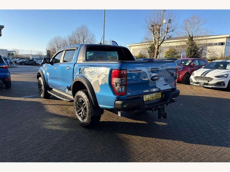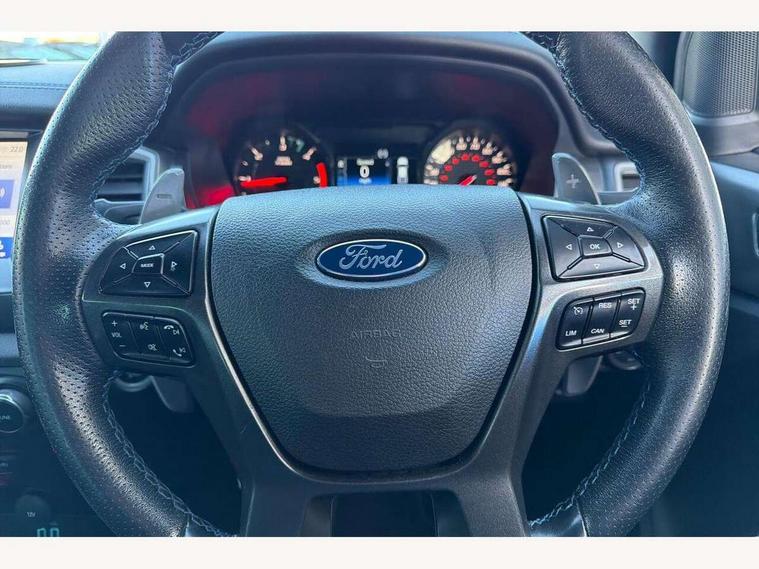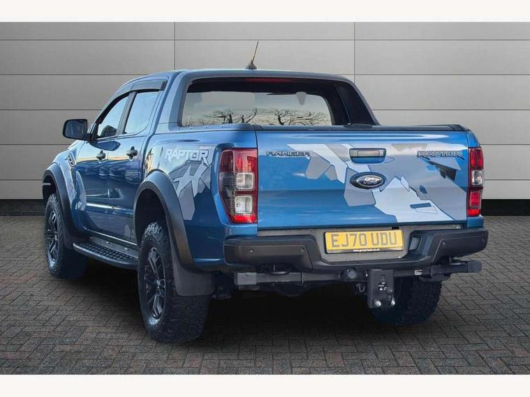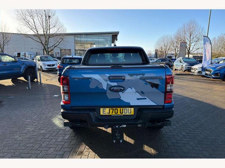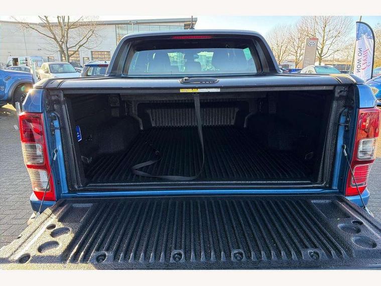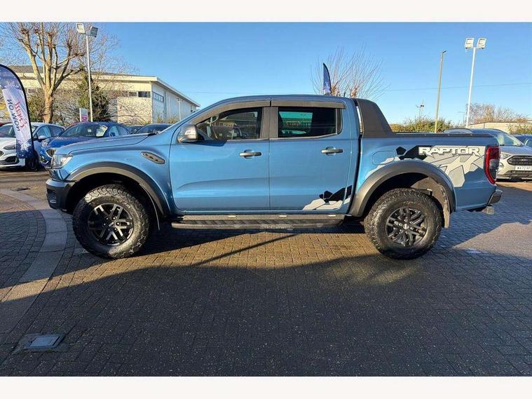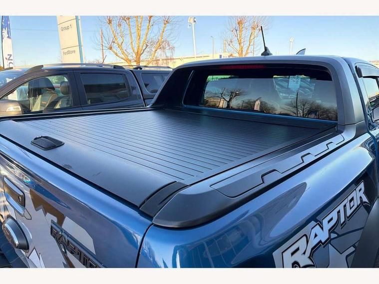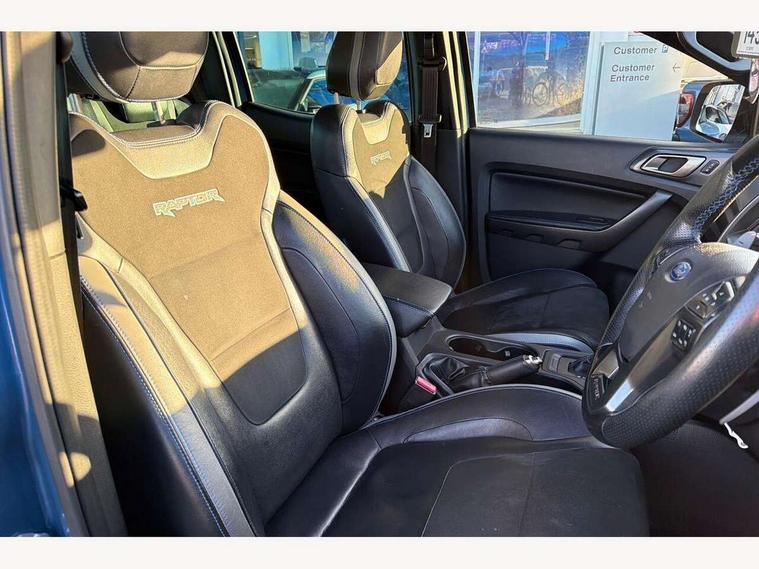 2 key fob, Collision mitigation braking system, Electric power assisted steering, Fixed rear view camera, Intelligent speed assistant, Lane keeping aid, Speed control with ASLD, AEB and ISA, Speed sign recognition, Trip computer, Automatic headlights, Black door mirrors, Black front fender grille, Black plastic front bumper, Black radiator grille, Black side steps with Raptor logo, Black tailgate handle, Daytime running lights, Dual power heated fold back door mirror with puddle lamp and signal, Dyno grey exterior door handle, Dyno grey painted rear bumper, Dyno grey sports hoop with side rails, Electrically operated windows with one shot driver's window, Electrochromic interior mirror, Front splash guard and mud flaps, Heated windshield and rear window, Heavy body construction, High mounted stop lamp with cargo area light, LED Front fog lamp, LED headlamps, Low speed crash foam in bumper, Power rear side window, Privacy glass, Rain sensitive windshield wipers, Rear bumper sensor device, Rear splash guard, Single rear fog lamp, Tailgate - Easy-lift/lower mechanism, Under hood engine cover, Underbody protection, Cargo management system, Centre console coolbox, Chrome interior door handle, Driver seat back mounted map pocket, Dual control system - Electronic air temperature control (EATC), Ebony headliner, Front roof interior assist handle, Heated front seat, Leather gearknob, Leather handbrake with chrome button, Load box bedliner including power point and tie down hook, Mountain top lockable cover and load bars, Power adjustable 8 way driver seat, Power adjustable 8 way passenger seat, Premium front and rear floor mats with Raptor logo, Reach and rake adjustable steering column, Rear seat centre armrest, Roof storage for driver sunglasses, Second row bench seat, Single driver sunvisor with illuminated vanity mirror and ticket holder + sliding rod, Single passenger sunvisor with illuminated vanity mirror + sliding rod, Soho grain premium leather upholstery with Raptor logo, Unique leather stitched steering wheel, Vinyl door trim panel insert, Washer tank level warn lamp, ICE feature pack 129 - Ranger, Trailer tow pack - Ranger, 3 point inertia rear seatbelts, Child proof rear door locks, Driver and front passenger airbag, side airbag, curtain airbag and driver knee airbag, ISOFIX hardpoint attachment, Passenger airbag disable lamp, Seat mounted Thorax side airbags, Seatbelt reminders for driver and front passenger, 433 MHz high power door lock frequency, Double locking power door lock, Immobiliser, Locking wheel nuts, Passive keyless entry and start system, Power tailgate lock, Security lock group 5, Thatcham security system, Volumetric remote alarm system with less battery backup, ABS, ESP, RSC and Terrain management, Emergency brake assist, Loadbox power point plug, Locking rear axle, Performance suspension, Power converter, Standard electic starter, 17" Dyno grey alloy wheels and Dyno grey alloy spare wheel, All terrain tyres,