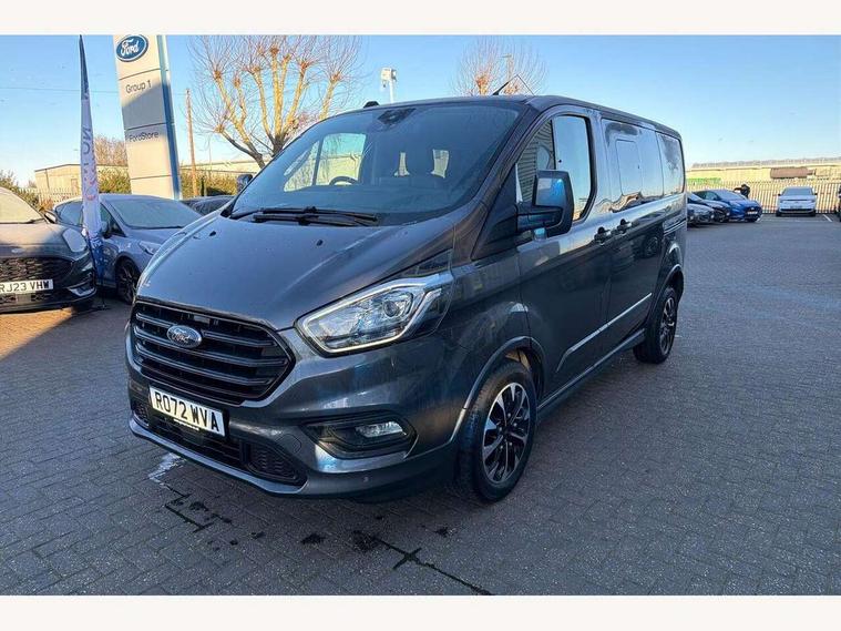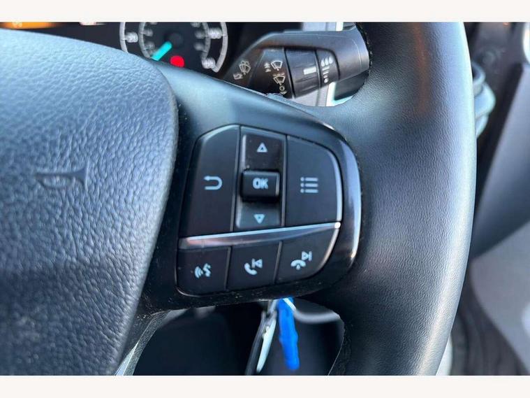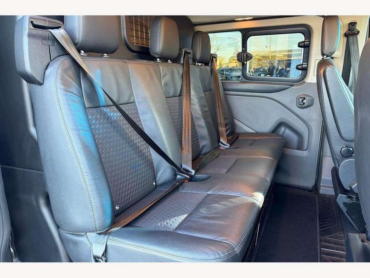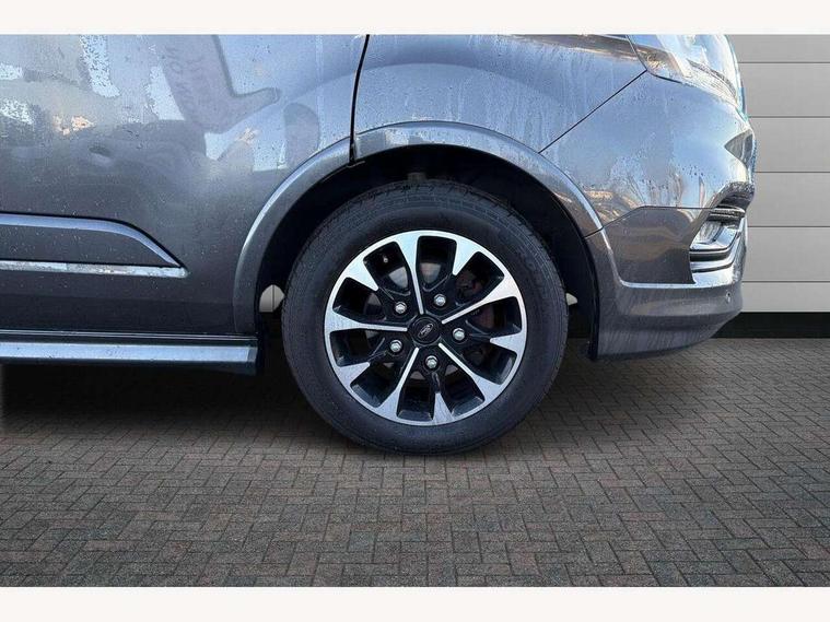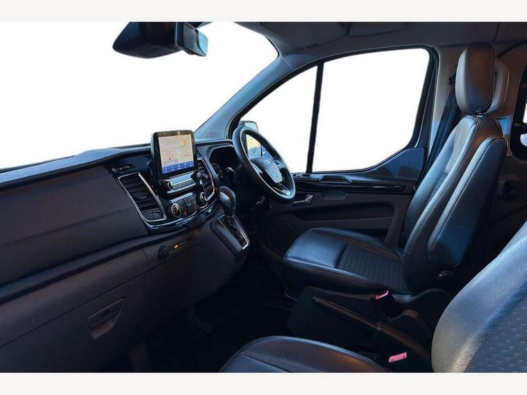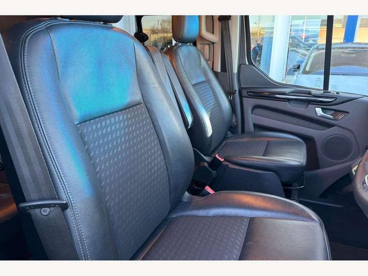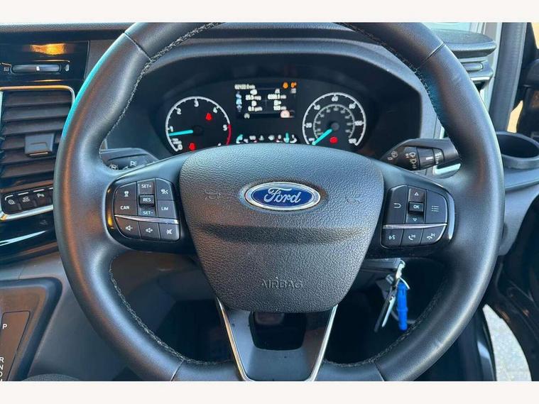 Easy fuel capless refuelling system, Embedded modem, Ford Eco mode, PAS, Selectable drive mode, Trip computer, Tyre pressure monitor, Vehicle maintenance monitor, Audio controls mounted on steering wheel, 180 Degree rear cargo check arms, Automatic headlamps with follow me home, Automatic windshield wiper, Body colour door handles, Body coloured body side mouldings, Body coloured door mirrors, Body coloured lift/decklid exterior handles, Body coloured rear bumpers, Coloured grille with 3 base bars, Delete roof mounted turn signals, Digital rear view mirror, Door open tyre carrier drop, Driver only power front window with one touch down, Emergency brake light flashing, Headlamp levelling, High mounted stop lamp, Hood accent stripe, Intermittent front wash/wipe, Intermittent variable windshield wiper, Kerbside side load doors, Low roof line, Passenger side sliding load door with track cover, Quad beam headlamps, Rear cargo hinged door, Rear door edge warn reflectors, Rear mudflaps, Restricted side load door opening, Sport van body styling kit, Tutone painted plastic front bumper, Wide bodyside body coloured moulding, 2 Interior grab handles, 2nd row three seat wide bench, 2nd/3rd Row courtesy light, 4 Load compartment tie down loops, Assist handle, B pillar assist handle, Colour keyed exterior pack, Driver and passenger sunvisors with illuminated vanity mirrors, Extended carpet inside floor cover with rubber rear, Extended molded headliner, Floorwell lights, Front manual air conditioning, Glazed bulkhead, Header mounted courtesy lights - 2 map lights, Height adjustable head restraints, Illuminated footwell, Internal grab handles, Isofix child seat attachments - centre and offside 2nd row seats, LED load compartment light, Lockable glove box, Map reading lights, Molded gear shift knob, Part leather upholstery, Passenger underseat storage box, Reach and rake adjustable steering column, Rear coat hook, Recirculation heater, Side rear door trim panel - Level 1, Sunglasses roof storage, Tool kit, Washer tank level warning lamp, Interior trim accent pack C - Transit custom, Rear seat pack 3 - Transit Custom, Visibility Pack Premium - Transit Custom, 3 point seatbelts for all seats, Driver's airbag, Dual note electric horn, Front active seat belts, Front passenger airbag restraint with driver/Passenger front seat belt buckle pretensioner and Passenger air bag deactivation, Height adjustable drivers seatbelt mount, Passenger seatbelt height adj, Rear seat belts, Seatbelt remainder for driver and passenger, Auto locking on drive-away, Auto relocking, Configurable unlocking 2, Locking wheel lug nut, Multi channel door entry remote and 3 Button key fob, Power door dead locks, Power lock group, Remote central locking, Thatcham category 1 alarm, Two step door unlock system, 2 12v sockets, 80 litre fuel tank, ABS, Auto start/stop system, Diesel particulate filter, ESP, ESP + EBA, Extra heavy duty alternator, Mechanical parking brake, Non limited slip differential front axle, Roll stability control, Side wind mitigation, Standard duty suspension, 17" alloy wheels style 2 contains 17" mini space wheel with locking wheel lug nut, Full wheelcovers, Mini steel spare wheel,