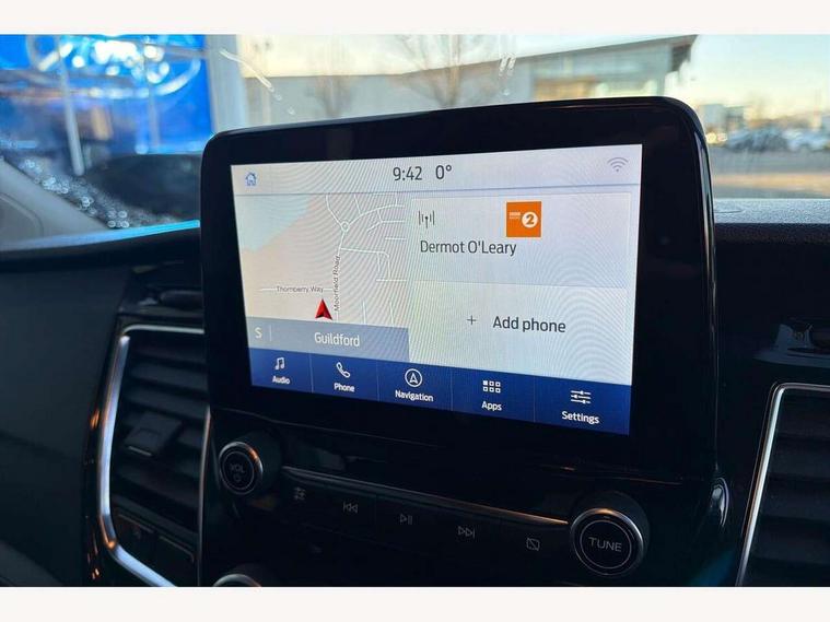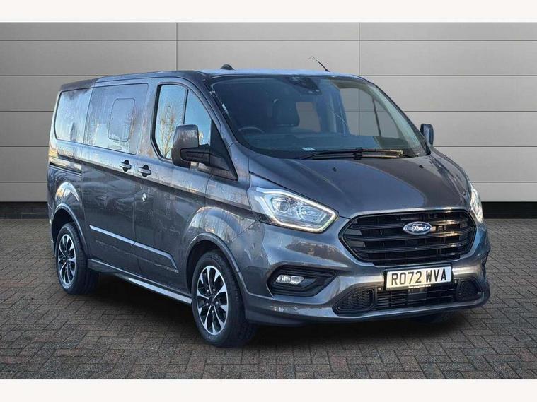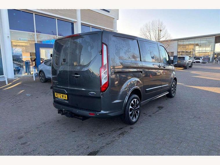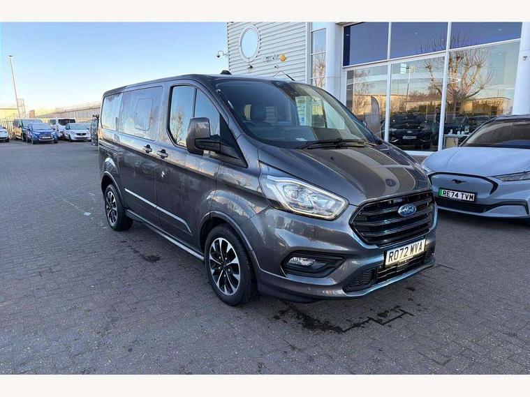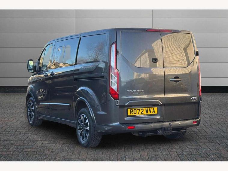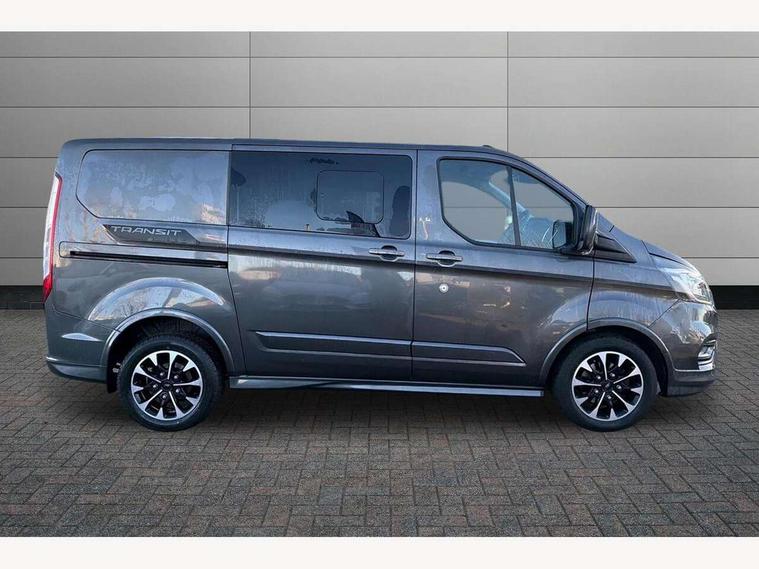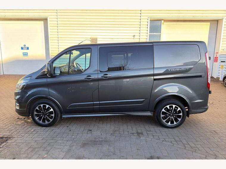 Easy fuel capless refuelling system, Embedded modem, Ford Eco mode, PAS, Selectable drive mode, Trip computer, Tyre pressure monitor, Vehicle maintenance monitor, Audio controls mounted on steering wheel, 180 Degree rear cargo check arms, Automatic headlamps with follow me home, Automatic windshield wiper, Body colour door handles, Body coloured body side mouldings, Body coloured door mirrors, Body coloured lift/decklid exterior handles, Body coloured rear bumpers, Coloured grille with 3 base bars, Delete roof mounted turn signals, Digital rear view mirror, Door open tyre carrier drop, Driver only power front window with one touch down, Emergency brake light flashing, Headlamp levelling, High mounted stop lamp, Hood accent stripe, Intermittent front wash/wipe, Intermittent variable windshield wiper, Kerbside side load doors, Low roof line, Passenger side sliding load door with track cover, Quad beam headlamps, Rear cargo hinged door, Rear door edge warn reflectors, Rear mudflaps, Restricted side load door opening, Sport van body styling kit, Tutone painted plastic front bumper, Wide bodyside body coloured moulding, 2 Interior grab handles, 2nd row three seat wide bench, 2nd/3rd Row courtesy light, 4 Load compartment tie down loops, Assist handle, B pillar assist handle, Colour keyed exterior pack, Driver and passenger sunvisors with illuminated vanity mirrors, Extended carpet inside floor cover with rubber rear, Extended molded headliner, Floorwell lights, Front manual air conditioning, Glazed bulkhead, Header mounted courtesy lights - 2 map lights, Height adjustable head restraints, Illuminated footwell, Internal grab handles, Isofix child seat attachments - centre and offside 2nd row seats, LED load compartment light, Lockable glove box, Map reading lights, Molded gear shift knob, Part leather upholstery, Passenger underseat storage box, Reach and rake adjustable steering column, Rear coat hook, Recirculation heater, Side rear door trim panel - Level 1, Sunglasses roof storage, Tool kit, Washer tank level warning lamp, Interior trim accent pack C - Transit custom, Rear seat pack 3 - Transit Custom, Visibility Pack Premium - Transit Custom, 3 point seatbelts for all seats, Driver's airbag, Dual note electric horn, Front active seat belts, Front passenger airbag restraint with driver/Passenger front seat belt buckle pretensioner and Passenger air bag deactivation, Height adjustable drivers seatbelt mount, Passenger seatbelt height adj, Rear seat belts, Seatbelt remainder for driver and passenger, Auto locking on drive-away, Auto relocking, Configurable unlocking 2, Locking wheel lug nut, Multi channel door entry remote and 3 Button key fob, Power door dead locks, Power lock group, Remote central locking, Thatcham category 1 alarm, Two step door unlock system, 2 12v sockets, 80 litre fuel tank, ABS, Auto start/stop system, Diesel particulate filter, ESP, ESP + EBA, Extra heavy duty alternator, Mechanical parking brake, Non limited slip differential front axle, Roll stability control, Side wind mitigation, Standard duty suspension, 17" alloy wheels style 2 contains 17" mini space wheel with locking wheel lug nut, Full wheelcovers, Mini steel spare wheel,