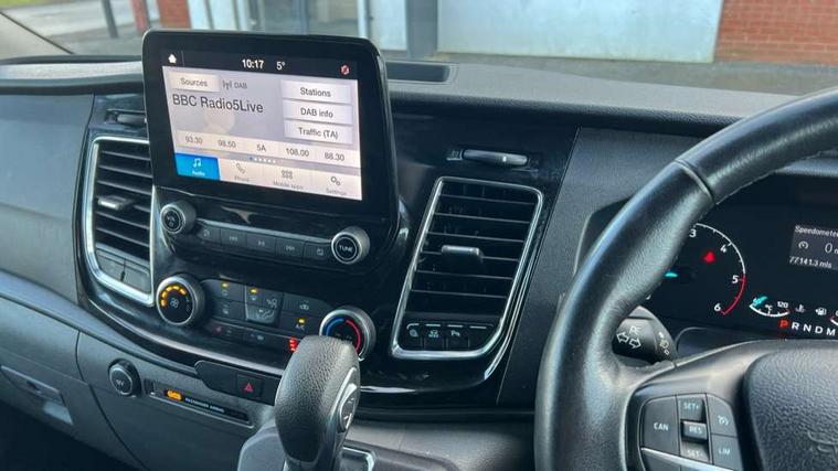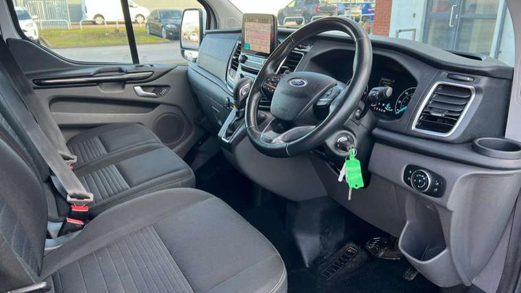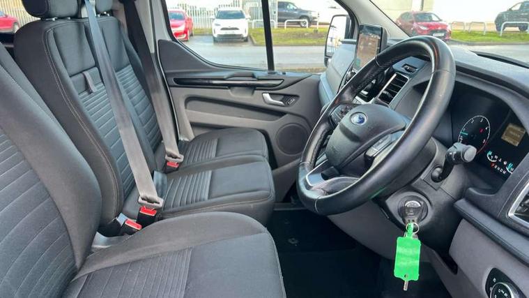 Adjustable steering column, Easy fuel capless refuelling system, Ford Eco mode, PAS, Seatbelt warning indicator, Selectable drive mode, Vehicle maintenance monitor, Audio controls mounted on steering wheel, Aux input socket, 'Guide me home' headlights, Automatic lights and wipers, Body colour door and tailgate handles, Body coloured body side mouldings, Body coloured door mirrors, Body coloured front bumper, Body coloured rear bumpers, Electric front windows with one touch facility for driver and front passenger, Fixed glazed dual side load doors, Front mud flaps, Headlamp levelling, Intermittent front wash/wipe, Passenger side sliding load door with track cover, Quickclear heated windscreen, Rear mudflaps, 2nd row three seat wide bench, Assist handle, Cloth upholstery, Coat hook, Courtesy light, Driver and passenger sunvisors with illuminated vanity mirrors, Front manual air conditioning, Front passenger grab handle, Grab handle on B pillar, Half height load compartment trim boards, Header mounted package tray, Height adjustable head restraints, Illuminated footwell, Isofix child seat attachments - centre and offside 2nd row seats, Load box LED lights, Lockable glove box, Map reading lights, Moulded cab headlining, Passenger underseat storage box, Reach and rake adjustable steering column, Recirculation heater, Rubber floor covering, Tie-down loops, 3 point seatbelts for all seats, Driver's airbag, Front outer passenger airbag with deactivation switch, Front passenger airbag, Front seatbelt pretensioners, Height adjustable drivers seatbelt mount, Passenger seatbelt height adj, Auto locking on drive-away, Auto relocking, Configurable Unlocking, Power door dead locks, Remote central locking, Thatcham category 1 alarm with 2nd remote key, 2 12v sockets, 80 litre fuel tank, ABS, Alternator - 150A, Auto start/stop system, Diesel particulate filter, ESP + EBA, Power point plug 400W - Level 2, Roll stability control, Side wind mitigation, 16" 6.5 alloy wheels,