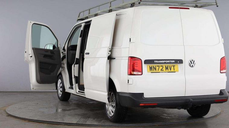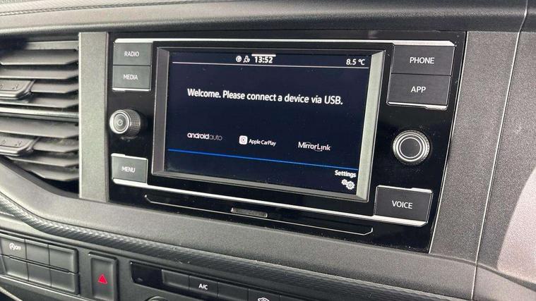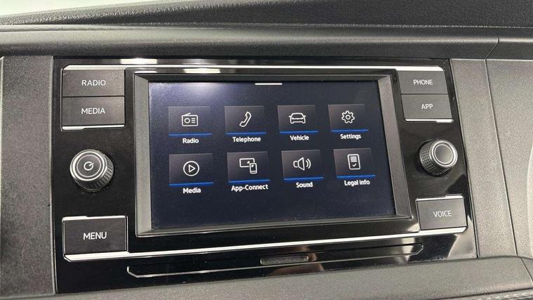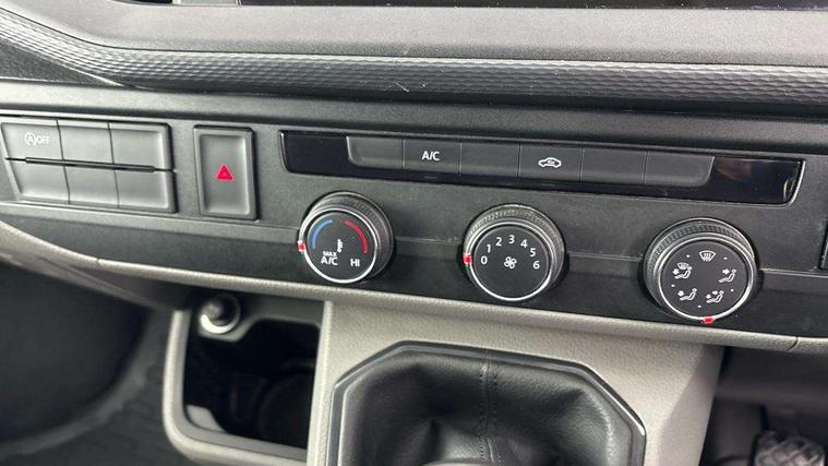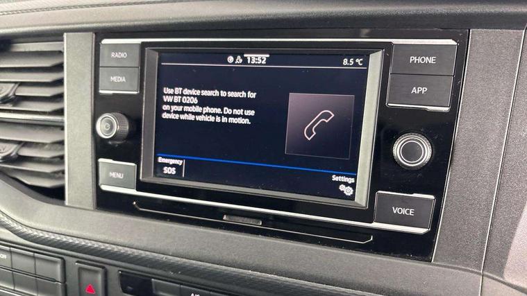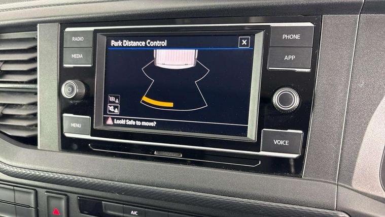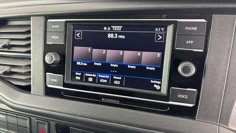 Cross wind assist, Dimmable illuminated instruments, Driver alert with Multi-function display plus, eCall emergency system, Forward collision warning front assist with autonomous emergency braking, Mobile phone interface, Multi function display plus with black and white display, 2 USB interfaces type C in dashboard, 4 speakers with 2 tweeters and 2 woofers, Composition colour radio with 6.5" touchscreen, Digital radio reception (DAB+), Volkswagen app connect, 4 stages windshield wiper intermittent control for windshield wipers, Closing rear wing door with unlatching from the inside, H7 twin halogen headlamps, Heat insulating glass (green) in cab and passenger/load compartment, Heat insulating windshield made of laminated glass, Left convex exterior mirror, Rear wing doors without window apertures, Right convex exterior mirror, Separate Daytime running lights, Transporter nameplate on the rear fender, Unpainted radiator grille with 2 chrome trims, 3 spoke leather wrapped multi function steering wheel, Comfort headliner in cab, hardboard roof trim in passenger and load compartment, Dust/pollen filter, Folding grab handles on roof frame, Front and rear left without window closed side panel in load compartment, Front seats on the right in 1st row of seat, Glove compartment without illumination, Heavy duty tool kit and jack, High partition, Interior plastic loading edge protection, LED Interior lighting in load and passenger compartment, Manual adjustable lumbar support for right single seat in 1st row seats, Standard lower part dashboard in palladium, Without breakaway interior rear view mirror, Without refrigerant, Without right side window apertures in passenger and load compartment, Non smoker pack - Transporter, 3 point height adjustable seat belts on outer seats cab with electric pretensioners, Driver and front passenger airbag with front passenger airbag deactivation, Warning buzzer and light for driver and front passenger seat belt not fastened, Without child safety lock in passenger compartment, Electronic immobiliser, Wheel bolts without wheel locks, 16" chassis with 16" brake system, Diesel particulate filter, Electronic stability control, ABS, ASR with deactivation button, hill start assist and brake assist system, Standard anti drum measures, Start/stop system with regenerative breaking,