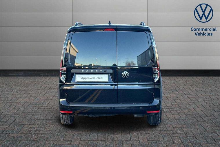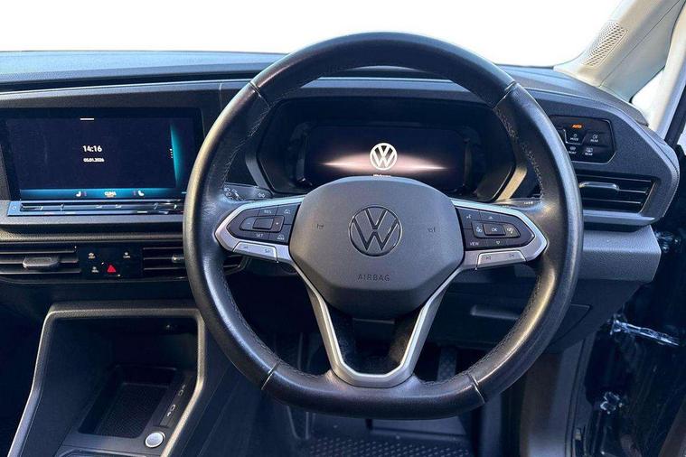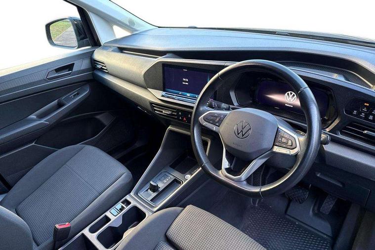 Bluetooth - Mobile phone interface, Digital cockpit, Digital multi-function cockpit display, Driver alert system, eCall emergency system, Front and rear parking sensors, Lane assist, Rear view camera, Seatbelt warning indicator, Service indicator, Start-stop system with regenerative braking, 2 USB interfaces type C in dashboard, App-Connect - Wireless for Apple CarPlay, DAB Radio, We Connect Plus Preparation, Automatic hazard light activation under emergency braking, Body coloured bumpers, Electric front windows, Gloss black painted exterior mirror housings, body-colored door handles and Silver sliding door rail, LED rear combination lights, LED rear tail lights, Rear view mirror with anti dazzle function, Roof rail preparation, Windscreen wiper with variable intermittent delay and wash-wipe system, Electronically controlled heating system, ergoComfort seats for driver, Interior light in headliner incorporting LED technology, Lockable glove compartment door with light, Manual heating and ventilation system, Manual height adjustment for front seats and seat cushion inclination and depth adjustment on drivers seat, Multi function leather steering wheel, Power-adjustable lumbar support for drivers seat, Reach and rake adjustable steering column, Six lashing points for securing loads, Steering wheel paddle shift, Storage compartments under driver and front passenger seats, Sun visors with mirror, airbag label on front passenger sun visor, Winter pack plus - Caddy, 3-point seat belts in front, with pretensioner and height adjustment, Driver and front passenger airbag with front passenger airbag deactivation, Keyless-Go without SAFELOCK, Tyre pressure monitoring system, Anti-theft alarm system, interior monitoring, backup horn, and towing protection, Electronic engine immobiliser, Remote central locking with deadlocks, interior locking, Anti locking braking system (ABS), Automatic post collision braking system, Diesel particulate filter, Electric parking brake with auto hold function, Electronic brake force distribution (EBD), Electronic differential lock (EDL), Electronic stabilisation programme (ESP), Engine drag torque control (MSR), Hill hold assist, Traction control system (TCS), Decorative beige birch vein inserts, Wheel bolts with anti-theft protection (unlockable),