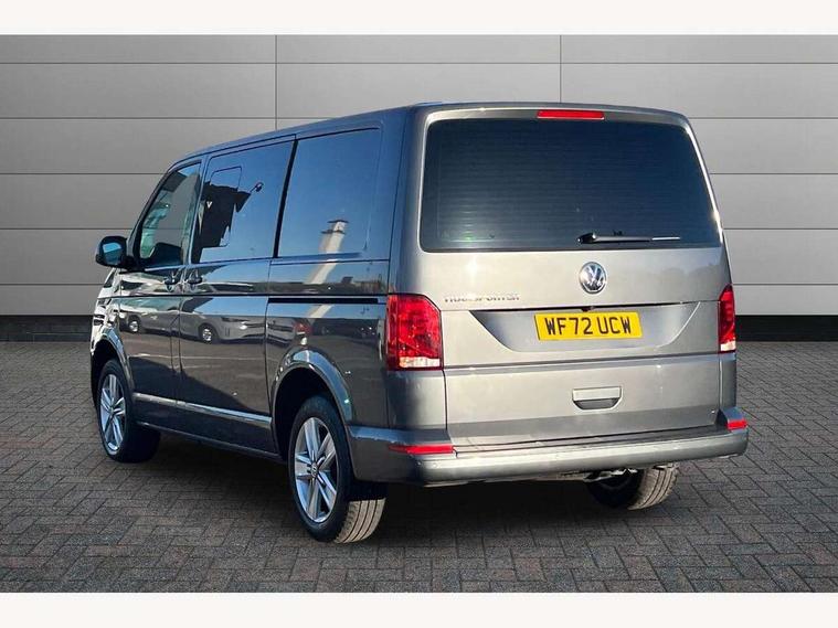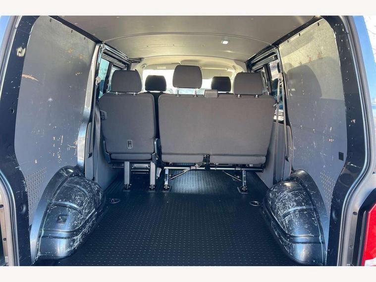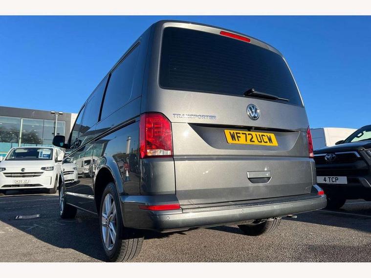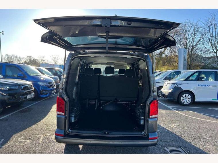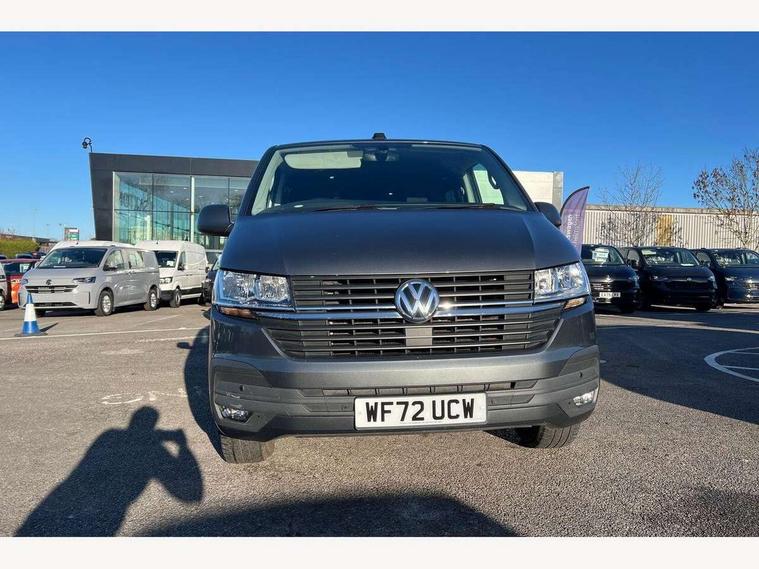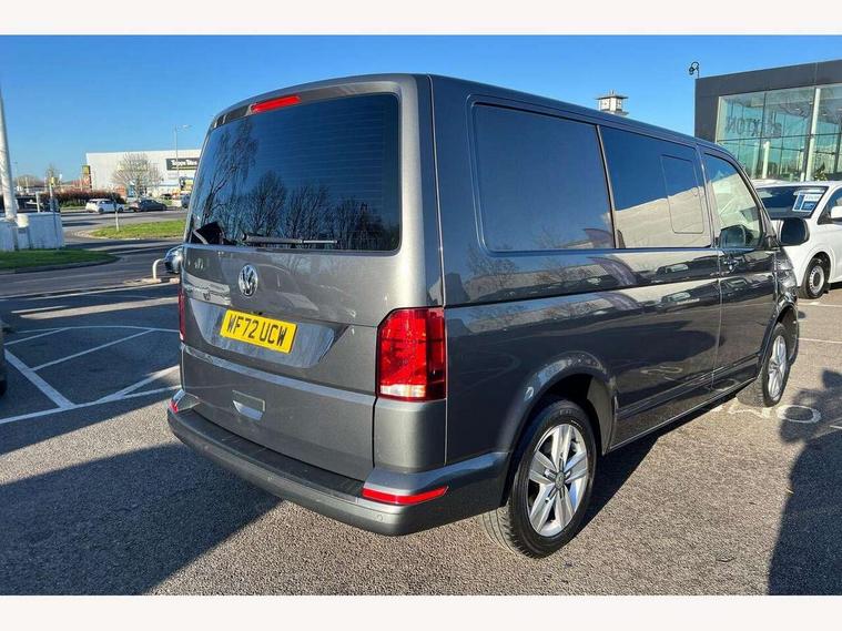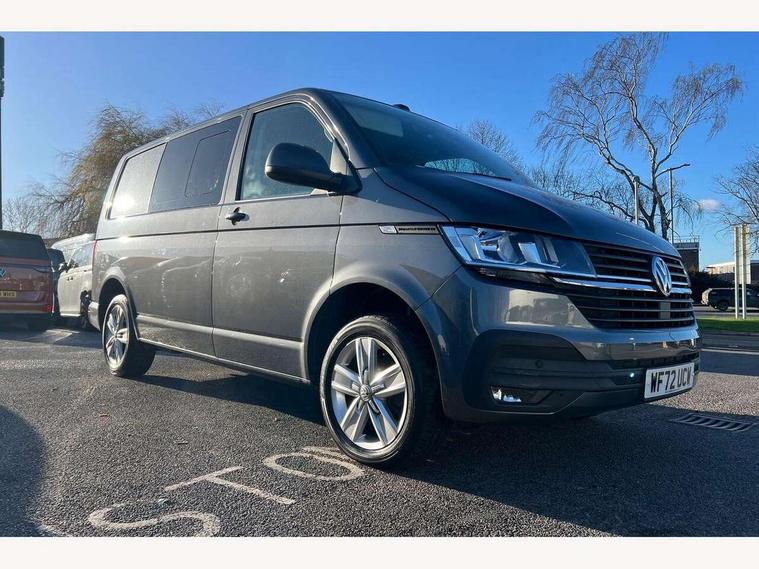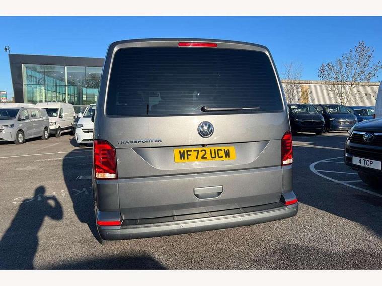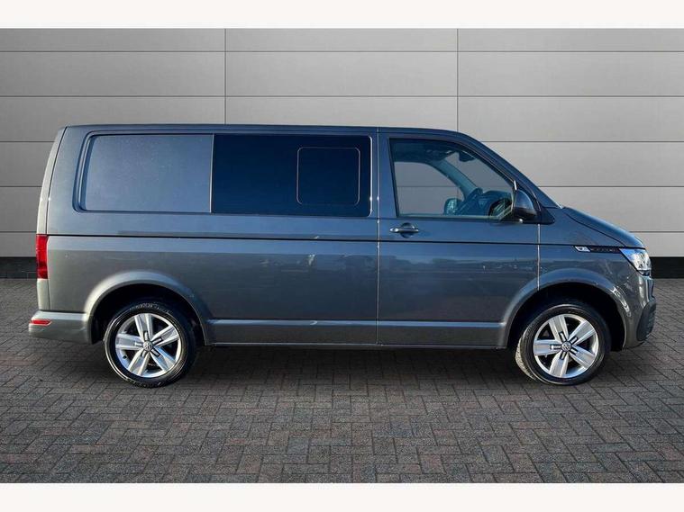 Adaptive cruise control, Child seat anchors ISOFIX and top tether in 2nd row of seats, Cross wind assist, Dimmable illuminated instruments, Driver alert with black and white multi function display plus, eCall emergency system, Forward collision warning front assist with autonomous emergency braking, Headlight range control, Mobile phone interface, Without voice control, 2 USB interfaces type C in dashboard, 4 speakers with 2 tweeters and 2 woofers, Composition colour radio with 6.5" touchscreen, Digital radio reception (DAB+), Volkswagen app connect, Automatic headlight control, leaving home and manual coming home feature, Front fog lamps with cornering light, Green heat insulating glass, Heated front windscreen, Illuminated steps in passenger/load compartment, Left convex exterior mirror, Power folding adjustable door mirrors with separately heated, Privacy glass from the B-pillar and heat-insulating glass in front, Radiator grille with 2 chrome trims, Rear window with heated insulating glass, heated rear window wiper and washer system, Right convex exterior mirror, Tailgate closing with unlatching from the inside, Transporter nameplate on the rear fender, Windshield wiper intermittent control with rain sensor for windshield wipers, Without adhesive film, 3 spoke leather wrapped multi function steering wheel, Additional sound deadening measures in cab and passenger compartment, Auto dimming breakaway interior rear view mirror, Comfort headliner in cab, hardboard roof trim in passenger and load compartment, Dust/pollen filter, Folding grab handles and storage compartments on cab seats, reading light, Front seats on the right in 1st row of seat, Glove compartment with illumination, Heavy duty tool kit and jack, Interior plastic loading edge protection, Lashing rings for load restraint system, LED Interior lighting in load and passenger compartment, Medium height for vehicles with window aperture hardboard side trim panels in passenger/load compartment, Refrigerant R134a, Standard lower part dashboard in palladium, Without partition, Without seats in 3rd row of seats, Comfort pack - Transporter, Exterior pack without fog light- Transporter, Light and vision pack - Transporter, Non smoker pack - Transporter, 3 point height adjustable seat belts on outer seats cab with electric pretensioners, Driver and front passenger airbag with front passenger airbag deactivation, Power operated child safety lock, Warning buzzer and light for driver seat belt not fastened, Anti theft alarm system with interior monitoring in cab, backup horn and towing protection, Lockable wheel bolts, 16" chassis with 16" brake system, Diesel particulate filter, Electronic stability control, ABS, ASR with deactivation button, hill start assist and brake assist system, Speed limiter, Start/stop system with regenerative breaking, 16" Clayton alloy wheels, Wheel trims,