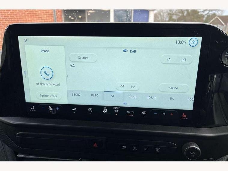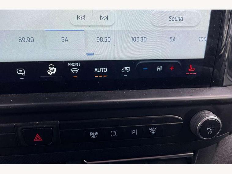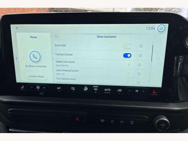 13" Touchscreen, 5G embedded modem, AECS NO SMS/Roll Detect 2G, PAS, Tyre pressure monitor, SYNC 4 - Android Auto/Apple Car Play, advance speech recognition, over the air update capability, Automatic headlights, Automatic windscreen wipers, Body coloured door mirrors, Body coloured front bumper, Body coloured rear bumpers, Daytime running lights, Electric front windows with one touch facility for driver and front passenger, Front mud flaps, Front splash guards, Low roof line, Quickclear front window defroster, Rear cargo hinged door, Rear splash guards, Trailer sway control, 8 Load compartment tie down loops, Courtesy light, Interior grab handle with driver's sunglasses holder, LED lights, Locking glove box lid, Sensico gearshift knob, 2 remote keys, Alcohol Interlock wiring preparation pack, Keyless entry and start, Locking wheel lug nut, Thatcham category 1 alarm, 20L AdBlue tank, ABS, Diesel particulate filter, ESP, Hill launch assist, Traction control, Full wheelcovers,
