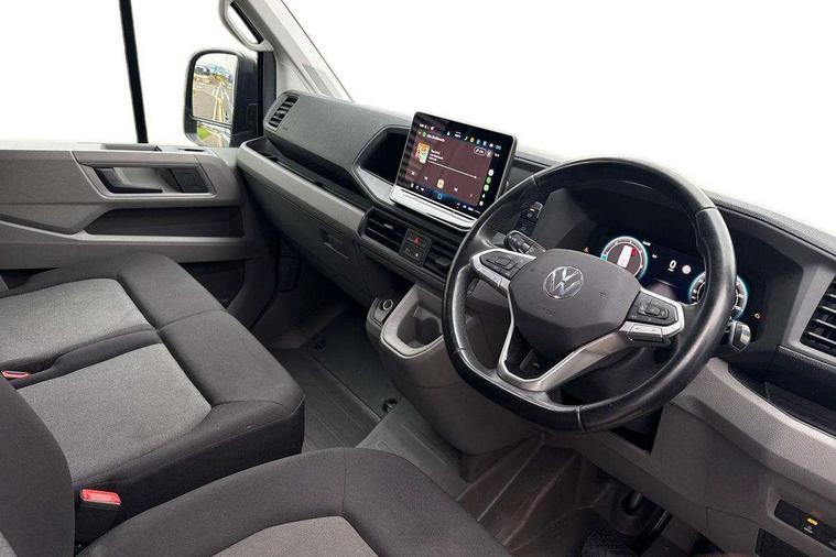 Bluetooth, Digital clock, Driver alert system, E-call + We connect basic preparation, Instrument cluster, Lights on warning buzzer, Locking fuel cap, Multi-function Display Plus, Rev counter, Service indicator, Speedometer, Voice control system, Composition media with 6.5" with we connect plus prep, 4 speaker, multifun display plus, USB, mob interface, app con, "We connect function", DAB Radio, Auto low beam mode, Leaving home function and manual coming home function, Cab doors, Convex and wide angle mirror, Driver seatbelt warning light, Electric windows, Electrically heated and adjustable door mirrors, Half painted front bumper, Heat insulating glass, Indicators in front door mirrors, One towing eye in front, Rear wing doors with 270 degree hinges, Special identification plate, Unpainted radiator grille, Air recirculation system, Ashtray, Centre console storage tray, CFCU preparation, Charcoal filter, Climatic air conditioning, Document holder on centre console, Drinks holders, Electromechanical Servotronic steering, Electronically controlled heating system, Fully adjustable suspension type driver seat, Grab handles on rear entry pillars, Height adjustable head restraints, Height and reach adjustable steering wheel, Illuminated glove compartment with lockable lid, Interior light, including 2 reading lights, Interior light, switchable by door, Jack and tool kit, Preparation for interface for external use with terminal block, Storage compartments in doors and in step, right, Storage tray on dashboard, Two 12V outlets in the cab (in the dashboard), Without rear side trim panel passenger load compartment, Non-smokers pack - Crafter, 3 point inertia reel belt on all seats, Automatic hazard light with emergency braking, Crosswind assist, Driver and front passenger airbag with front passenger airbag deactivation, Height adjustable seatbelts for outer cab seats, 1 rigid key, Anti-theft alarm with interior monitor, back up horn and tow away protect, overhead storage with two 1-DIN, reading light, SAFELOCK with 2 remote keys, Engine immobiliser, ABS, Automatic post collision braking system, EBA, EBD, EDL, ESP, Front disc brakes, HBA, Hill start assist, Parking brake - hill hold control, Start and stop system with regenerative braking, TCS, Hub cap covers,
