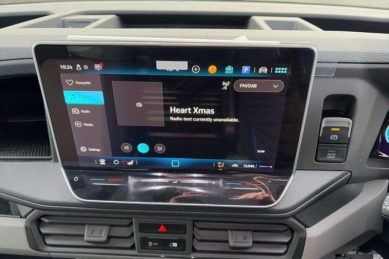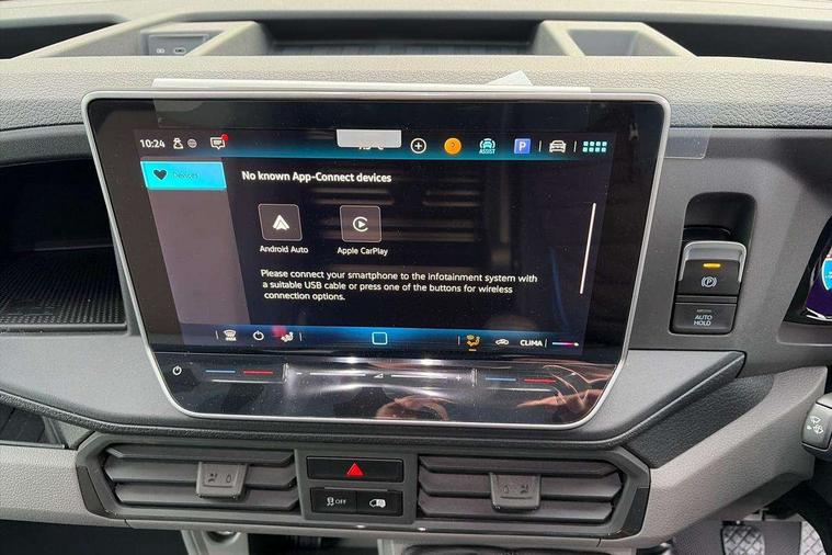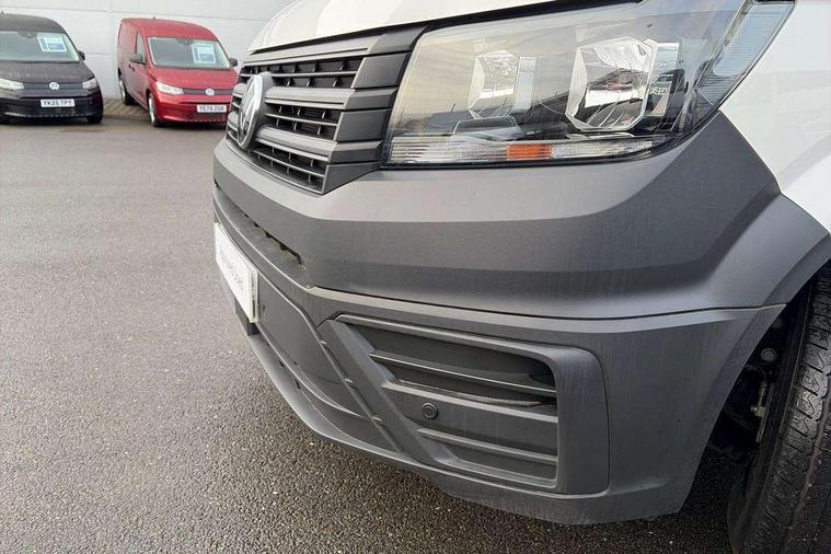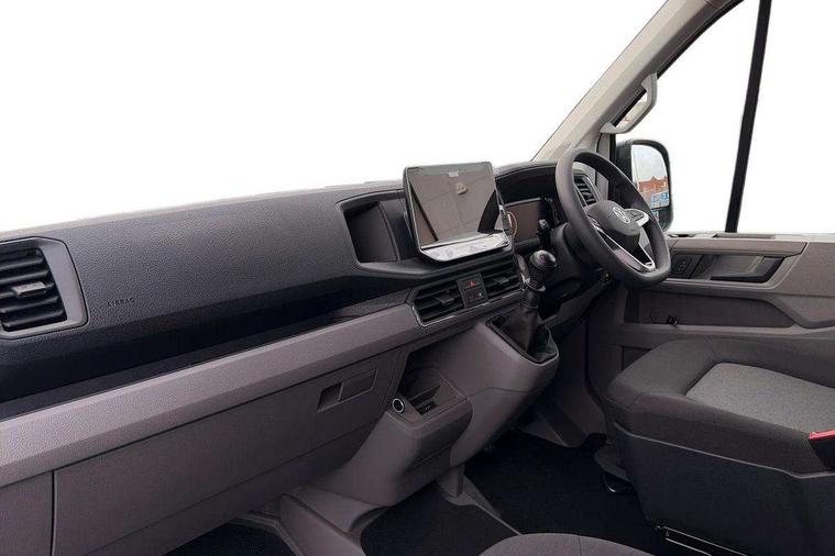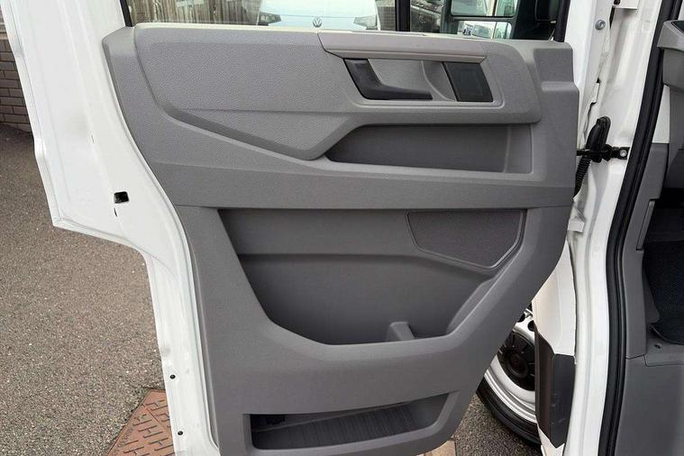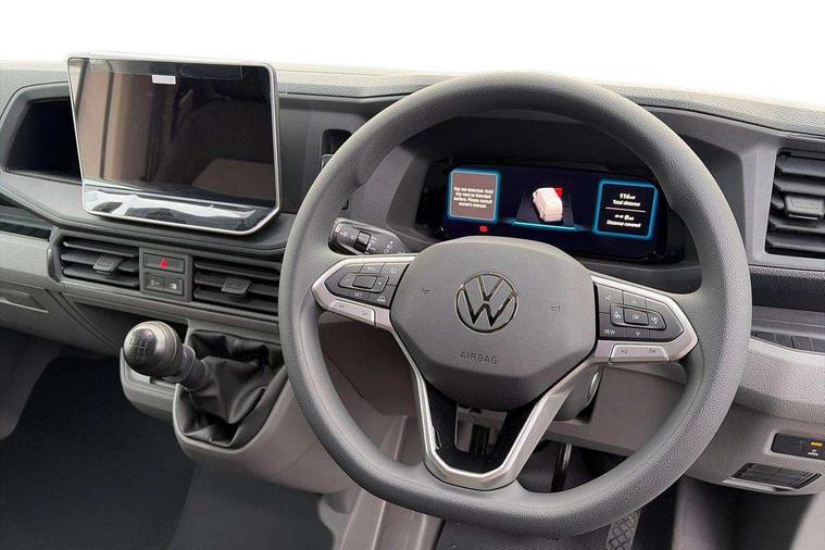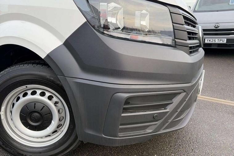 Advanced driver attention and drowsiness monitor, Blind spot monitor, Bluetooth, Digital clock, Digital cockpit with active Info display, Dynamic road sign display, E-call + We connect basic preparation, Forward collision warning with warning and braking reaction to vehicles, pedestrians and cyclists, Front assist including city emergency braking, Instrument cluster, Lane keeping assist, Lights on warning buzzer, Locking fuel cap, Rev counter, Roof console for interior lighting control, Service indicator, Speedometer, USB socket at top of windscreen, Wireless charging, 2 USB C ports in dashboard, DAB Radio, Auto low beam mode, Leaving home function and manual coming home function, Black unpainted plastic front bumper, Cab doors, Convex and wide angle mirror, Driver seatbelt warning light, Electric windows, Heat insulating glass, Indicators in front door mirrors, One towing eye in front, Rear badges, Special identification plate, Touch panel control for exterior lights, Unpainted radiator grille, Windscreen wiper auto control with light and rain sensor, Air recirculation system, Ashtray, Centre console storage tray, CFCU preparation, Charcoal filter, Document holder on centre console, Drinks holders, Electromechanical Servotronic steering, Electronically controlled heating system, Fully adjustable suspension type driver seat, Height adjustable head restraints, Height and reach adjustable steering wheel, Illuminated glove compartment with lockable lid, Interior light, including 2 reading lights, Interior light, switchable by door, Jack and tool kit, Preparation for interface for external use with terminal block, Storage compartments in doors and in step, right, Storage tray on dashboard, Two 12V outlets in the cab (in the dashboard), Without rear side trim panel passenger load compartment, Non-smokers pack - Crafter, 3 point inertia reel belt on all seats, Automatic hazard light with emergency braking, Crosswind assist, Driver and front passenger airbag with front passenger airbag deactivation, Height adjustable seatbelts for outer cab seats, 1 rigid key, Central locking system with Keyless Go without SAFELOCK entry - Keyless entry and start, Engine immobiliser, ABS, Automatic post collision braking system, EBA, EBD, EDL, Electronic parking brake - hill hold control, ESP, Front disc brakes, HBA, Hill start assist, Start and stop system with regenerative braking, TCS, Hub cap covers,