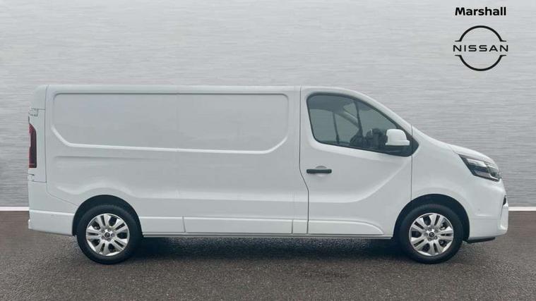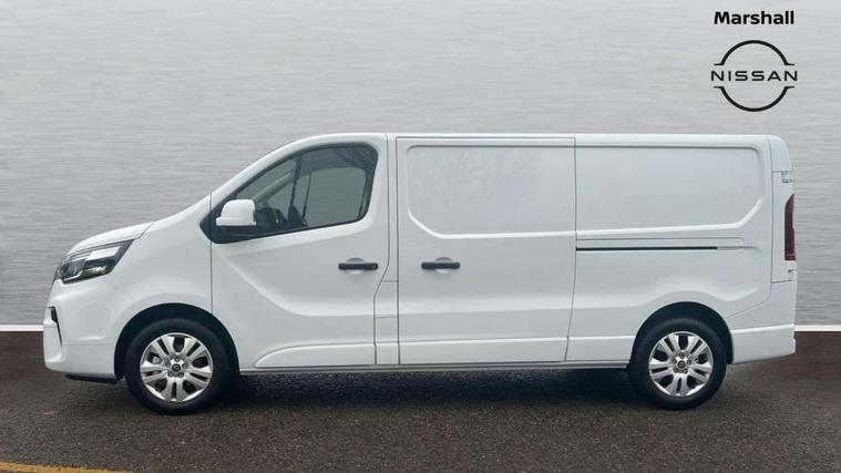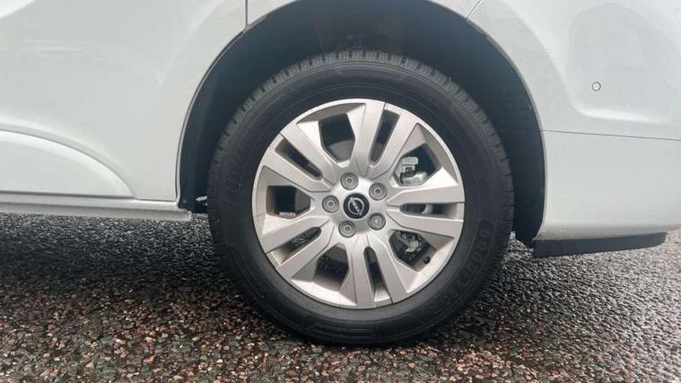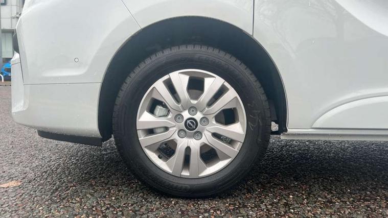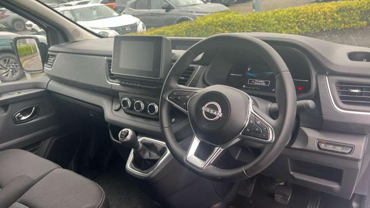 7" Colour TFT screen in dials dash, Blind Spot warning system, Bluetooth, Car phone pre installed, Driver drowsiness and attention warning, eCall, Front parking sensor, Intelligent Speed Assist (cruise control with speed limiter and traffic sign recognition), Lane departure warning system, Low fuel level warning light, Navigation system, Nissan connected services, PAS, Rear parking sensor, Rear view camera, Service indicator, Trip computer, AM/FM Radio, Apple Carplay/Android Auto, Audio switch on steering wheel, Aux port, Digital radio (DAB), Media center with 8" Touchscreen at centre of dashboard and multi-touch support, USB socket, Automatic headlights and wipers, Blind spot mirror in sunvisor, Body coloured exterior mirrors, Body coloured front and rear bumper, side mouldings and rear columns, Daytime running lights, Electric front windows with one touch drivers window, Electric heated and folding door mirrors, High low headlights beam, LED front fog lights, LED headlights, Left side sliding door, 2 x cargo load mounting hooks on each side of C and D pillars, 4 x cargo floor load mounting hooks on each side, Cloth upholstery, Cupholders on dashboard, Drivers armrest, Foldable Passenger bench with fixed table, Front automatic AC, Front head restraints, Full steel bulkhead, Height adjustable driver seat with lumbar support, Imitation leather steering wheel, Loadthrough facility in bulkhead, Passenger bench with underseat storage, Steering wheel rake adjustment, Steering wheel reach adjustment, Automatic door locking (at 5mph), Driver's airbag, Passenger airbag, Tyre pressure monitoring system, Alcohol interlock predisposition, Deadlocks, I Key, Insurance approved immobiliser, Radio frequency remote central locking, Thatcham alarm system, 12V socket in load area, ABS + EBD, Automatic forward emergency braking system (AEBS), ESP, Hill start assist and Extended grip, 17" alloy wheels, Full size spare wheel,