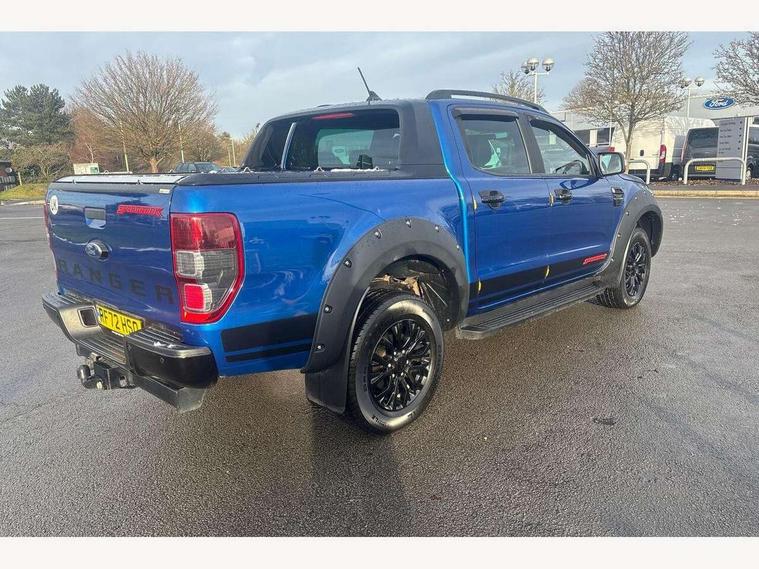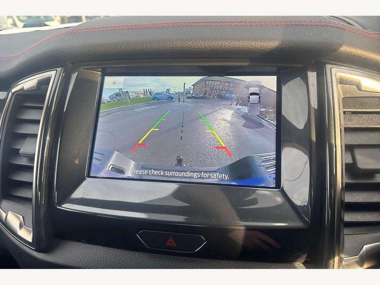 2 key fob, Collision mitigation braking system, Electric power assisted steering, Fixed rear view camera, Intelligent speed assistant, Lane keeping aid, Traffic sign recognition, Trip computer, Automatic headlights, Body coloured plastic front bumper, Boulder grey exterior door handle, Boulder grey exterior door mirror, Boulder grey radiator grille, Daytime running lights, Dual power heated fold back door mirror with puddle lamp and signal, Electrically operated windows with one shot driver's window, Electrochromic interior mirror, Front splash guard and mud flaps, Heated windshield and rear window, High mounted stop lamp with cargo area light, LED Front fog lamp, LED projector headlamps, Moulded in colour tailgate handle, Painted front fender grille, Privacy glass, Rain sensitive windshield wipers, Rear bumper chrome under-bar, Rear bumper step in boulder grey, Rear mudflaps, Roof rails, Side step with brushed inserts, Sports bar, Tailgate - Easy-lift/lower mechanism, Under hood engine cover, Underbody protection, Centre console coolbox, Chrome interior door handle, Driver seat back mounted map pocket, Dual control system - Electronic air temperature control (EATC), Ebony headliner, Heated front seat, Journey grain partial leather upholstery with Wildtrak logo, Leather gearknob, LED ambient interior lighting, Power adjustable 8 way driver seat, Premium front and rear floor mats with Wildtrak logo, Reach and rake adjustable steering column, Roof storage for driver sunglasses, Sport leather stitched steering wheel, Tie down rails and rope hooks, Wildtrak door trim panel insert, ICE feature pack 129 - Ranger, 3 point inertia rear seatbelts, Driver and front passenger airbag, side airbag, curtain airbag and driver knee airbag, ISOFIX child safety seat attachment, Seatbelt reminders for driver and front passenger, Tyre pressure sensors, Double locking power door lock with flip key, Immobiliser, Locking wheel nuts, Passive anti theft system, Passive keyless entry and start system, Power tailgate lock, Spare wheel lock, Thatcham category 1 alarm security system, ABS, ESP and roll over mitigation, Emergency brake assist, Engine start/stop system, Locking rear axle, Power converter,