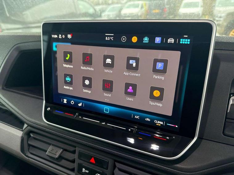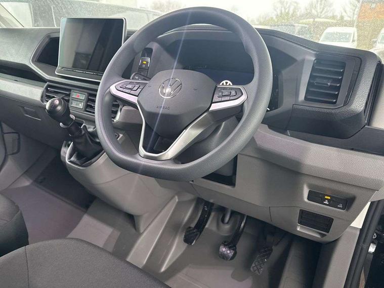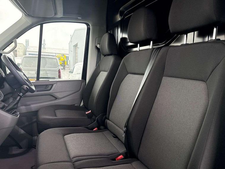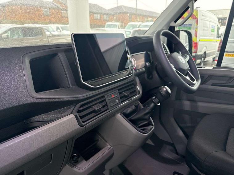 Bluetooth, Digital clock, Driver alert system, E-call + We connect basic preparation, Instrument cluster, Lights on warning buzzer, Locking fuel cap, Multi-function Display Plus, Rev counter, Service indicator, Speedometer, Voice control system, Composition media with 6.5" with we connect plus prep, 4 speaker, multifun display plus, USB, mob interface, app con, "We connect function", DAB Radio, Auto low beam mode, Leaving home function and manual coming home function, Cab doors, Convex and wide angle mirror, Driver seatbelt warning light, Electric windows, Electrically heated and adjustable door mirrors, Half painted front bumper, Heat insulating glass, Indicators in front door mirrors, One towing eye in front, Rear wing doors with 270 degree hinges, Special identification plate, Unpainted radiator grille, Air recirculation system, Ashtray, Centre console storage tray, CFCU preparation, Charcoal filter, Climatic air conditioning, Document holder on centre console, Drinks holders, Electromechanical Servotronic steering, Electronically controlled heating system, Fully adjustable suspension type driver seat, Grab handles on rear entry pillars, Height adjustable head restraints, Height and reach adjustable steering wheel, Illuminated glove compartment with lockable lid, Interior light, including 2 reading lights, Interior light, switchable by door, Jack and tool kit, Preparation for interface for external use with terminal block, Storage compartments in doors and in step, right, Storage tray on dashboard, Two 12V outlets in the cab (in the dashboard), Without rear side trim panel passenger load compartment, Non-smokers pack - Crafter, 3 point inertia reel belt on all seats, Automatic hazard light with emergency braking, Crosswind assist, Driver and front passenger airbag with front passenger airbag deactivation, Height adjustable seatbelts for outer cab seats, 1 rigid key, Anti-theft alarm with interior monitor, back up horn and tow away protect, overhead storage with two 1-DIN, reading light, SAFELOCK with 2 remote keys, Engine immobiliser, ABS, Automatic post collision braking system, EBA, EBD, EDL, ESP, Front disc brakes, HBA, Hill start assist, Parking brake - hill hold control, Start and stop system with regenerative braking, TCS, Hub cap covers,