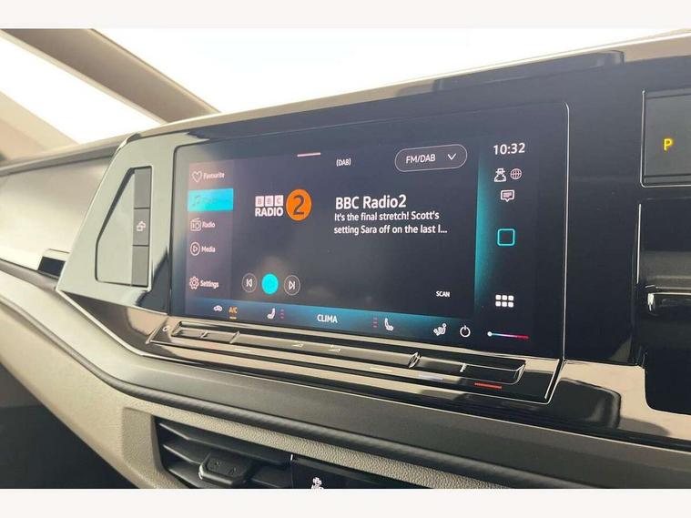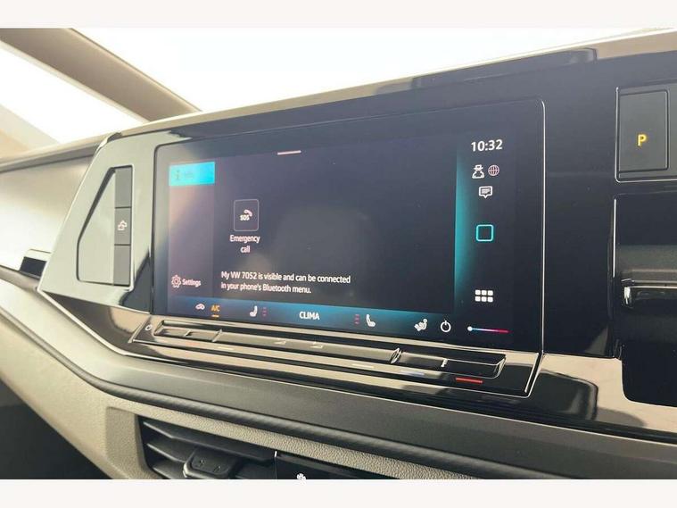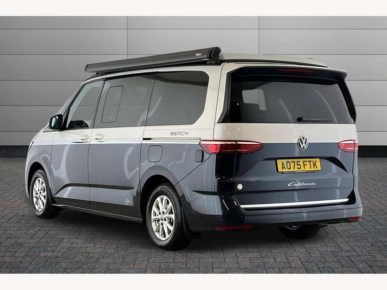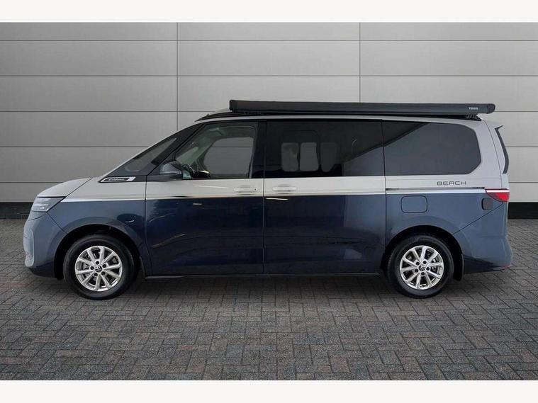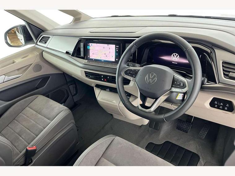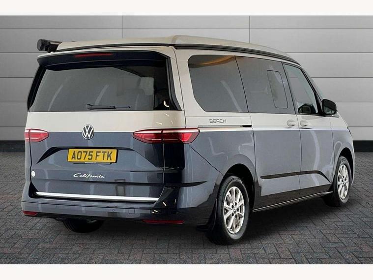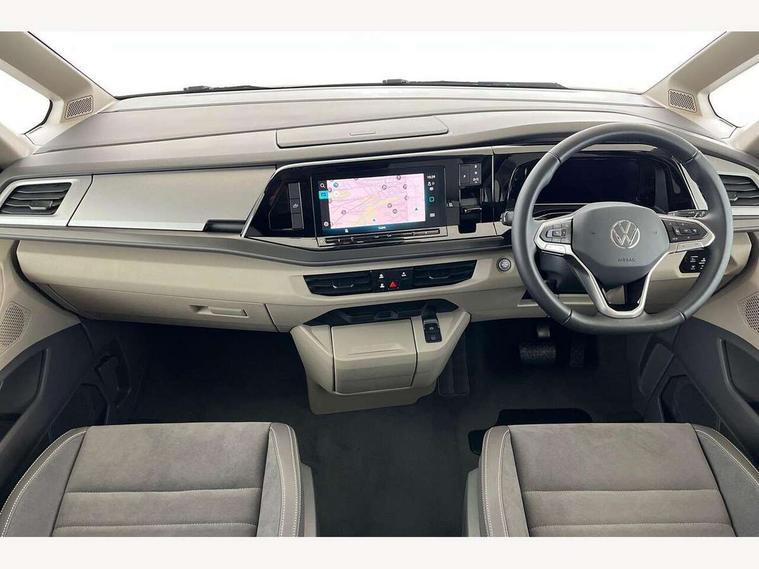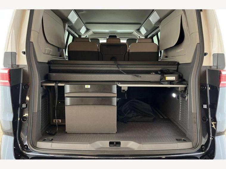 Adaptive cruise control ACC stop and go, Advanced driver attention and drowsiness monitor, California on tour app, Car2X high variant, Digital cockpit pro, Dynamic road sign display, eCall emergency system, Front cross traffic assist, Function control unit, IDA voice assistant and voice enhancer, Lane change assistant, Lane keeping system Lane Assist, Mobile phone interface, Motorhome Registration, Multifunction camera, PAS, Preparation for online services, Preparation for We connect and We connect plus, Servotronic speed sensitive power steering, Speed limiter and predicative speed limiter, Turn assist with evasive assistance, Volkswagen wired and wireless app connect, Auxiliary battery with a low-voltage converter, Battery 380 A (68 Ah), Battery without capacity specification, Standard battery/generator, 10.4 inch infotainment system with scalable module options, 2 USB-C ports at the front, 4 USB-C charging sockets in the passenger compartment, 8 Speakers, Digital radio reception (DAB), 3rd brake light, Canvas sides -Basalt grey includes panorama window, Four speed control for windscreen wipers, Heat and sound insulating laminated safety glass windshield, High gloss black door mirrors, Interior noise reduction, LED Headlights, Manually operated pop-up roof Bellows - Basalt Grey, Molding between headlamps painted to glossy black, Nameplate set California, Poor weather light including cornering light, Radiator grille, Rear boot, Red LED tail lights, Sliding window in front and fixed window in rear in load/passenger compartment on driver side, Windscreen wiper intermittent control, 230V external inlet with charging feature for vehicle batteries, 230V inverter with socket on driver seat, 3 single seats with integrated seatbelt and sleeping mat, Additional interior noise attenuation, Armrest on front swivel seats in both sides with electric lumbar support, Auxiliary pre-heater, Bright dots bi-color cloth upholstery, Darkening roller blinds and curtain, Drawers under the outer seats in the cab and passenger compartment & 2 waste bins, Front and rear headrests, Lockable glove compartment without lighting, Mini-kitchen at rear with slide-out single-flame gas cooker including electrical equipment box with Camper battery 230-V outlet, Multifunction leather steering wheel with paddle shifters, Plastic floor covering in passenger/load compartment, Single front passenger seat, Storage compartment left and right 1st row of seats, Sun visors with mirror, illuminated, ticket holder on the driver side, with airbag label on sun visor and B-pillar, Surround lighting in door area, Swivel seat on left with height adjustable including drawer, Swivel seat on right with height adjustable including drawer, Tailgate latching without unlatching function from inside, Without loading edge protection, Without luggage compartment cover, Lighting package - California, 3x3 point automatic seatbelts at the rear outside with ECE label, with/without belt tensioner, Autonomous emergency braking, Child locks, Driver and front passenger airbags with front passenger airbag deactivation button, First aid kit with warning triangle and safety vest, Front Assist with pedestrian and cyclist detection, Front disc brakes, Height adjustable three point automatic seatbelts at front with belt and end fitting tensioners, Occupants detection only display, Side and curtain airbags for driver and front passenger, curtain airbags for outer seats in rear, centre airbag in front, Swerve support and oncoming vehicle braking when turning, Tyre pressure loss indicator, Warning signal and warning lamp for front and rear seat belts not fastened, Anti theft alarm system with interior monitoring in cab, backup horn and towing protection, Lockable wheel bolts, Preparation for alcohol interlock, 5+ Promise service plan, Scale light grey decorative inlays, Tool kit, Trims for alloy wheels,