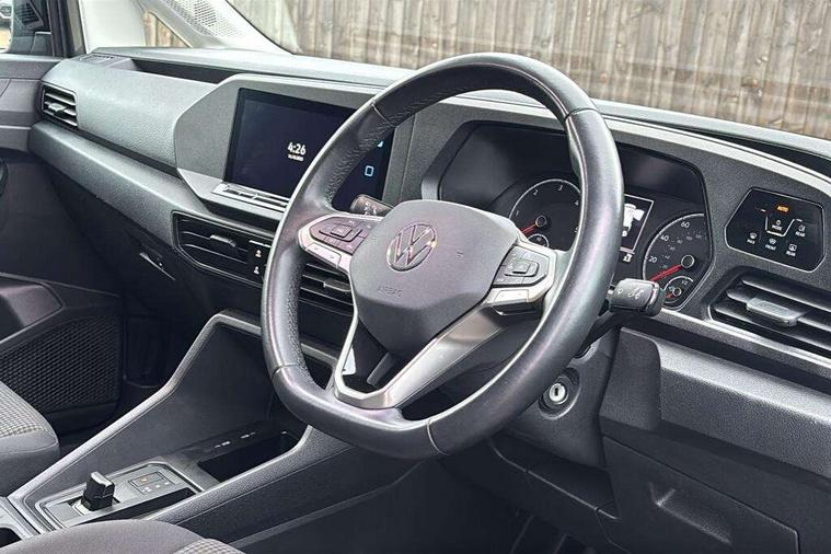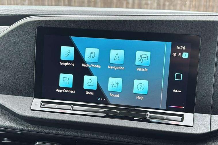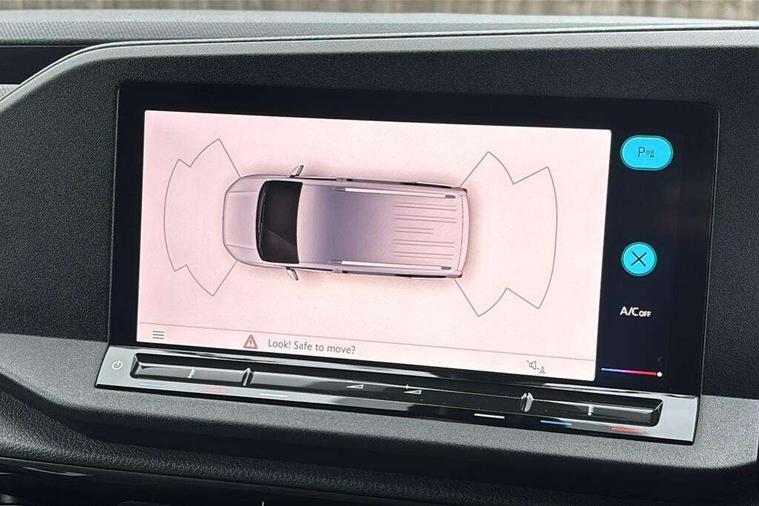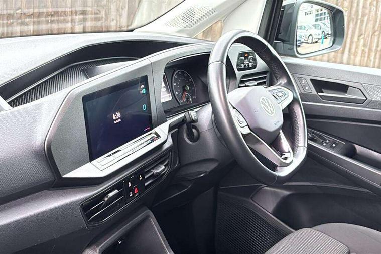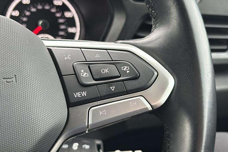Driver alert system includes drowsiness detection, Emergency call control unit with eCall, Multi-function Display, Seatbelt warning indicator, Service indicator, Start-stop system with regenerative braking, DAB Radio, We Connect Plus Preparation, Automatic hazard light activation under emergency braking, Black painted exterior mirror housings, body-colored door handles and Silver sliding door rail, Body coloured bumpers, Electric front windows, Heated windscreen, LED rear combination lights, LED rear tail lights, Roof rail preparation, Windscreen wiper with variable intermittent delay and wash-wipe system, Electronically controlled heating system, ergoComfort seats for driver, Interior light in headlining, Lockable glove compartment door with light, Manual height adjustment for front seats and seat cushion inclination and depth adjustment on drivers seat, Multi function leather steering wheel, Power-adjustable lumbar support for drivers seat, Reach and rake adjustable steering column, Six lashing points for securing loads, Steering wheel paddle shift, Storage compartments under driver and front passenger seats, Sun visors with mirror, airbag label on front passenger sun visor, 3-point seat belts in front, with pretensioner and height adjustment, Driver and front passenger airbag with front passenger airbag deactivation, Anti-theft alarm system, interior monitoring, backup horn, and towing protection, Electronic engine immobiliser, Remote central locking with deadlocks, interior locking, Anti locking braking system (ABS), Automatic post collision braking system, Electric parking brake with auto hold function, Electronic brake force distribution (EBD), Electronic differential lock (EDL), Electronic stabilisation programme (ESP), Emergency brake assist, Engine drag torque control (MSR), Hill hold assist, Traction control system (TCS), Decorative beige birch vein inserts, 17" Barahona Silver alloy wheels, Wheel bolts with anti-theft protection (unlockable),