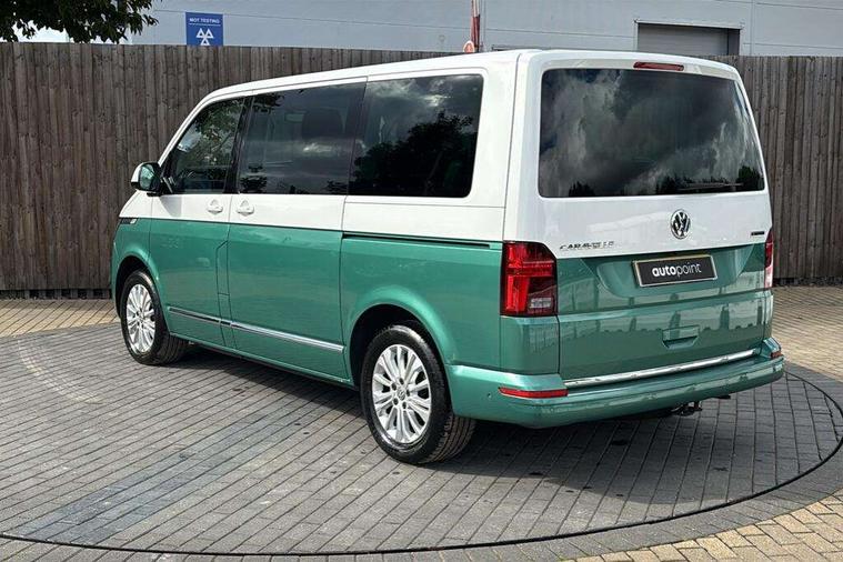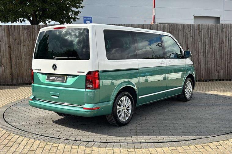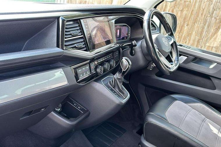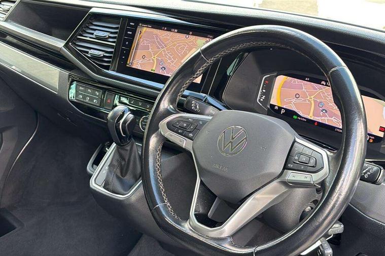Adaptive cruise control including speed limiter and city emergency braking, Bluetooth handsfree set, Coolant temperature indicator, Cross wind assist, Digital clock, Digital cockpit and driver alert system, eCall emergency system, Electric tailgate without interior release, Mobile phone interface comfort with inductive charging feature, Navigation system preparation, Rear gate with window aperture and power opening and closing, Rest assist, Service interval indicator, Start/stop system with regenerative braking, Tailgate power latching without unlatching from the inside, Trip computer, Voice control system, Warning lights, Wired and wireless app connect, 16 inch chassis with 16 inch brake system, 2 (type C) USB interfaces in dashboard, 2 USB charging sockets in the left C pillar, 6 speakers - 2 tweeters, 2 woofers, 2 full range speakers, DAB digital radio reception, 8 feet standard roof with mounting points for roof rack system, Additional dust seals on the outside, Automatic headlight control system, Automatic headlight range control, B pillar in glossy black contrasting colour adhesive film, Black radiator grille with 5 chrome trims with additional chrome trim at lower radiator grille, Body colour bumpers, Body coloured exterior door handles, Break away auto dimming rear view interior mirror, Caravelle nameplate on the fender and on the rear, Chrome trims in front lower air intake on the sides and in rear tailgate, Electric front windows, Exterior mirrors - power adjustable, heated and power folding, folding possible via vehicle key, Fixed side window front and rear in load/passenger compartment left and right, Heated washer nozzles in front and washer fluid level indicator, LED headlights with LED daytime running lights, Left and right convex exterior mirror, Manual coming and leaving home function, Rear window with heat insulating glass, heated, rear window wiper and washer system, Windshield wiper intermittent control with rain sensor, Without trailer hitch, 2 velour floor mats, 3 Spoke leather multi function steering wheel, Air recirculation system, Air vent in driver's door, Allergen filter, Armrest for both cab seats, Comfort headliner in cab and headliner for recirculated air vents in passenger compartment, Comfort seat on the left and right, in 1st row of seats (not swiveling), Dashboard illuminated dimmable instruments, Electromechanical speed sensitive power steering, height and longitudinally adjustable steering column, Front cupholder, Front/rear reading lights, Glove compartment with illumination, Grab handles on A pillar for access, on driver and front passenger side, Height and tilt adjustable head restraints for all seats, Illuminated steps in passenger/load compartment, Interior lighting with LED technology in load/passenger compartment, Interior lighting with switch off delay and contact switches on all doors, Interior loading edge protection in stainless steel, ISOFIX and top tether child seat anchorage in 2nd to 4th rows, Jack and tool kit, Lashing rings for load restraint system for reinforced floor covering, Leather handbrake grip, Lockable glovebox, Luggage compartment cover, Lumbar support on the left and right single seat in the 1st row of seats(Both manually adjustable), Passenger compartment side trim panel with leather look mirror, Rail seat system in passenger compartment, Rear cupholders, Refrigerant R1234yf, Reinforced carpet floor covering in passenger compartment, Roller blinds for side windows, Seat height adjustment for left and right single seat in cab, Separately controllable seat heater in cab, left and right, Soft folding grab handles on roof frame, Special interior noise suppression measures, Special sound deadening measures in cab and passenger compartment, Stainless steel load sill protection, Step illumination with caravelle lettering, Storage compartment on outer side of front seats, Storage net on lower dash passenger side, Storage pockets in backrests of front seats, Sun visors with illuminated mirror and airbag label on front passenger sun visor, Sunshades for side windows in passenger compartment, Two 12V accessory power outlets, Variable intensity instrument illumination, Velour non woven floor covering in cab, Chrome pack - Caravelle, Non smokers pack - Caravelle, 3 point automatic seatbelts in rear, Brake pad warning light, Driver and front passenger airbag with front passenger airbag deactivation, Electronic brake force distribution, Electronic stability control, ABS, ASR with deactivation button, hill start assist, brake assist system, Front assist with autonomous emergency braking, Front side airbags with curtain airbags for driver and front passenger, Height adjustable 3 point seat belts on outer seats in cab with electric pretensioners, Power operated child safety locks, Single tone horn, Traction control, Warning buzzer and light for driver seat belt not fastened, Alarm deactivation switch of interior and tow away protection on B pillar, Anti theft alarm system with interior monitoring in cab, backup horn and towing protection, Central locking system with radio remote control, system controls inside and safelock, Deadlocks, Electronic immobiliser, Lockable fuel cap, Locking wheel bolts, Comfort dashboard titanium black lower part with black chrome elements and bezels, Pewter wave grey decorative inserts,