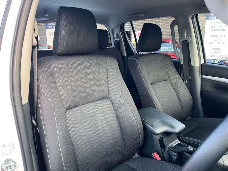 4.2" Multi information display, Bluetooth connectivity, Fuel heater, Intelligent adaptive cruise control, Lane departure warning system, Lights on warning buzzer, PAS, Pre-collision system with pedestrian detection, Rear view camera, Road sign assist, Smart phone integration with Android auto & Apple CarPlay, Static guidelines on rear view camera, Tachometer, Touch 2 multimedia system with 8" display, 6 speakers, Digital radio (DAB), MP3 compatibility, USB connector, Auto Headlights, Black side steps, Body coloured front bumper, Chrome door handles, Chrome door mirrors, Chrome rear bumper, Chrome trim on radiator grille, Daytime running lights, Electric front windows with one touch drivers window, Emergency brake light assist (EBS), Follow me home headlights, Green tinted glass, Headlamp levelling, Headlight cut-off reminder, Headlight washers, Heated door mirrors, Heated rear window, LED front fog lights, Mud flaps front and rear, Multi reflector halogen headlights, Power rear side window, Power retractable door mirrors, Rear fog lights, Rear window privacy glass, Trailer sway control, Underbody protection cover, Variable front wipers, Windscreen shadeband, 220V power socket, 60/40 split tip-up rear bench seat, Carpet covered floor, Centre console coolbox, Centre console with lid, storage and armrest, Cloth upholstery, Cooler in upper glove box, Driver seat height adjuster, Inner load hooks on cargo deck, Leather steering wheel and gearshift lever, Locking glovebox, Manual air conditioning, Rear seat tip-up function, Tilt adjustable steering wheel, Automatic front passenger airbag on/off switch, Child proof rear door locks, Front passenger airbag detector, Front seatbelt pre-tensioners + force limiters, Front seatbelt reminder, Isofix child seat preparation, Rear seatbelt pre-tensioners with load limiters, Supplement restraint system (SRS) 7 airbags - driver and passenger, knee, side and curtain, Immobiliser, Lockable tailgate, Remote central locking, 2 12v sockets, ABS with EBD, Auto limited slip differntial, Brake assist, Downhill Assist Control (DAC), Hill start assist, Load sensing proportioning system, Rear differential lock with auto disconnect, Stop/start function, Traction control, Vehicle stability control, All terrain tyres, Full size steel spare wheel,