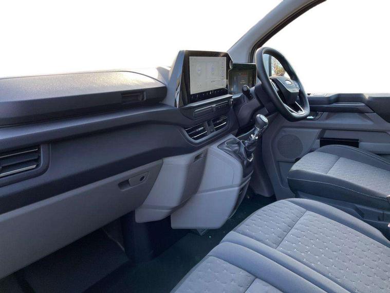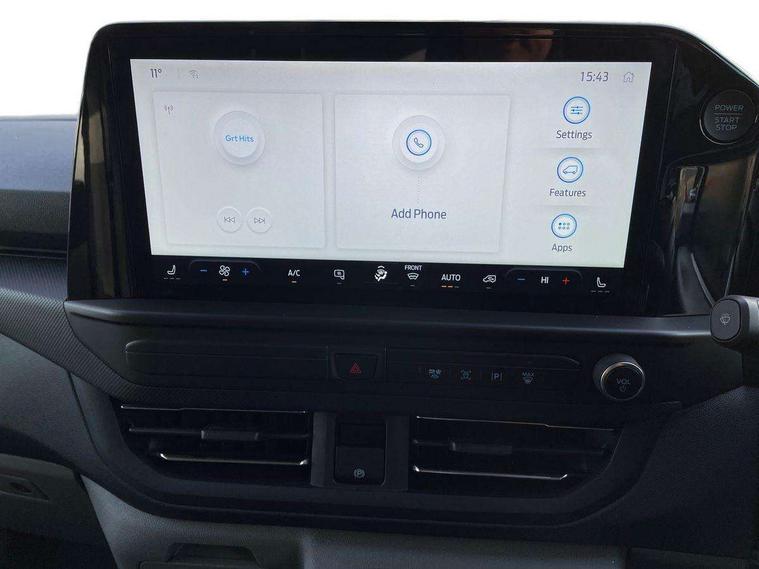 13" Touchscreen, 5G embedded modem, AECS NO SMS/Roll Detect 2G, PAS, Tyre pressure monitor, SYNC 4 - Android Auto/Apple Car Play, advance speech recognition, over the air update capability, Automatic headlights, Automatic windscreen wipers, Body coloured door mirrors, Body coloured front bumper, Body coloured rear bumpers, Daytime running lights, Electric front windows with one touch facility for driver and front passenger, Front mud flaps, Front splash guards, Low roof line, Quickclear front window defroster, Rear cargo hinged door, Rear splash guards, Trailer sway control, 6 Load compartment tie down loops, Courtesy light, Interior grab handle with driver's sunglasses holder, LED lights, Locking glove box lid, Sensico gearshift knob, 2 remote keys, Alcohol Interlock wiring preparation pack, Keyless entry and start, Locking wheel lug nut, Thatcham category 1 alarm, 20L AdBlue tank, ABS, Diesel particulate filter, ESP, Hill launch assist, Traction control, Full wheelcovers,