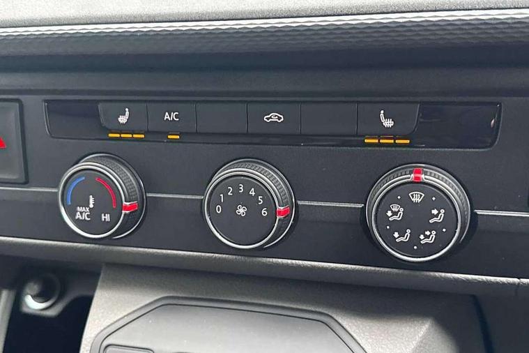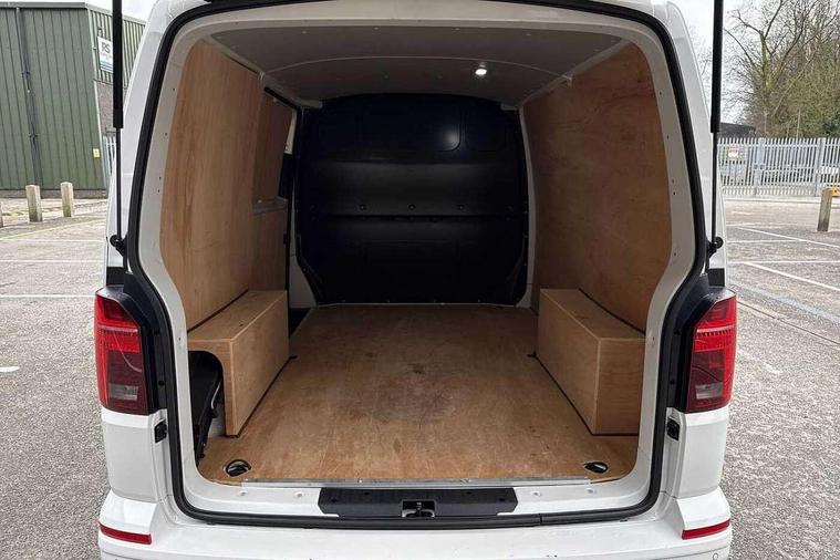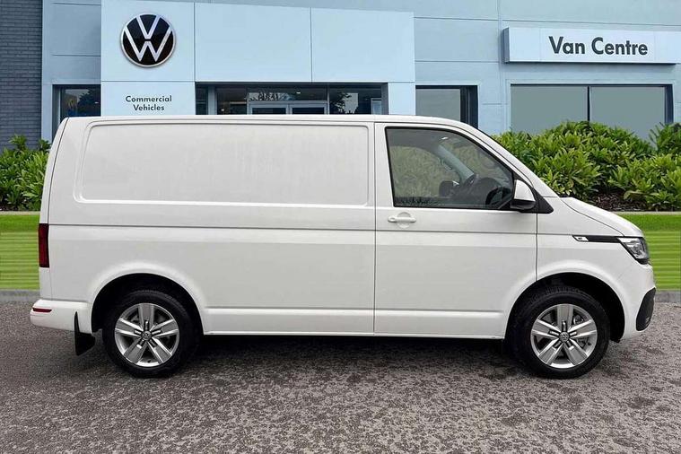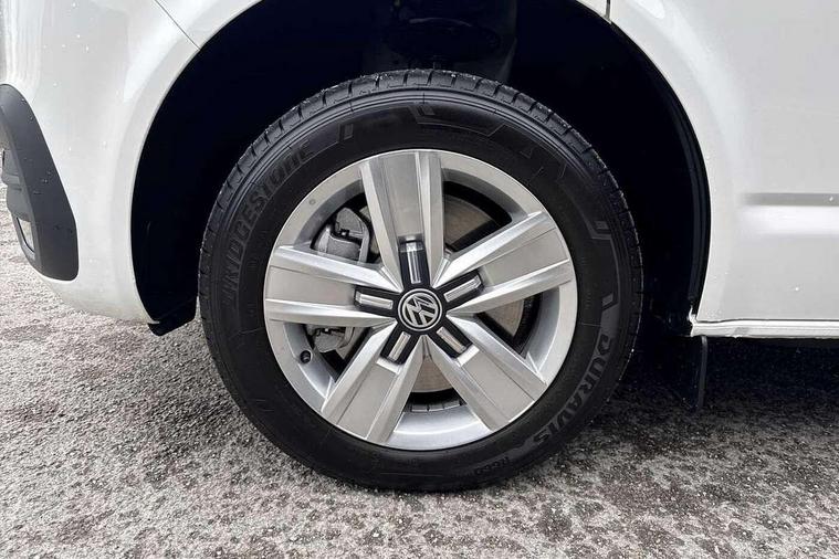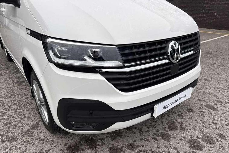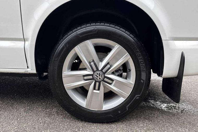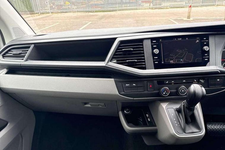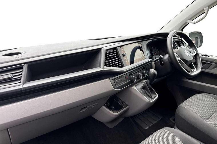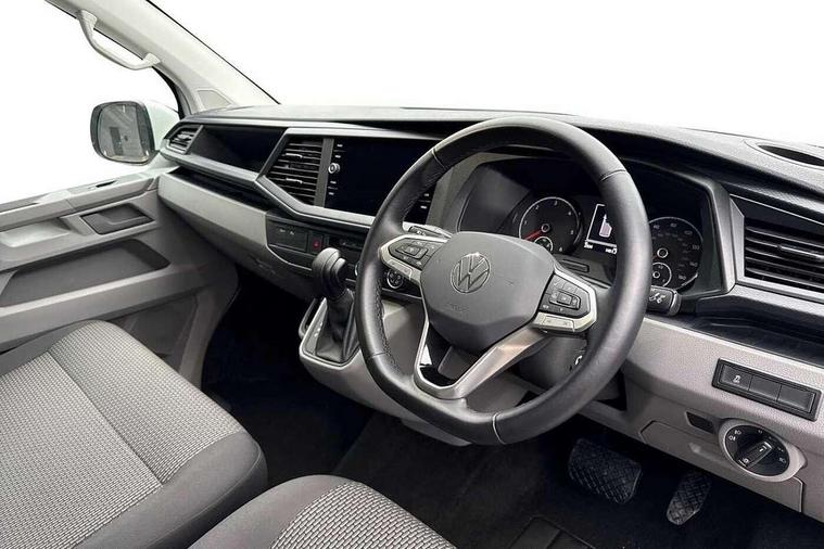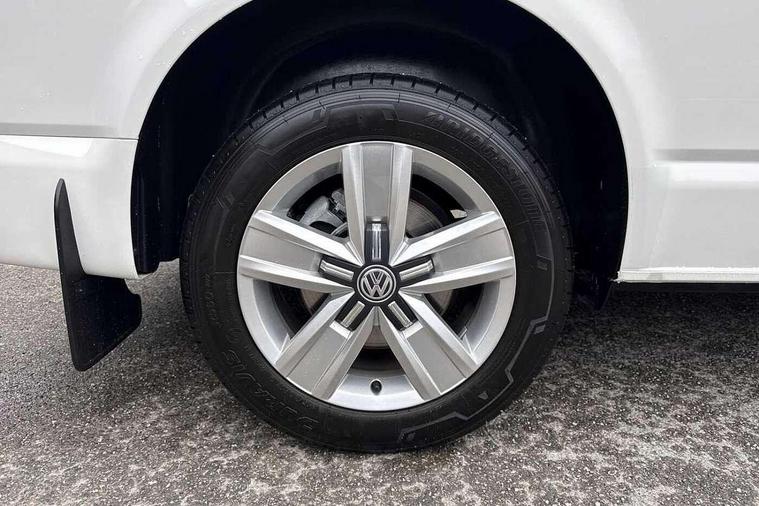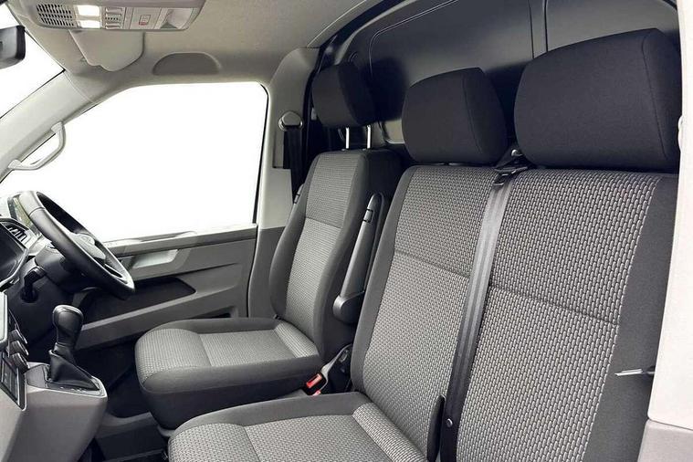 Adaptive cruise control, Cross wind assist, Dimmable illuminated instruments, Driver alert with Multi-function display plus, eCall emergency system, Forward collision warning front assist with autonomous emergency braking, Mobile phone interface, Multi function display plus with black and white display, 2 USB interfaces type C in dashboard, 4 speakers with 2 tweeters and 2 woofers, Composition colour radio with 6.5" touchscreen, Digital radio reception (DAB+), Volkswagen app connect, Closing rear wing door with unlatching from the inside, Front fog lamps with cornering light, Heat insulating glass (green) in cab and passenger/load compartment, Heated front windscreen, Left convex exterior mirror, Power folding adjustable door mirrors with separately heated, Radiator grille with 2 chrome trims, Rear wing doors without window apertures, Right convex exterior mirror, Transporter nameplate on the rear fender, 3 spoke leather wrapped multi function steering wheel, Comfort headliner in cab, hardboard roof trim in passenger and load compartment, Dust/pollen filter, Front and rear left without window closed side panel in load compartment, Front seats on the right in 1st row of seat, Heavy duty tool kit and jack, High partition, Interior plastic loading edge protection, LED Interior lighting in load and passenger compartment, Refrigerant R134a, Standard lower part dashboard in palladium, Storage compartments on cab seats and reading light, Without right side window apertures in passenger and load compartment, Comfort pack - Transporter, Exterior pack without fog light- Transporter, Light and vision pack - Transporter, Non smoker pack - Transporter, 3 point height adjustable seat belts on outer seats cab with electric pretensioners, Driver and front passenger airbag with front passenger airbag deactivation, Warning buzzer and light for driver and front passenger seat belt not fastened, Without child safety lock in passenger compartment, Anti theft alarm system with interior monitoring in cab, backup horn and towing protection, Lockable wheel bolts, 16" chassis with 16" brake system, Diesel particulate filter, Electronic stability control, ABS, ASR with deactivation button, hill start assist and brake assist system, Start/stop system with regenerative breaking, 17" Devonport alloy wheels,