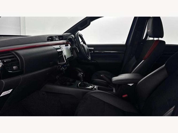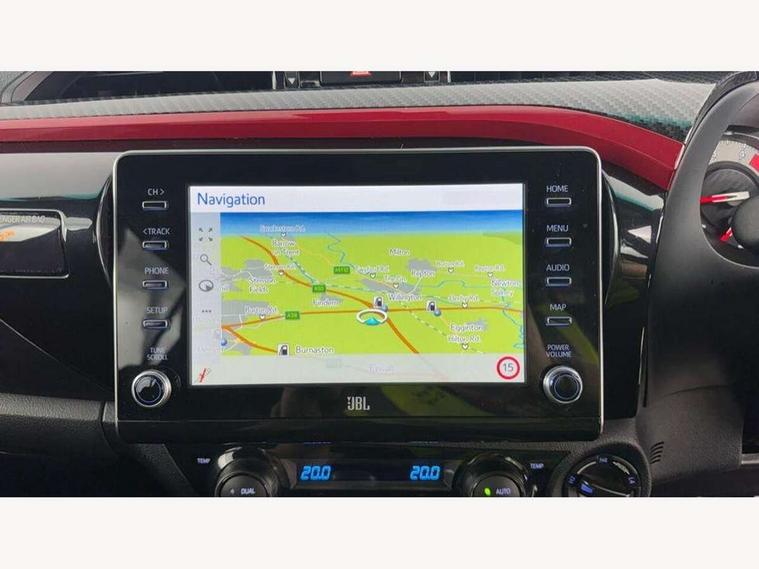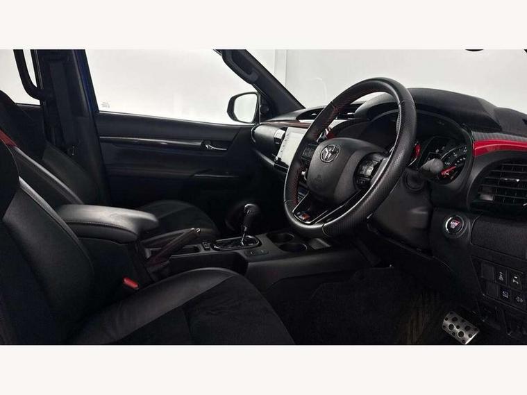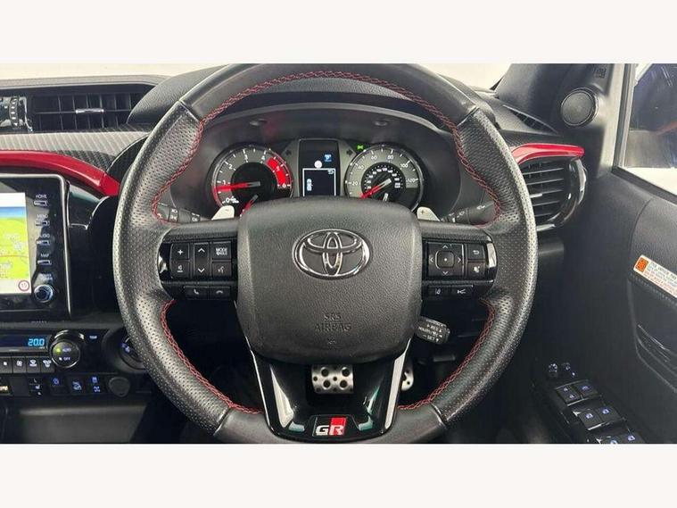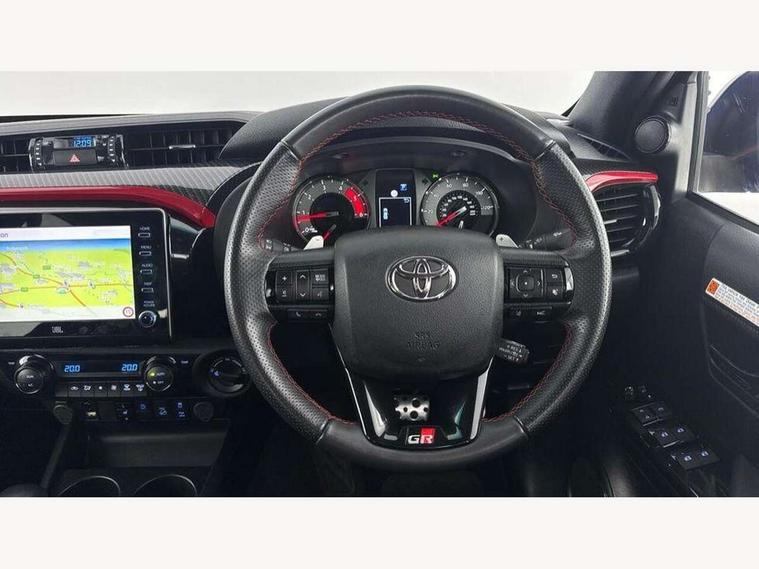 4.2" Multi information display, Bluetooth connectivity, Dynamic guide lines on reversing camera, Front and rear parking sensors, Fuel heater, Intelligent adaptive cruise control, Lane departure warning system, Lights on warning buzzer, Panoramic view monitor, PAS, Pre-collision system with pedestrian detection, Rear view camera, Road sign assist, Smart phone integration with Android auto & Apple CarPlay, Tachometer, Touch 2 multimedia system with 8" display + GO navigation system, Digital radio (DAB), JBL Premium sound system with 9 speakers, MP3 compatibility, Steering wheel mounted audio controls, USB connector, Auto dimming rear view mirror, Auto Headlights, Automatic headlamp levelling, Black door handles, Black door mirrors, Black G-Mesh Grille, Black side steps, Body coloured front bumper, Dark grey rear bumper, Emergency brake light assist (EBS), Follow me home headlights, Front power windows with auto up and down function, Front wiper De-icer, Headlight cut-off reminder, Headlight washers, Heated door mirrors, Heated rear window, LED Daytime running lights, LED dual beam projector headlights, LED front fog lights, LED rear lights, Mud flaps front and rear, Power rear side window, Power retractable door mirrors, Rear fog lights, Rear window privacy glass, Trailer sway control, Underbody protection cover, Variable front wipers, Windscreen shadeband, 220V power socket, 60/40 split tip-up rear bench seat, Alcantara/Leather upholstery, Ambient door lighting, Carpet covered floor, Centre console coolbox, Centre console with lid, storage and armrest, Cooler in upper glove box, Dual zone auto A/C, Heated front seats, Heated rear seats, Inner load hooks on cargo deck, Leather steering wheel and gearshift lever, Locking glovebox, Power adjustable drivers seat, Rear passenger footwell heating, Tilt adjustable steering wheel, Automatic front passenger airbag on/off switch, Child proof rear door locks, Front passenger airbag detector, Front seatbelt pre-tensioners + force limiters, Front seatbelt reminder, Isofix child seat preparation, Rear seatbelt pre-tensioners with load limiters, Supplement restraint system (SRS) 7 airbags - driver and passenger, knee, side and curtain, Immobiliser, Lockable tailgate, Remote central locking, Smart entry and start system button, 2 12v sockets, ABS with EBD, Auto limited slip differntial, Brake assist, Downhill Assist Control (DAC), Front and rear monotube shock absorbers, Front red coil springs, Hill start assist, Load sensing proportioning system, Stop/start function, Traction control, Vehicle stability control, 17" Bi - tone black machined face GR Sport alloy wheels, All terrain tyres, Full size alloy spare wheel, GR Sport black wheel caps,