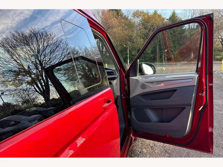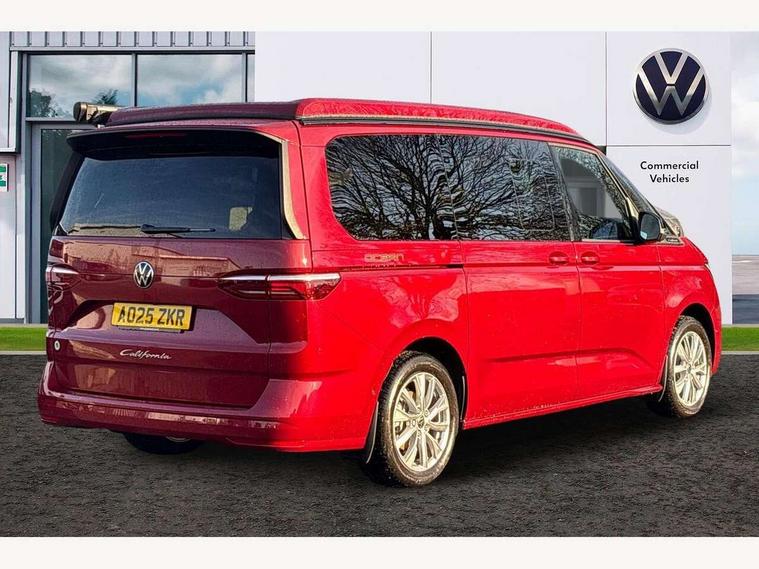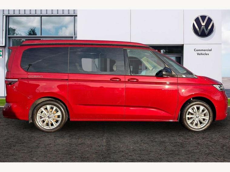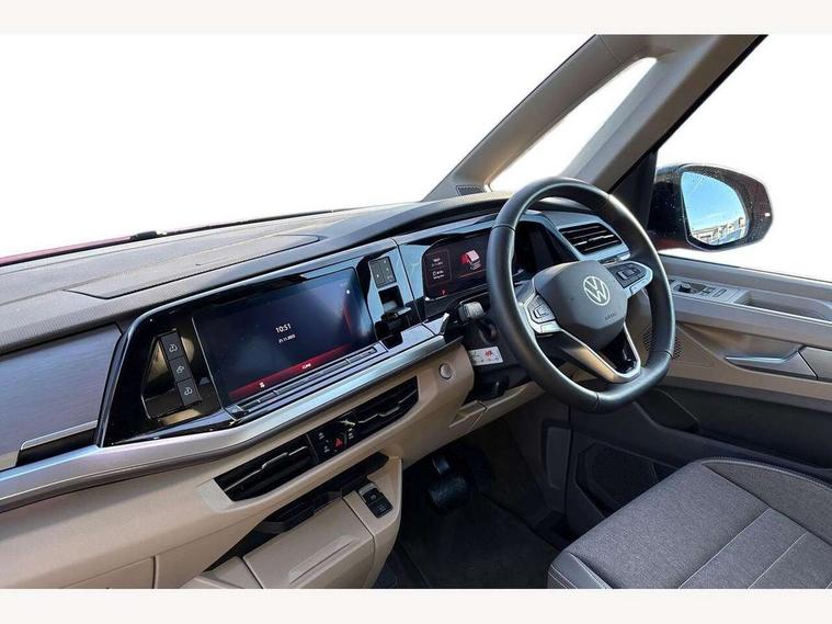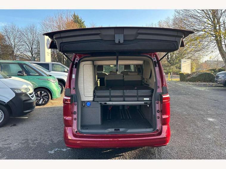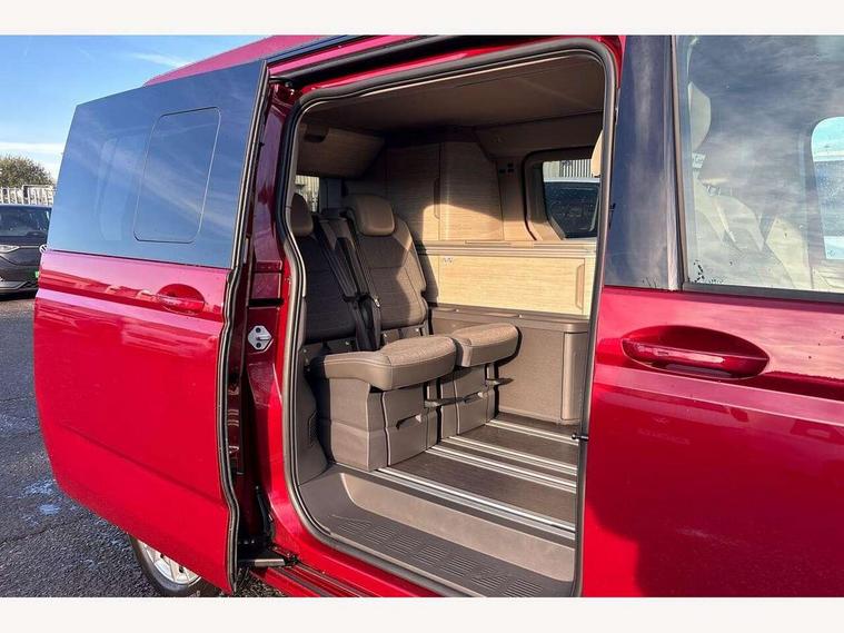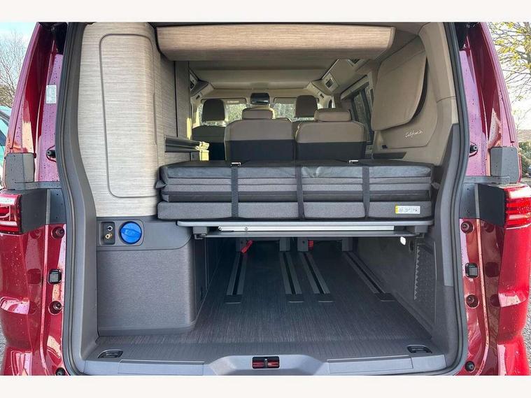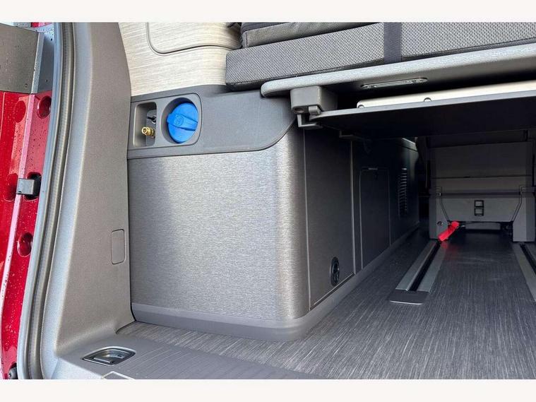 Advanced driver attention and drowsiness monitor, California on tour app, Digital cockpit pro, Discover Pro Navigation system, Driving profile selection, eCall emergency system, Emergency assist, Function control unit, IDA voice assistant and voice enhancer, Lane keeping system Lane Assist, Mobile phone interface, Multifunction camera, PAS, Preparation for online services, Tailgate with window aperture and with power latching, Traffic sign recognition, Turn assist with evasive assistance, Volkswagen wired and wireless app connect, Additional batteries 2nd and 3rd with voltage transformer NV, Battery without capacity specification, Standard battery/generator, Standard suspension and shock absorption, 2 USB-C ports at the front, 4 USB-C charging sockets in the passenger compartment, 8 Speakers, Digital radio reception (DAB), 3rd brake light, 65% light absorbing privacy glass, Dynamic Light Assist for LED matrix headlights, Electro hydraulic elevating roof, with three windows including one front passengers panorama opening, canvas in Basalt Grey, Four speed control for windscreen wipers, Heat and sound insulating laminated safety glass windshield, Heated windscreen, High gloss black door mirrors, Illuminated molding between headlamps, Nameplate set California, Poor weather light including cornering light, Red LED tail lights, Sliding window in front with fly screen in passenger compartment left/right & fixed window in rear in load passenger compartment at left, Windscreen wiper intermittent control, 2 single seats with integrated seatbelt and sleeping mat, 230V external inlet with charging feature for vehicle batteries, 230V inverter with socket on driver seat, Additional interior noise attenuation plus, Ambient interior lighting, Armrest on front swivel seats in both sides with electric lumbar support, Camper parking heater for continuous operation & parking heater for windshield defrosting with radio remote control, Darkening roller blinds and thermo mats, Drawers under the outer seats in the cab and passenger compartment & 2 waste bins, Front and rear headrests, Heated front seats, Heated steering wheel, Kitchen with outdoor folding table for cooking and roof storage box in décor 2, Lockable glove compartment with lighting, Multifunction leather steering wheel with paddle shifters, Plastic floor covering in passenger/load compartment, Single front passenger seat, Surround lighting in door area, Swivel seat on left with height adjustable including drawer, Swivel seat on right with height adjustable including drawer, Advanced assistance pack - California, Top package - California, 2x3 point automatic seatbelts at the rear outside with ECE label, with/without belt tensioner, Autonomous emergency braking front assist with pedestrian and cyclist monitoring, Child locks, Driver and front passenger airbags with front passenger airbag deactivation button, First aid kit with warning triangle and safety vest, Front Assist with pedestrian and cyclist detection, Front disc brakes, Height adjustable three point automatic seatbelts at front with belt and end fitting tensioners, Side and curtain airbags for driver and front passenger, curtain airbags for outer seats in rear, centre airbag in front, Swerve support and oncoming vehicle braking when turning, Tyre pressure loss indicator, Anti theft alarm system with interior monitoring in cab, backup horn and towing protection, Central locking + keyless locking and starting system Keyless Advanced with safe lock, Lockable wheel bolts, Preparation for alcohol interlock, 5+ Promise service plan, Dark silver brushed decorative inlays, Hub caps for alloy wheels, Tool kit,