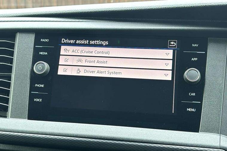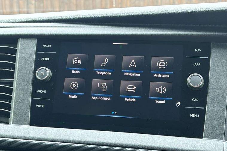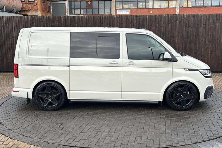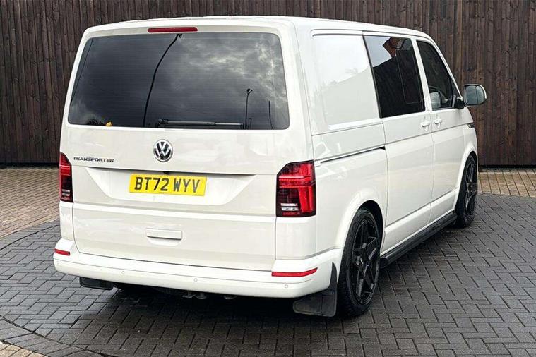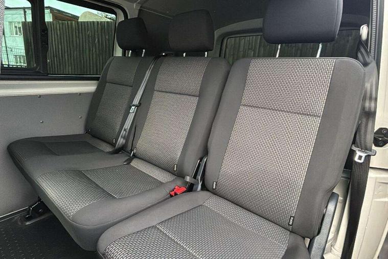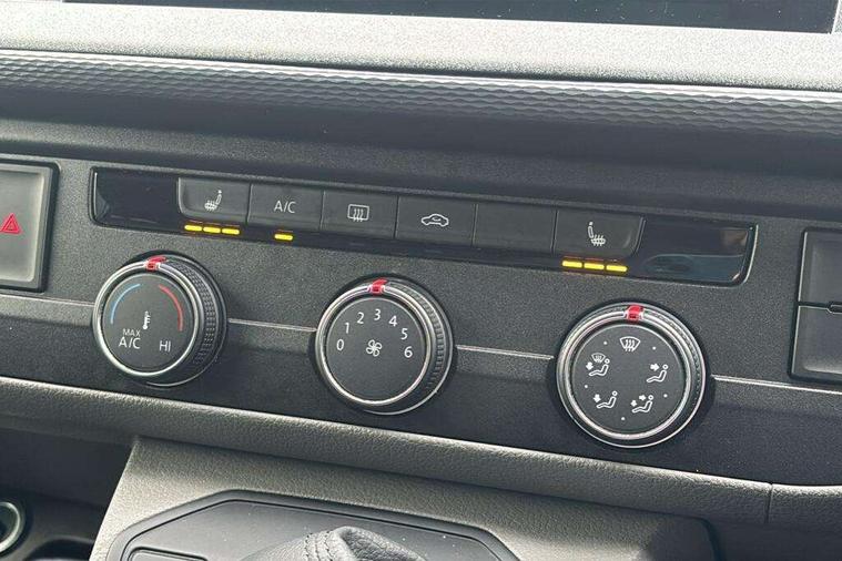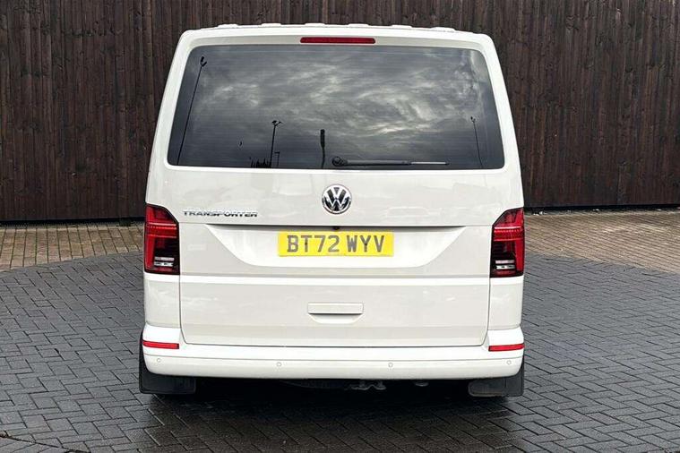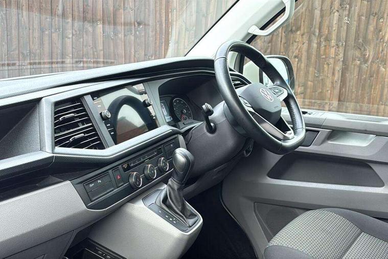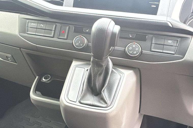 Adaptive cruise control, Child seat anchors ISOFIX and top tether in 2nd row of seats, Cross wind assist, Dimmable illuminated instruments, Driver alert with black and white multi function display plus, eCall emergency system, Forward collision warning front assist with autonomous emergency braking, Headlight range control, Mobile phone interface, Without voice control, 2 USB interfaces type C in dashboard, 4 speakers with 2 tweeters and 2 woofers, Composition colour radio with 6.5" touchscreen, Digital radio reception (DAB+), Volkswagen app connect, Automatic headlight control, leaving home and manual coming home feature, Front fog lamps with cornering light, Green heat insulating glass, Heated front windscreen, Illuminated steps in passenger/load compartment, Left convex exterior mirror, Power folding adjustable door mirrors with separately heated, Privacy glass from the B-pillar and heat-insulating glass in front, Radiator grille with 2 chrome trims, Rear window with heated insulating glass, heated rear window wiper and washer system, Right convex exterior mirror, Tailgate closing with unlatching from the inside, Transporter nameplate on the rear fender, Windshield wiper intermittent control with rain sensor for windshield wipers, Without adhesive film, 3 spoke leather wrapped multi function steering wheel, Additional sound deadening measures in cab and passenger compartment, Auto dimming breakaway interior rear view mirror, Comfort headliner in cab, hardboard roof trim in passenger and load compartment, Dust/pollen filter, Folding grab handles and storage compartments on cab seats, reading light, Front seats on the right in 1st row of seat, Glove compartment with illumination, Heavy duty tool kit and jack, Interior plastic loading edge protection, Lashing rings for load restraint system, LED Interior lighting in load and passenger compartment, Medium height for vehicles with window aperture hardboard side trim panels in passenger/load compartment, Refrigerant R134a, Standard lower part dashboard in palladium, Without partition, Without seats in 3rd row of seats, Comfort pack - Transporter, Exterior pack without fog light- Transporter, Light and vision pack - Transporter, Non smoker pack - Transporter, 3 point height adjustable seat belts on outer seats cab with electric pretensioners, Driver and front passenger airbag with front passenger airbag deactivation, Power operated child safety lock, Warning buzzer and light for driver seat belt not fastened, Anti theft alarm system with interior monitoring in cab, backup horn and towing protection, Lockable wheel bolts, 16" chassis with 16" brake system, Diesel particulate filter, Electronic stability control, ABS, ASR with deactivation button, hill start assist and brake assist system, Speed limiter, Start/stop system with regenerative breaking, 17" Devonport silver alloy wheels, Wheel trims,