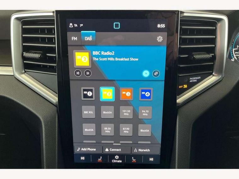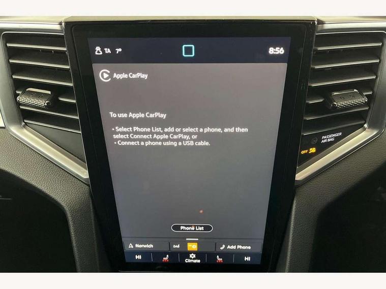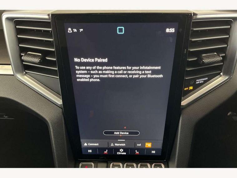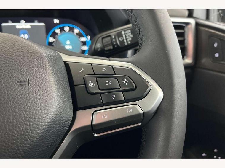 12-inch Infotainment system, Adaptive cruise control ACC with predictive speed limiter, Area View 360 camera, Autonomous emergency braking front assist with monitoring and braking for vehicles, pedestrians, cyclists, Digital Cockpit 12-inch, Dynamic road sign display, eCall emergency system, Lane keeping system lane assist and lane change system side assist, Navigation system, Park assist including park distance control in front and rear, rear traffic alert, PAS, Selector lever, Without manual activation of 360-degree surround and cargo area lighting, Without tachograph, Without trailer maneuvering system Trailer Assist, 1 USB charging socket on the interior rearview mirror, 6 speakers, AM / FM antenna and digital radio reception DAB+, Preparation for VW Connect Basic and VW Connect Navigation, Advanced high-beam control Dynamic Light Assist for IQ.LIGHT LED matrix headlamps, Black bumper in rear with chrome-plated styling elements, Body coloured exterior mirror housings and door handles, Body coloured front bumper, Body-colored rear gate handle, Chrome styling roll bar, Dark-tinted privacy glass rear side windows and rear window, Diversity antenna, Dynamic headlight range control, Exterior mirrors, power-adjustable, heated and power-folding, with surround lighting, Front and rear power windows, Fuel filler door with integrated misfueling prevention device, Heated rear window, IQ Light LED matrix headlamps, LED front fog lamps, LED rear combination lamps, Mud flaps front and rear, Radiator grille with chrome bezel, Satin air vents, Step with chrome insert, Trailer hitch preparation, Windshield sound-insulating with windshield heater, Windshield wiper intermittent control with rain sensor, Without hardtop, Without roof rails/roof rack, Without towing eyes in rear, Without trailer hitch, Without underride guard, 10-way power-adjustable driver seat and 8-way adjustable front passenger seat, 3 head restraints in 2nd row of seats, 3 point belts in addition height-adjustable in 1st row of seats, 3-point belts in 2nd row of seats, 3-seater bench in 2nd row of seats, Ambient lighting, Art velours upholstery, Carpet floor covering, Center armrest in rear, Child seat anchors ISOFIX on outer rear seats, i-Size compatible, Child seat recognition, Door handles in chrome, Driver seat with map pocket, Dual-zone climate control Climatronic, Gearshift/selector lever knob, leather, Glove compartment, illuminated and lockable, Headliner ebony black, Heating and fresh air system, Inductive charging feature, Leather-wrapped multi-function steering wheel, Overhead console 2 reading lights for driver and front passenger with glasses compartment in overhead console, Premium dashboard in leather look vinyl, Refrigerant, Roof grab handle on driver side, rigid grab handles, on A-pillar, Seat belt pretensioner, Seat occupied recognition with seat belt reminder for driver, front passenger and rear seat area, Sun visor on driver and front passenger side with illuminated vanity mirror, Tie-downs on the cargo area, Top tether child safety seat anchorage, Velour floor mats, Without hand brake lever, Without LED cargo area lighting, Without load compartment cover, Without load compartment loadliner, Without load support including protection frame on the rear cabin wall, Rear seat package II, Curtain and side airbags with center airbag, Front passenger airbag deactivation, Knee airbags for driver and front passenger, Without fire extinguisher, Without first aid kit, Anti-theft alarm system with interior monitoring, backup horn and towing protection, Keyless locking and starting system Keyless Access with SAFELOCK and 2 remote control folding keys, Online anti-theft alarm system, Rear gate lockable via central locking system, Remote control key, Tire Pressure Monitoring System (direct measurement), Wheel lock for spare wheel, Wheel locks, With programmable key, 120-V/230-V outlet in rear center console and cargo area, 3.55 gear ratio, Alternator - 250A, Automatic post collision braking system, Electronic parking brake, Electronic stability control (ESC) and Electromechanical brake booster, Emission standard, Four-wheel drive, Particle filter, Standard suspension, Stop/start function, Without differential lock in rear, Without electrical interface for external use, 6 switches in overhead console, 18" Amadora silver alloy wheels, Alloy spare wheel,