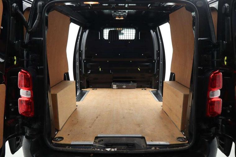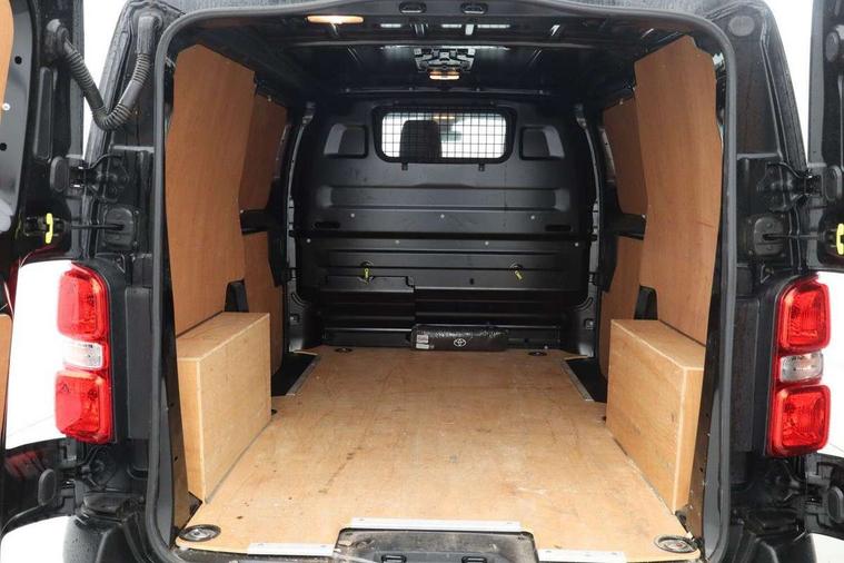 Bluetooth handsfree connectivity, Cruise control, PAS, Tyre pressure warning system (TPWS), 4 speakers, Digital radio (DAB), Radio/CD player, USB connector, 180 degree opening rear doors, Acoustic windscreen, Auto Headlights, Auto wipers, Black bumpers, Black door handles, Black protection moulding on side door, Body Coloured roof, Daytime running lights, Front power windows, Headlight cut-off reminder, Heated door mirrors, LED High mounted stop light, Manually adjustable day/night rear view mirror, Multi reflector halogen headlights, Panel rear wing doors, Power adjustable door mirrors, Rear combination lights, Short Antenna, Smoke tinted (30%) privacy glass on rear passenger window, Two manual sliding side doors, 2 seat front passenger bench, Driver seat armrest, Fabric seats, Front cup holders, Front room lights, Glovebox light, LED Driver and front passenger personal lights, Lighted and chilled upper glove box, Manually reclining and sliding driver and front passenger seats, Open upper dashboard storage compartment, Panel bulkhead with window and protective grille, Storage under passenger bench, Air conditioning and Smart cargo pack - Proace, Parking pack - Proace, Double front passenger airbag, Front passenger airbag on/off switch, Supplement restraint system (SRS) 2 airbags, Alarm, Deadlocks + 2 remote keys, Power door locks, 12V power front outlet, 12v socket in dashboard and rear, Adjustable speed limiter (ASL), Anti lock braking system (ABS), Brake Assist (BA), Stop/start function, Toyota traction select, Vehicle stability control (VSC) and hill start assist control (HAC), Full size spare wheel, Full wheel covers,