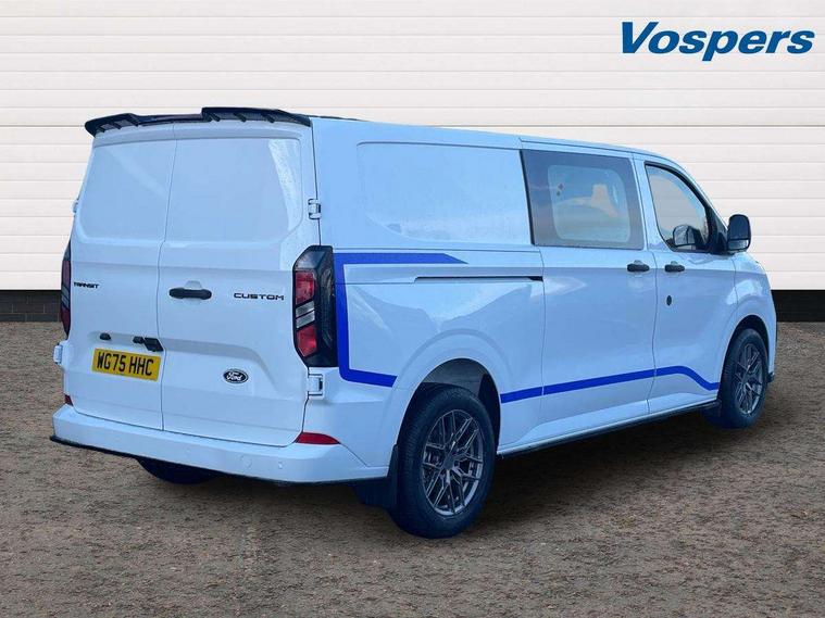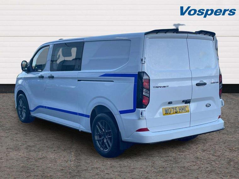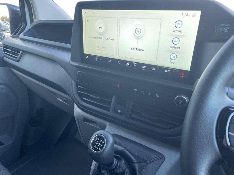13" Touchscreen, 5G embedded modem, AECS NO SMS/Roll Detect 2G, PAS, Rear USB charge port, Tyre pressure monitor, SYNC 4 - Android Auto/Apple Car Play, advance speech recognition, over the air update capability, Automatic headlights, Automatic windscreen wipers, Black exterior mirror finish, Daytime running lights, Front mud flaps, Front splash guards, Low roof line, Part body colour front bumper, Partialy body coloured rear bumpers, Power driver's front window, Quickclear front window defroster, Rear cargo hinged door, Rear splash guards, Trailer sway control, 3 Seat Rear seats with under seat stowage, 6 Load compartment tie down loops, Courtesy light, DCiV Moulded polymer bulkhead, LED lights, Rear reading light, Rubber floor in first row and second row, 2 remote keys, Alcohol Interlock wiring preparation pack, Thatcham category 1 alarm, 20L AdBlue tank, ABS, Diesel particulate filter, ESP, Hill launch assist, Traction control, Full wheelcovers,