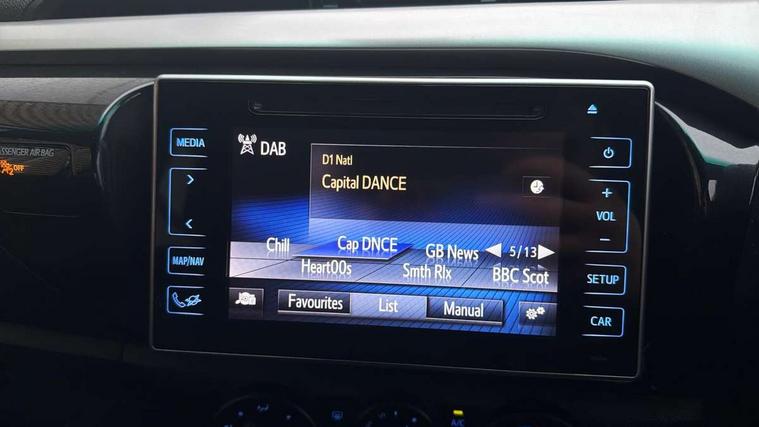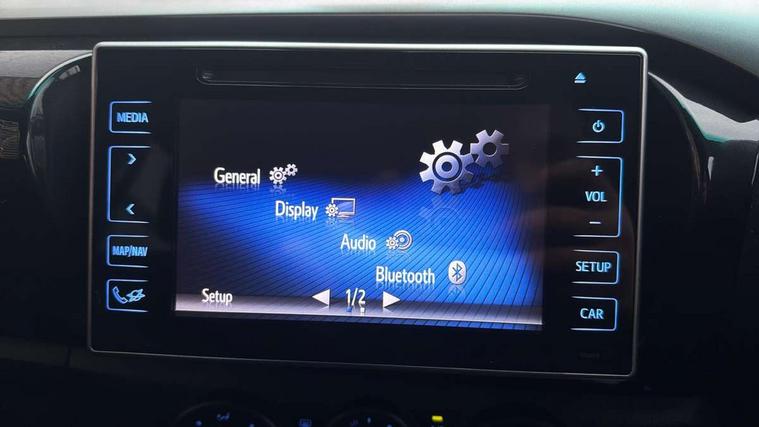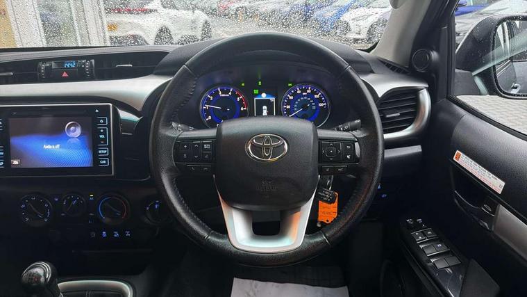 4.2" Multi information display, 7" Multimedia display, Adaptive cruise control, Fuel heater, Lights on warning buzzer, PAS, Rear view camera, Static guidelines on rear view camera, Tachometer, 6 speakers, Digital radio (DAB), Touch 2 audio + Bluetooth + MP3 Connectivity, USB and auxiliary socket, Auto Headlights, Black side steps, Body coloured front bumper, Chrome door handles, Chrome door mirrors, Chrome trim on radiator grille, Daytime running lights, Dusk sensitive lights, Electric front windows with one touch drivers window, Electrically retractable door mirror, Emergency brake light assist (EBS), Follow me home headlights, Front fog lights, Green tinted glass, Headlamp levelling, Headlight cut-off reminder, Headlight washers, Heated rear window, Heated/electric door mirrors with integrated indicators, Laminated rear window privacy glass, Mud flaps front and rear, Multi reflector halogen headlights, Rear fog lights, Trailer sway control, Underbody protection cover, Variable front wipers, 220V power socket, Carpet covered floor, Centre console coolbox, Centre console with lid, storage and armrest, Cloth upholstery, Cooler in upper glove box, Driver seat height adjuster, Inner load hooks on cargo deck, Leather steering wheel with mounted audio controls and leather gear knob, Locking glovebox, Manual air conditioning, Rear seat tip-up function, Tilt adjustable steering wheel, Child proof rear door locks, Driver and passenger airbag, Driver knee airbag, Front passenger airbag detector, Front passenger airbag on/off switch, Front seatbelt pre-tensioners + force limiters, Isofix child seat preparation, Rear seatbelt pre-tensioners with load limiters, Side and curtain airbags, Immobiliser, Lockable tailgate, Remote central locking, 2 12v sockets, ABS, Brake assist, Downhill Assist Control (DAC), EBD, Hill start assist, Load sensing proportioning system, Rear differential lock with auto disconnect, Stop/start function, Traction control, Vehicle stability control, All terrain tyres, Full size spare wheel,