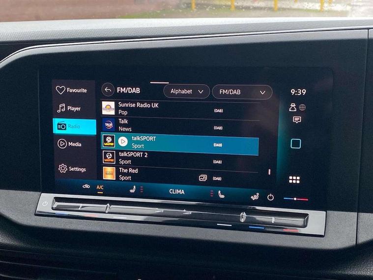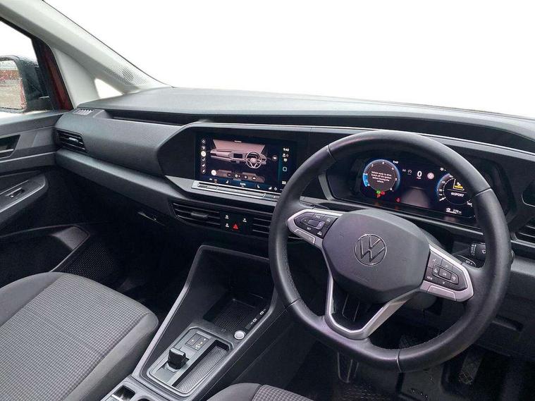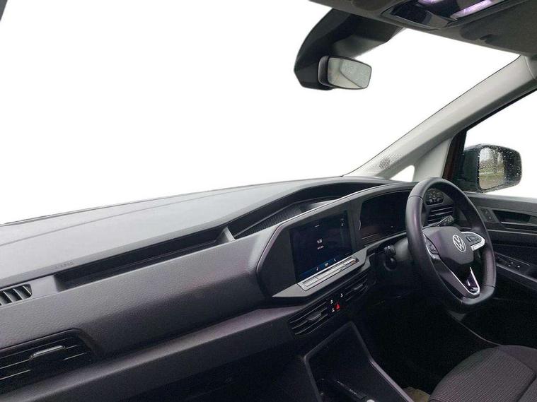 Bluetooth - Mobile phone interface, Car2X technology, Driver alert system, eCall emergency system, Intelligent Speed Assist, Lane assist, Seatbelt warning indicator, Service indicator, Start-stop system with regenerative braking, 2 USB interfaces type C in dashboard, App-Connect - Wireless for Apple CarPlay, DAB Radio, We Connect Plus Preparation, Automatic hazard light activation under emergency braking, Black painted exterior mirror housings, body-colored door handles and Silver sliding door rail, Body coloured bumpers, Electric front windows, LED rear combination lights, LED rear tail lights, Roof rail preparation, Windscreen wiper with variable intermittent delay and wash-wipe system, Dimming breakaway interior rear view mirror, Electronically controlled heating system, ergoComfort seats for driver, Interior light in headliner incorporting LED technology, Lockable glove compartment door with light, Manual heating and ventilation system, Manual height adjustment for front seats and seat cushion inclination and depth adjustment on drivers seat, Multi function leather steering wheel, Power-adjustable lumbar support for drivers seat, Reach and rake adjustable steering column, Six lashing points for securing loads, Steering wheel paddle shift, Storage compartments under driver and front passenger seats, Sun visors with mirror, airbag label on front passenger sun visor, Winter pack plus - Caddy, 3-point seat belts in front, with pretensioner and height adjustment, Driver and front passenger airbag with front passenger airbag deactivation, Tyre pressure monitoring system, Anti-theft alarm system, interior monitoring, backup horn, and towing protection, Electronic engine immobiliser, Remote central locking with deadlocks, interior locking, Anti locking braking system (ABS), Automatic post collision braking system, Brake assist, Diesel particulate filter, Electric parking brake with auto hold function, Electronic brake force distribution (EBD), Electronic differential lock (EDL), Electronic stabilisation programme (ESP), Engine drag torque control (MSR), Hill hold assist, Traction control system (TCS), Decorative beige birch vein inserts, Wheel bolts with anti-theft protection (unlockable),