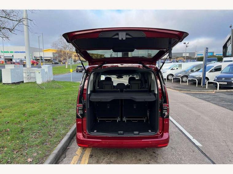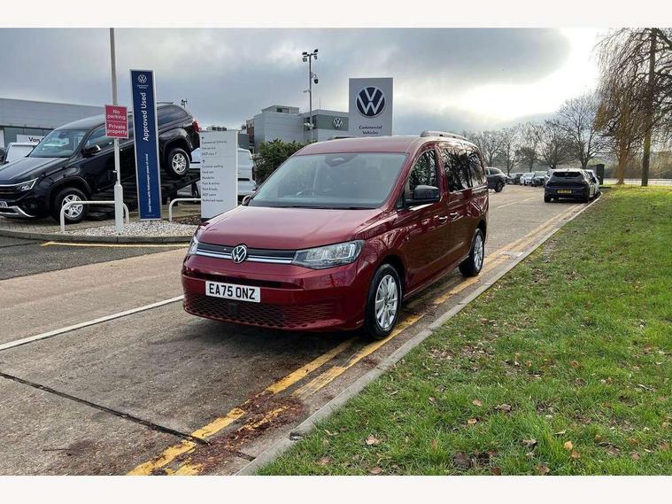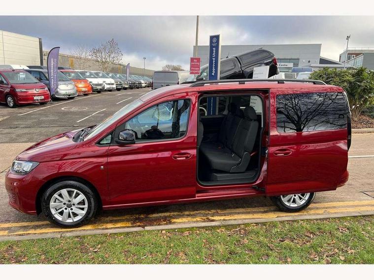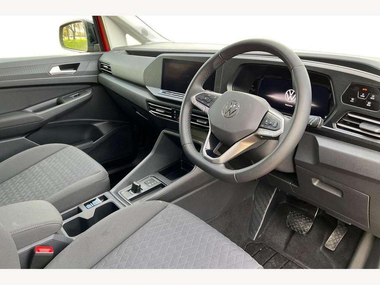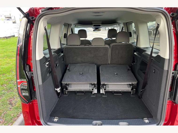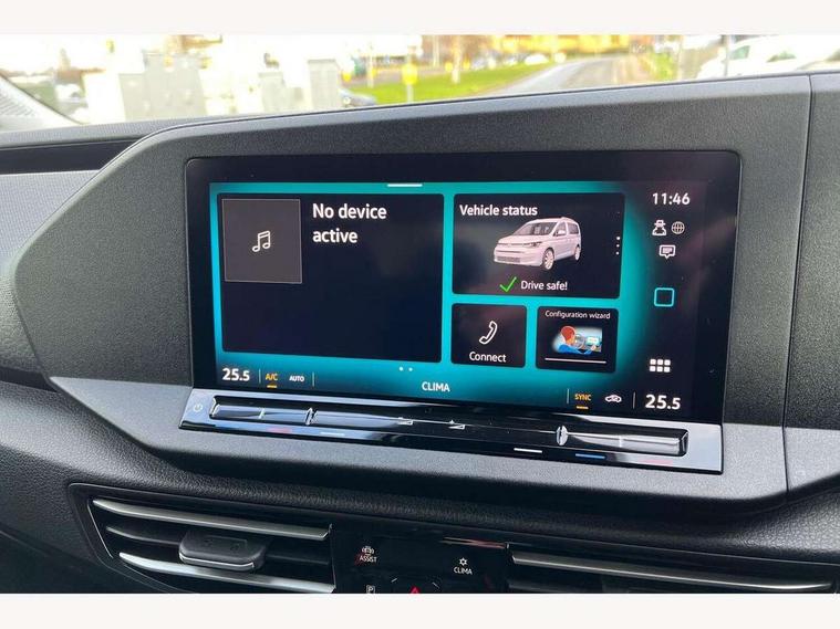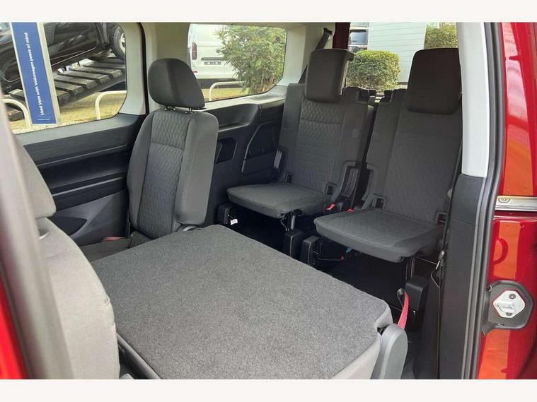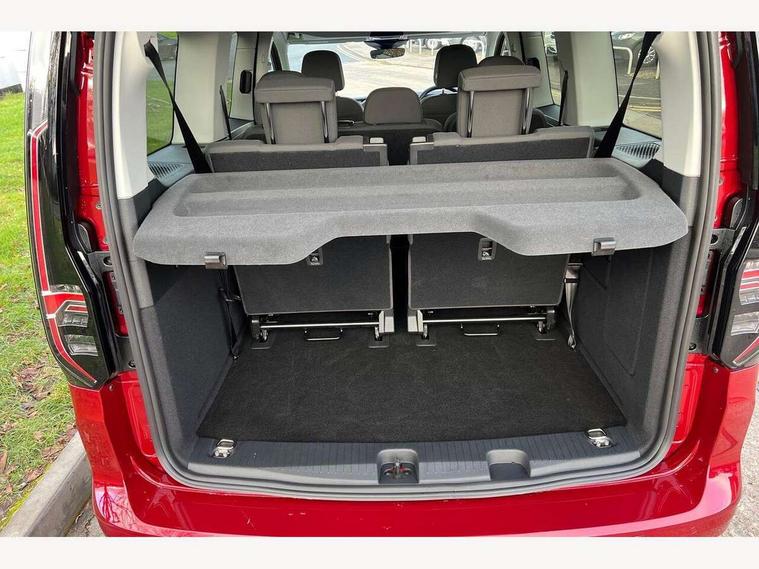 Bluetooth mobile phone interface, Cruise control + speed limiter, Digital cockpit, Driver alert system, eCall emergency call system, Front and rear parking sensors, Gesture control, Lane assist, Multi function display, On board computer, Rear view camera, Service interval indicator, Start/stop system with regenerative braking, We connect plus preparation, Diesel particulate filter, Electronic differential lock, 2 Type C USB, DAB Digital radio, Anti dazzle rear view mirror, Automatic hazard lights activation under emergency braking, Body colour bumpers, Electric front windows, Electrically adjustable and folding door mirrors, Fixed side window in load/passenger compartment, Heated rear window, LED rear tail lights, Rain sensor, Rear window wiper and washer system with intermittent control, Third high level brake light, Twin near side and off side sliding doors, Windscreen wiper with variable intermittent delay and wash wipe system, 12V socket in passenger compartment, 5 standard interior lights in passenger compartment, Backrest release for front passenger seat, Carpet floor covering in cab, Carpet floor covering in passenger compartment, Centre console high with armrests adjustable, Centre console with 2 cupholders, Door and side trim panel in fabric, Electrically controlled heating system, Folding table on front seat backrests, Front head restraints, Front passenger seat foldable, Glove compartment cover with light, Height adjustable head restraints, Illumination lockable glovebox compartment, Interior light in headliner incorporating LED technology, Isofix on 2nd row outer seats, Leather gearshift knob/handle, Leather multifunction steering wheel, Manual adjustable lumbar support in front seats, Manual front seats with height adjustment, Reach and rake adjustable steering column, Rear head restraints, Removable waste bin with cover for cab, Retractable luggage compartment cover, Seat occupied recognition for front seats, Sliding trunk cover, Split folding/removable rear seat, Storage drawers under front seats, Sun visors with mirror and airbag label on front passenger, Trialog cloth upholstery, 7 seat pack - Caddy, 3-point seat belts in front with pretensioner and height adjustment, 3x3 point rear seatbelts, Anti-lock braking system (ABS), Automatic post collision braking system, Autonomous emergency braking front assist with pedestrian and cyclist monitoring, Brake assist, Child locks on rear doors, Curtain airbag for outer seats in rear, Direct tyre pressure monitoring system, Driver and front passenger airbag with front passenger airbag deactivation, Electric parking brake with auto hold function, Electronic brake force distribution, Engine drag torque control, ESP, First aid kit with warning triangle and safety vest, Front centre airbag, Power operated child safety locks, Seat belt warning if unfastened, front and rear, Side and curtain airbag for driver and front passenger, Traction control system (TCS), Anti theft alarm system with interior monitoring, backup horn and towing protection, Electronic engine immobiliser, Wheel bolts unlockable anti-theft protection, Decorative inserts birch vein,