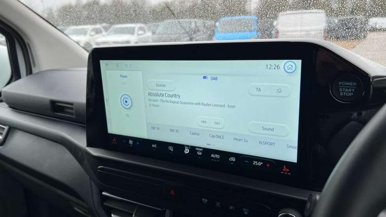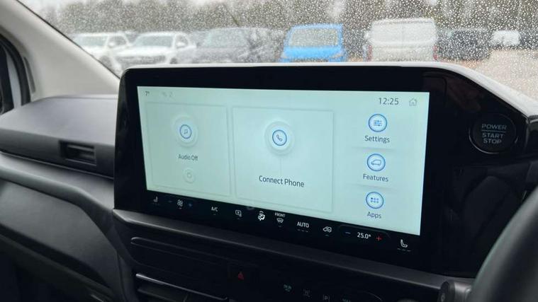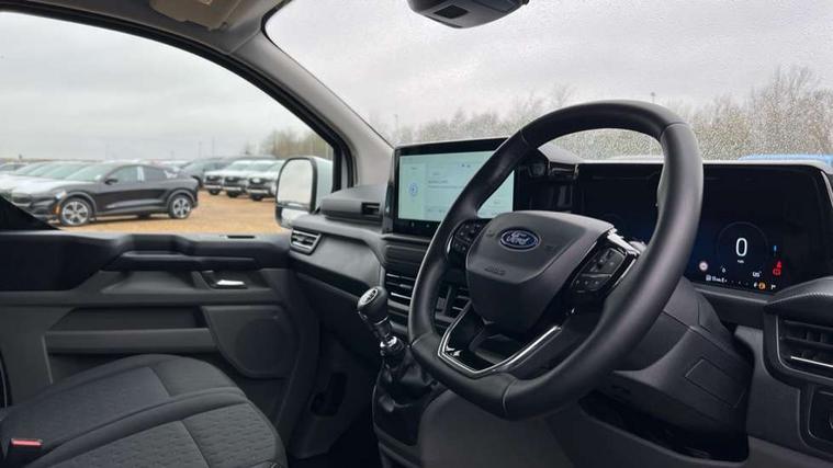 13" Touchscreen, 5G embedded modem, AECS NO SMS/Roll Detect 2G, PAS, Rear USB charge port, Tyre pressure monitor, SYNC 4 - Android Auto/Apple Car Play, advance speech recognition, over the air update capability, Automatic headlights, Automatic windscreen wipers, Body coloured door mirrors, Body coloured front bumper, Body coloured rear bumpers, Daytime running lights, Electric front windows with one touch facility for driver and front passenger, Front mud flaps, Front splash guards, Low roof line, Molded load floor liner, Quickclear front window defroster, Rear cargo hinged door, Rear splash guards, Trailer sway control, 3 Seat Rear seats with under seat stowage, 6 Load compartment tie down loops, Carpet floor in first row and second row, Courtesy light, DCiV Moulded polymer bulkhead, Interior grab handle with driver's sunglasses holder, LED lights, Locking glove box lid, Rear reading light, Rubber in cargo area, Sensico gearshift knob, Super bright load compartment lights, Passenger airbag, 2 remote keys, Alcohol Interlock wiring preparation pack, Keyless entry and start, Locking wheel lug nut, Thatcham category 1 alarm, 20L AdBlue tank, ABS, Diesel particulate filter, ESP, Hill launch assist, Traction control, Full wheelcovers,