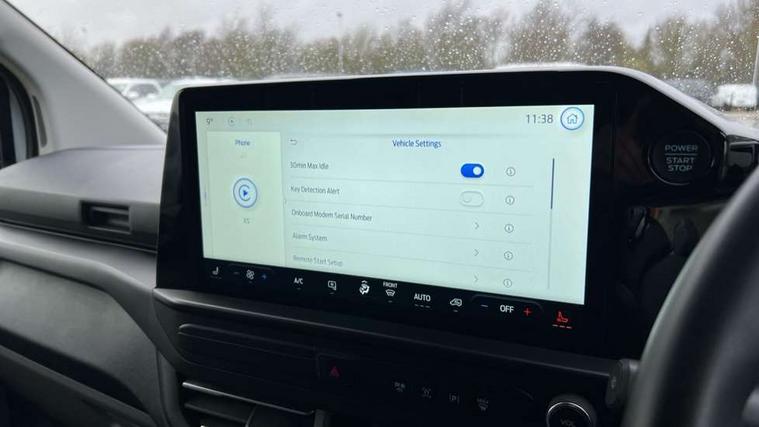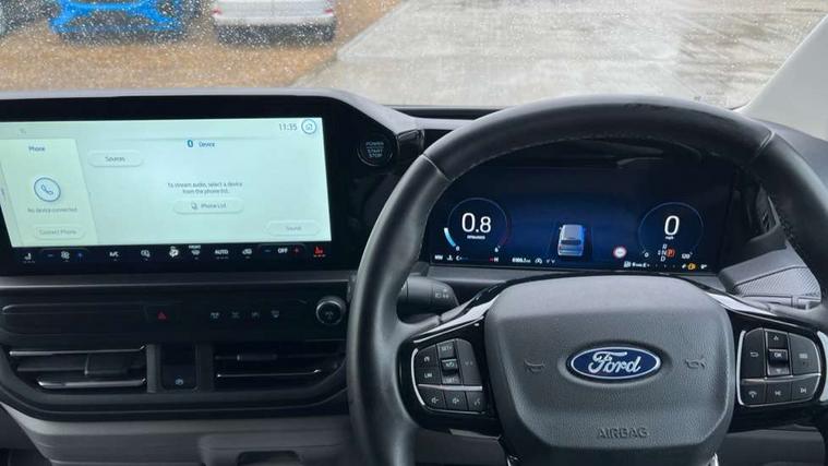 13" Touchscreen, 5G embedded modem, AECS NO SMS/Roll Detect 2G, PAS, Tyre pressure monitor, SYNC 4 - Android Auto/Apple Car Play, advance speech recognition, over the air update capability, Automatic headlights, Automatic windscreen wipers, Body coloured door mirrors, Body coloured front bumper, Body coloured rear bumpers, Daytime running lights, Electric front windows with one touch facility for driver and front passenger, Front mud flaps, Front splash guards, Low roof line, Quickclear front window defroster, Rear cargo hinged door, Rear splash guards, Trailer sway control, 8 Load compartment tie down loops, Courtesy light, Interior grab handle with driver's sunglasses holder, LED lights, Locking glove box lid, Sensico gearshift knob, 2 remote keys, Alcohol Interlock wiring preparation pack, Keyless entry and start, Locking wheel lug nut, Thatcham category 1 alarm, 20L AdBlue tank, ABS, Diesel particulate filter, ESP, Hill launch assist, Traction control, Full wheelcovers,