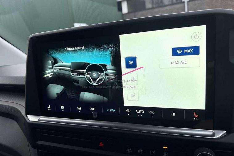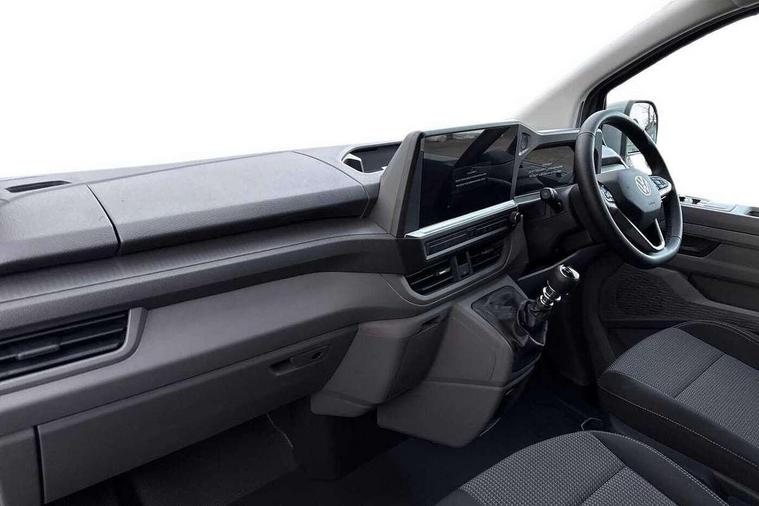 12" digital drivers display, 13" touchscreen infotainment display with wireless app connect and DAB radio, 5G Modem, Adaptive cruise control, Apple CarPlay and Android Auto, Dynamic road sign display, eCall emergency system, Electromechanical speed sensitive power steering, height and longitudinally adjustable steering column, Lane and blind spot assist with exit warning system, Preparation of VW connect and connect plus, Wireless mobile phone charging, Wrong way driver warning, Body colour bumpers, Body coloured door handles, Body coloured door mirrors, Body coloured radiator grille, Electrically heated, adjustable and folding door mirrors, Heat reflecting side window glass, Mud flaps front and rear, Rear Transporter nameplate in black grained decorative trim, Vehicle opening configuration 1x 1st row of seats, 2x all doors, 12V outlet in centre console and 12V outlet on rear right D-pillar, 2x 15-W USB data/charging ports in dashboard and 1x USB-C, 1x USB-A center bottom, 2x LED lights in load compartment, 3x additional super bright LED lights in load compartment, 4 way height and tilt adjustable head restraints, 5 additional USB-C charging ports, Black plastic scuff plate for sliding door in cargo without illumination, Cabin interior lighting, Glasses compartment in driver side roof, Grab handle on A-pillar passenger side, Illuminated lockable glovebox, Lashing rings for reinforced floor covering, Leatherette gear lever, Narrow centre console with cup holder and compartment for mobile phone, Overhead storage compartment, Rubber floor covering in cab, Striped fabric upholstery, Without passenger seats in load compartment, Driver and front passenger airbag with front passenger airbag deactivation, Dual tone horn, Front and curtain airbags for driver and front passenger, Seat belt pretensioner for driver seat, Anti theft alarm system with interior monitoring in cab, backup horn and towing protection, Electronic immobiliser, Lockable wheel bolts, Preparation for alcohol ignition interlock, 5+ Promise, Alternator - 230A, Electromechanical brake booster, Electronic stability control, ABS, ASR with deactivation button, hill start assist and brake assist system,