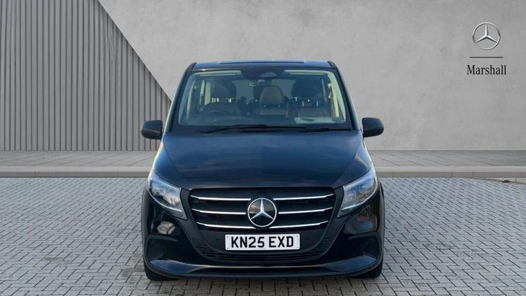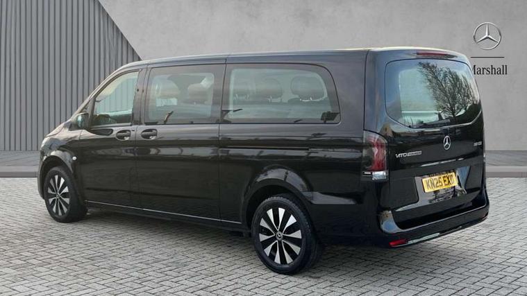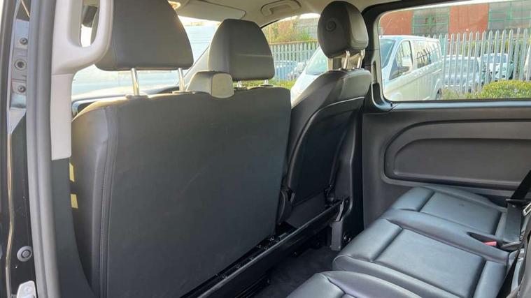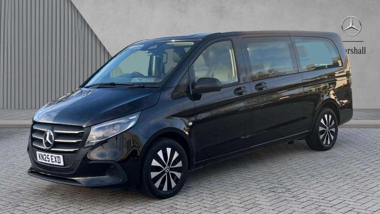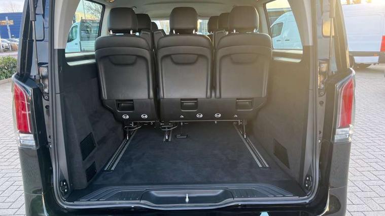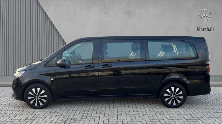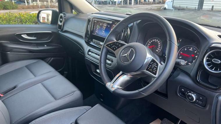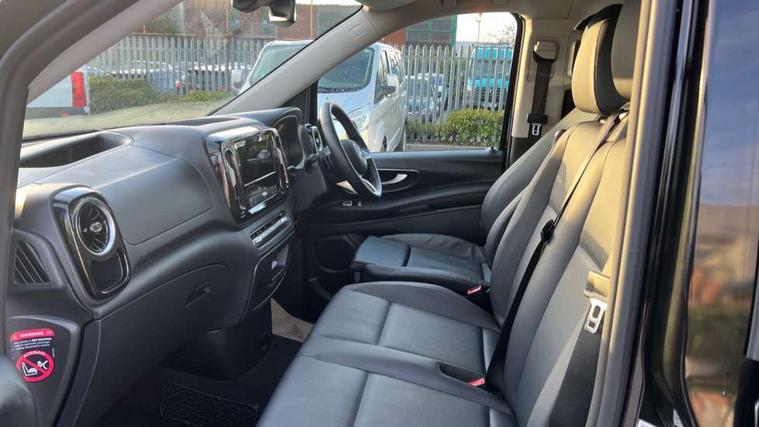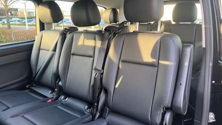 Active lane keeping assist, Blind spot assist, Comfort overhead control panel, Cruise control, Electric power steering, Modern instrument cluster with 5.5" TFT color display, Wireless tyre pressure monitoring, 2 way front and rear loudspeakers, Aux input socket, Digital radio (DAB), MBUX multimedia system with 10.25" touchscreen, Adaptive brake lights, Chrome radiator grille, Colour coded front and rear bumpers, Daytime running lights, Electric front windows, Electrically heated and adjustable door mirrors, Exit lamps, Headlight assistant, Heat insulating glass, LED tail lamps, brake lamps and indicators, Multibeam LED with highbeam assist plus, Side sliding door - left, Side sliding door - right, Tailgate, Third rear brake light, 12V outlets right and left for rear seat row, 3 seater comfort bench in 2nd row with folding outer seat, Armrests for crew/passenger compartment, Comfort driver's seat, Driver's seat lumbar support, Electrical component for trailer socket, Front carpets, Front door storage pockets, Front footwell lights, Grab handles for drivers and co-driver doors, Grab handles in rear, Height adjustable head restraints, Height and rake adjustable steering wheel, Illuminated vanity mirrors with sunvisors, Interior ambient lighting, Interior panelling higher execution, Leather steering wheel, Locking glove compartment, Multifunctional steering wheel, Panelling under roof, Rear carpets, TPO Plastic flooring in passenger compartment, Anti theft protection pack - Vito Tourer, Chrome interior appointments pack - Vito Tourer, Mirror pack - Vito Tourer, Parking pack - Vito Tourer, Smartphone integration package - Vito/Vito Tourer, 3 point seatbelts for all seats, Accident recovery and breakdown management, Attention assist, Co-driver airbag, Co-driver thorax, pelvis and side airbag, Crosswind assist, Driver thorax, pelvis and side airbag, Driver's airbag, Mercedes-Benz emergency call system, Windowbags for driver and co-driver, 12V outlets sockets, 24 litre larger AdBlue tanks, 70 litre fuel tank, 9G tronic automatic gearbox, ABS/ESP/ASR, Active brake assist, Diesel particulate filter, EBV and BAS, Hill start assist, Mechanical parking brake, Speed limiter 210 km/h, Traction control, Uprated heavy duty battery - 95Ah,