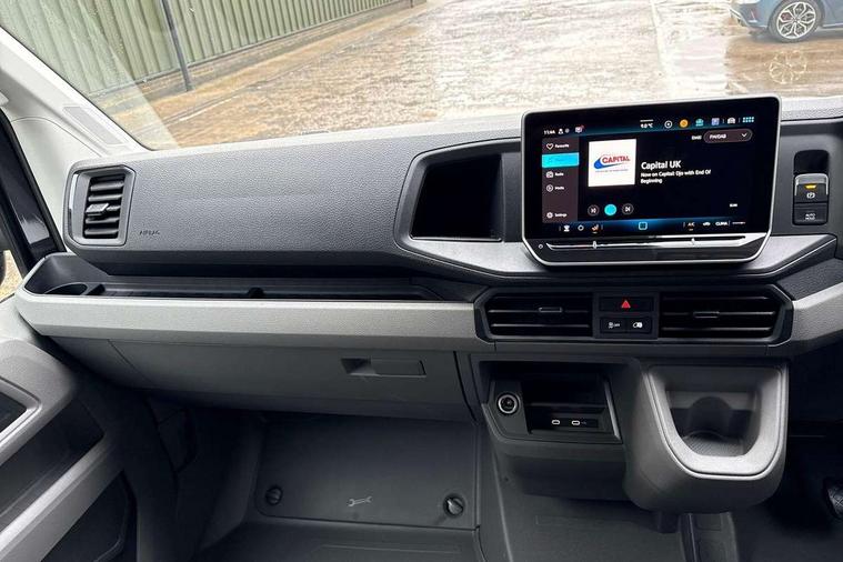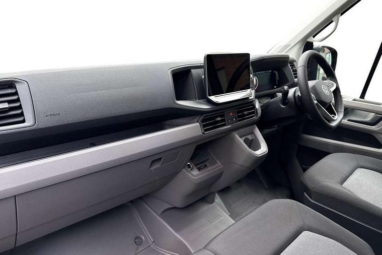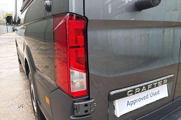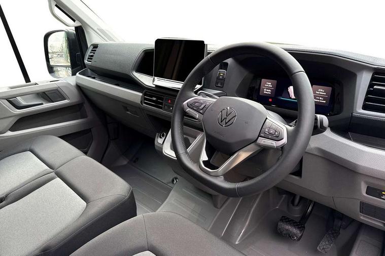 Bluetooth, Digital clock, Driver alert system, E-call + We connect basic preparation, Instrument cluster, Lights on warning buzzer, Locking fuel cap, Multi-function Display Plus, Rev counter, Service indicator, Speedometer, Voice control system, Composition media with 6.5" with we connect plus prep, 4 speaker, multifun display plus, USB, mob interface, app con, "We connect function", DAB Radio, Auto low beam mode, Leaving home function and manual coming home function, Cab doors, Convex and wide angle mirror, Driver seatbelt warning light, Electric windows, Electrically heated and adjustable door mirrors, Half painted front bumper, Heat insulating glass, Indicators in front door mirrors, One towing eye in front, Rear wing doors with 270 degree hinges, Special identification plate, Unpainted radiator grille, Air recirculation system, Ashtray, Centre console storage tray, CFCU preparation, Charcoal filter, Climatic air conditioning, Document holder on centre console, Drinks holders, Electromechanical Servotronic steering, Electronically controlled heating system, Fully adjustable suspension type driver seat, Grab handles on rear entry pillars, Height adjustable head restraints, Height and reach adjustable steering wheel, Illuminated glove compartment with lockable lid, Interior light, including 2 reading lights, Interior light, switchable by door, Jack and tool kit, Preparation for interface for external use with terminal block, Storage compartments in doors and in step, right, Storage tray on dashboard, Two 12V outlets in the cab (in the dashboard), Without rear side trim panel passenger load compartment, Non-smokers pack - Crafter, 3 point inertia reel belt on all seats, Automatic hazard light with emergency braking, Crosswind assist, Driver and front passenger airbag with front passenger airbag deactivation, Height adjustable seatbelts for outer cab seats, 1 rigid key, Anti-theft alarm with interior monitor, back up horn and tow away protect, overhead storage with two 1-DIN, reading light, SAFELOCK with 2 remote keys, Engine immobiliser, ABS, Automatic post collision braking system, EBA, EBD, EDL, ESP, Front disc brakes, HBA, Hill start assist, Parking brake - hill hold control, Start and stop system with regenerative braking, TCS, Hub cap covers,