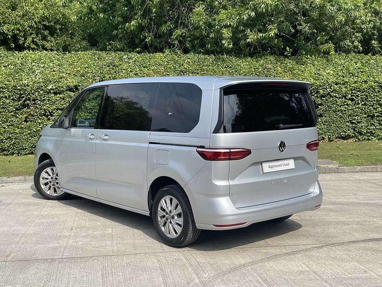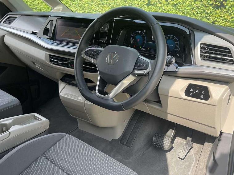 Adaptive cruise control with C2X including front assist and city emergency braking system, App-Connect incl. App-Connect Wireless for Apple CarPlay and Android Auto, Digital Cockpit Pro with 10.25" Display, Driver alert system, Dynamic road sign display, eCall emergency system, Lane keeping system Lane Assist, Mobile phone interface, PAS, Rear view camera, Socket AC Type 2, Tailgate, Voice control system including Alexa web app, We connect preparation, 1 x 6 metre charging cables - 16amp AC cable for wallbox chargepoints (mode 3), Charging cable Mode 3 Type 2 / 3 (16A), Electronic differential lock, 2 USB-C ports in front and 4 USB-C ports in passenger compartment, Digital radio reception (DAB+), Automatic headlight control with welcome home lights, Body coloured exterior door handles, Break away auto dimming rear view interior mirror, Dynamic headlight range control (self adjusting), Electrically adjustable, heated and folding door mirrors, Front fog lights, Glossy black painted radiator grille with 2 chrome trims, Heated rear window with window wiper and washer system, High gloss black exterior mirror housing, Interior noise reduction measures, Laminated safety glass windshield, heat and sound insulating, LED 3rd brake lamp, LED main headlamps with LED separate daytime running light, LED rear combination lamps, Rear wiper, Sliding door on left/right with power latching, Windshield wiper intermittent control with rain sensor, 1 x 12V sockets on the dash panel, 12V socket in passenger compartment, 3 seat bench in 3rd row, 7 single seats removable/movable, Carpet mats in cab, Front and rear head restraints, Grab handles on A pillar for access, on driver and front passenger side, Height adjustable seats, Height and longitudinal adjustment steering wheel with gear shift paddles, Illumination lockable glovebox compartment, ISOFIX (including i-size) and top tether in all seats in 2nd and 3rd rows, LED luggage compartment lighting X 2, Load compartment partition to 20kg with bag hooks and luggage net, Luggage compartment lid power latching with unlatching from inside, Multifunction leather steering wheel with tiptronic, Reinforced carpet floor covering in passenger compartment, Removable armrests for front seats with power adjustable lumbar support and folding table for 2nd row passenger seats, Removable armrests in 2nd row passenger seats, Single front passenger seat, Storage compartment under the 2nd and 3rd row seat and two waste bins, Sun visors with illuminated vanity mirrors and airbag warning label on front passenger sun visors, Surround lighting in door area, 3x3 point rear seat belts, ABS, Automatic post collision braking system, Autonomous emergency braking front assist with pedestrian and cyclist monitoring, Driver and front passenger airbag with front passenger airbag deactivation, Electric childproof lock, Electronic stability control (ESC) and Electromechanical brake booster, ESP, First aid kit with warning triangle and safety vest, Hill hold assist, Seat belt warning for the drivers and all passengers seats if unfastened, Side and curtain airbags for driver and front passenger, curtain airbags for outer seats in rear, centre airbag in front, Single tone horn, Traction control, Tyre pressure monitoring system, Anti theft alarm system with interior monitoring in cab, backup horn and towing protection, Keyless start, Start/stop button on centre console, Dark silver brushed decorative inserts,