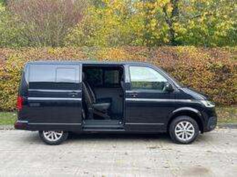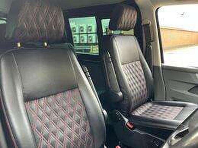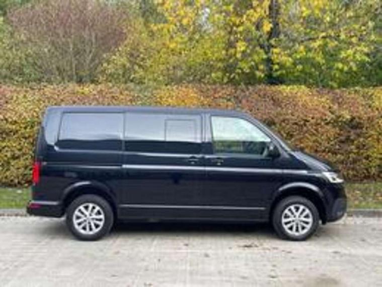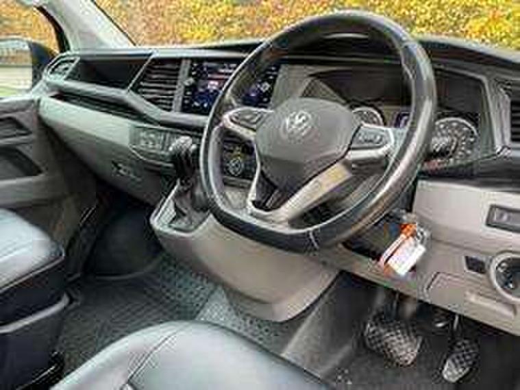 Adaptive cruise control, Child seat anchors ISOFIX and top tether in 2nd row of seats, Cross wind assist, Dimmable illuminated instruments, Driver alert with black and white multi function display plus, eCall emergency system, Forward collision warning front assist with autonomous emergency braking, Headlight range control, Mobile phone interface, Without voice control, 2 USB interfaces type C in dashboard, 4 speakers with 2 tweeters and 2 woofers, Composition colour radio with 6.5" touchscreen, Digital radio reception (DAB+), Volkswagen app connect, Automatic headlight control, leaving home and manual coming home feature, Front fog lamps with cornering light, Green heat insulating glass, Heated front windscreen, Illuminated steps in passenger/load compartment, Left convex exterior mirror, Power folding adjustable door mirrors with separately heated, Privacy glass from the B-pillar and heat-insulating glass in front, Radiator grille with 2 chrome trims, Rear window with heated insulating glass, heated rear window wiper and washer system, Right convex exterior mirror, Tailgate closing with unlatching from the inside, Transporter nameplate on the rear fender, Windshield wiper intermittent control with rain sensor for windshield wipers, Without adhesive film, 3 spoke leather wrapped multi function steering wheel, Additional sound deadening measures in cab and passenger compartment, Auto dimming breakaway interior rear view mirror, Comfort headliner in cab, hardboard roof trim in passenger and load compartment, Dust/pollen filter, Folding grab handles and storage compartments on cab seats, reading light, Front seats on the right in 1st row of seat, Glove compartment with illumination, Heavy duty tool kit and jack, Interior plastic loading edge protection, Lashing rings for load restraint system, LED Interior lighting in load and passenger compartment, Medium height for vehicles with window aperture hardboard side trim panels in passenger/load compartment, Refrigerant R134a, Standard lower part dashboard in palladium, Without partition, Without seats in 3rd row of seats, Comfort pack - Transporter, Exterior pack without fog light- Transporter, Light and vision pack - Transporter, Non smoker pack - Transporter, 3 point height adjustable seat belts on outer seats cab with electric pretensioners, Driver and front passenger airbag with front passenger airbag deactivation, Power operated child safety lock, Warning buzzer and light for driver seat belt not fastened, Anti theft alarm system with interior monitoring in cab, backup horn and towing protection, Lockable wheel bolts, 16" chassis with 16" brake system, Diesel particulate filter, Electronic stability control, ABS, ASR with deactivation button, hill start assist and brake assist system, Speed limiter, Start/stop system with regenerative breaking, 16" Clayton alloy wheels, Wheel trims,