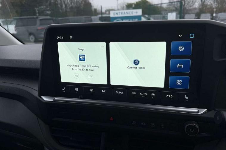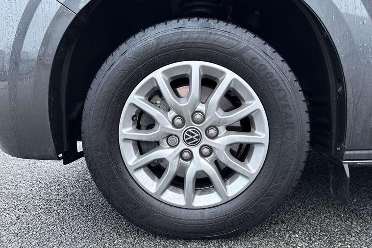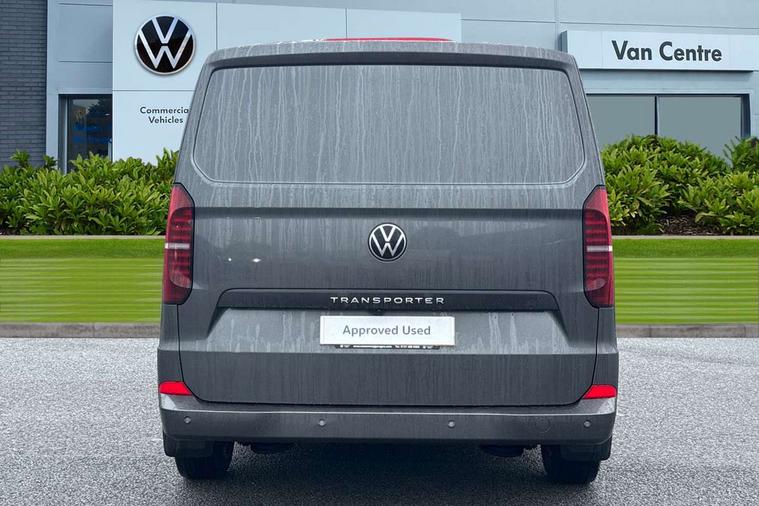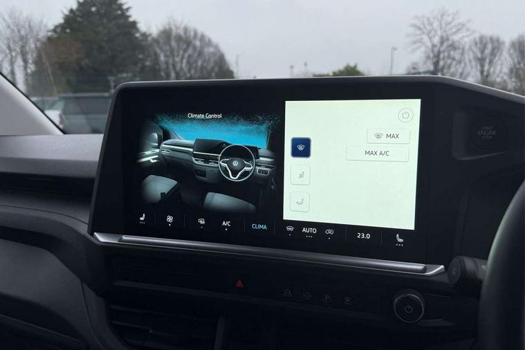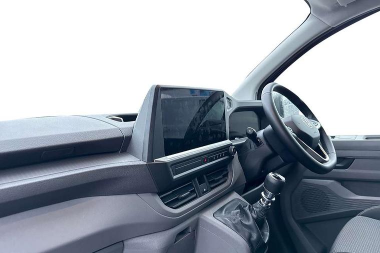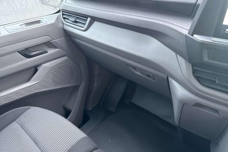 12" digital drivers display, 13" touchscreen infotainment display with wireless app connect and DAB radio, 5G Modem, Adaptive cruise control, Apple CarPlay and Android Auto, Dynamic road sign display, eCall emergency system, Electromechanical speed sensitive power steering, height and longitudinally adjustable steering column, Lane and blind spot assist with exit warning system, Preparation of VW connect and connect plus, Wireless mobile phone charging, Wrong way driver warning, Body colour bumpers, Body coloured door handles, Body coloured door mirrors, Body coloured radiator grille, Electrically heated, adjustable and folding door mirrors, Heat reflecting side window glass, Mud flaps front and rear, Rear Transporter nameplate in black grained decorative trim, Vehicle opening configuration 1x 1st row of seats, 2x all doors, 12V outlet in centre console and 12V outlet on rear right D-pillar, 2x 15-W USB data/charging ports in dashboard and 1x USB-C, 1x USB-A center bottom, 2x LED lights in load compartment, 3x additional super bright LED lights in load compartment, 4 way height and tilt adjustable head restraints, 5 additional USB-C charging ports, Black plastic scuff plate for sliding door in cargo without illumination, Cabin interior lighting, Glasses compartment in driver side roof, Grab handle on A-pillar passenger side, Illuminated lockable glovebox, Lashing rings for reinforced floor covering, Leatherette gear lever, Narrow centre console with cup holder and compartment for mobile phone, Overhead storage compartment, Rubber floor covering in cab, Striped fabric upholstery, Without passenger seats in load compartment, Driver and front passenger airbag with front passenger airbag deactivation, Dual tone horn, Front and curtain airbags for driver and front passenger, Seat belt pretensioner for driver seat, Anti theft alarm system with interior monitoring in cab, backup horn and towing protection, Electronic immobiliser, Lockable wheel bolts, Preparation for alcohol ignition interlock, 5+ Promise, Alternator - 230A, Electromechanical brake booster, Electronic stability control, ABS, ASR with deactivation button, hill start assist and brake assist system,