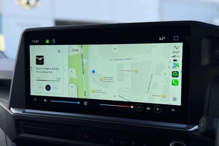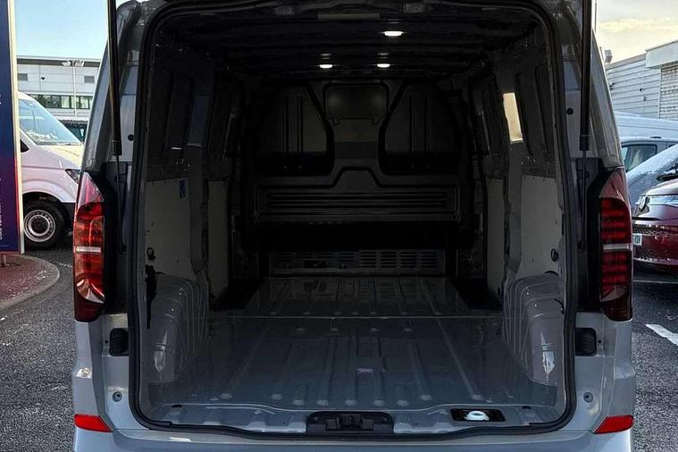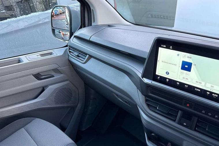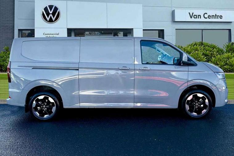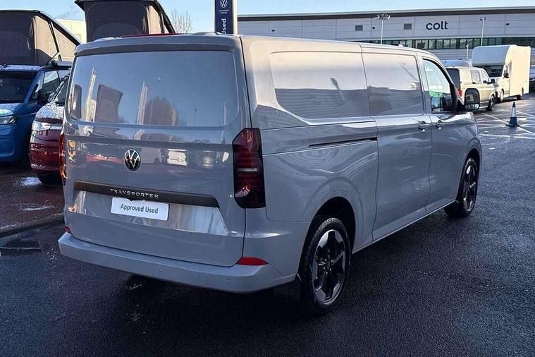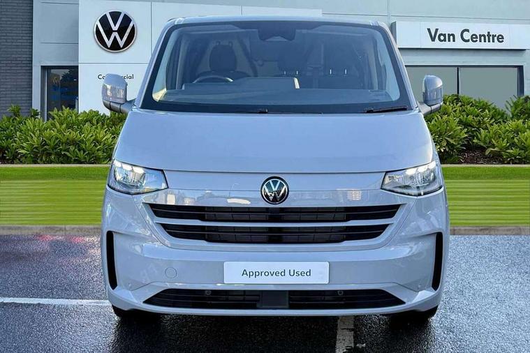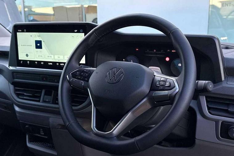 12" digital drivers display, 13" touchscreen infotainment display with wireless app connect and DAB radio, 5G Modem, Adaptive cruise control, Apple CarPlay and Android Auto, Dynamic road sign display, eCall emergency system, Electromechanical speed sensitive power steering, height and longitudinally adjustable steering column, Lane and blind spot assist with exit warning system, Preparation of VW connect and connect plus, Traffic jam assist, Wireless mobile phone charging, Wrong way driver warning, Body colour bumpers, Body coloured door handles, Body coloured door mirrors, Body coloured radiator grille, Electrically heated, adjustable and folding door mirrors, Heat reflecting side window glass, Mud flaps front and rear, Rear Transporter nameplate in black grained decorative trim, Vehicle opening configuration 1x 1st row of seats, 2x all doors, 12V outlet in centre console and 12V outlet on rear right D-pillar, 2x 15-W USB data/charging ports in dashboard and 1x USB-C, 1x USB-A center bottom, 2x LED lights in load compartment, 3x additional super bright LED lights in load compartment, 4 way height and tilt adjustable head restraints, 5 additional USB-C charging ports, Black plastic scuff plate for sliding door in cargo without illumination, Cabin interior lighting, Gear selector lever on steering wheel, Glasses compartment in driver side roof, Grab handle on A-pillar passenger side, Illuminated lockable glovebox, Lashing rings for reinforced floor covering, Narrow centre console with cup holder and compartment for mobile phone, Overhead storage compartment, Rubber floor covering in cab, Striped fabric upholstery, Without passenger seats in load compartment, Driver and front passenger airbag with front passenger airbag deactivation, Dual tone horn, Front and curtain airbags for driver and front passenger, Seat belt pretensioner for driver seat, Anti theft alarm system with interior monitoring in cab, backup horn and towing protection, Electronic immobiliser, Lockable wheel bolts, Preparation for alcohol ignition interlock, 5+ Promise, Alternator - 230A, Electromechanical brake booster, Electronic stability control, ABS, ASR with deactivation button, hill start assist and brake assist system,