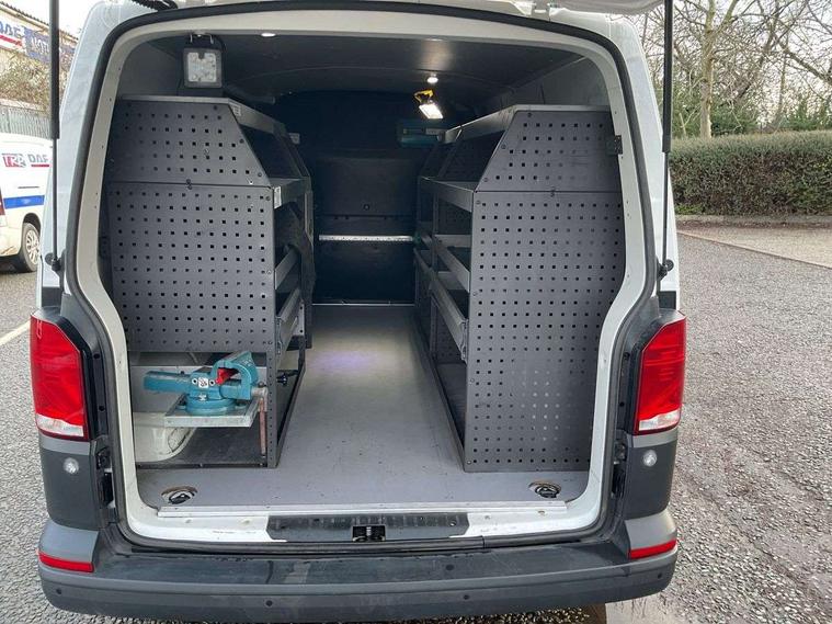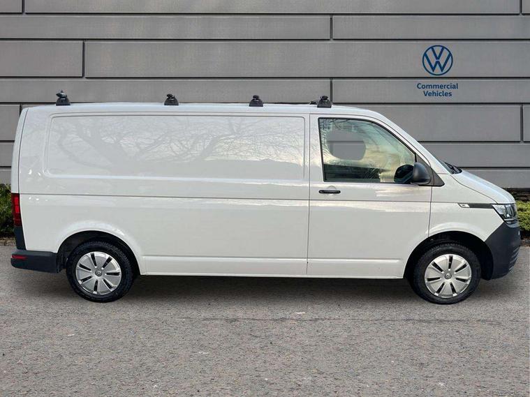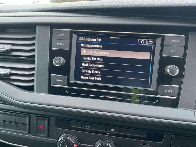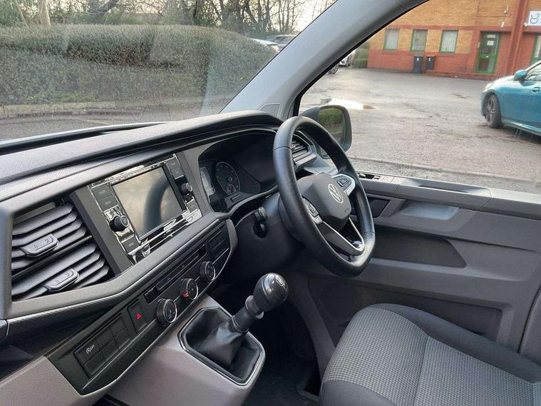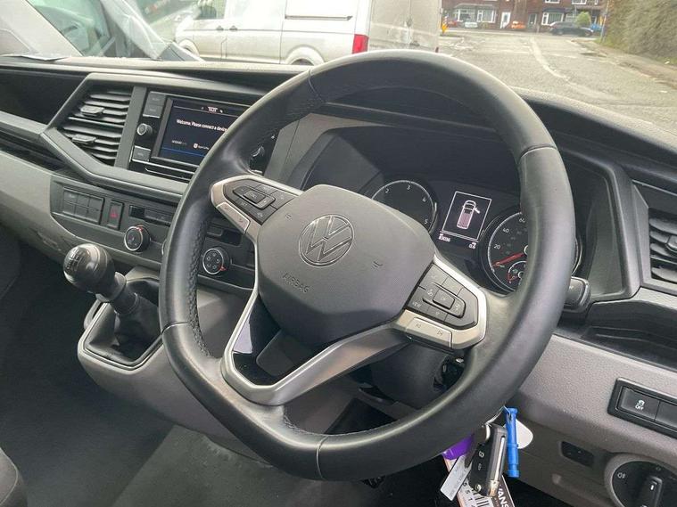 Cross wind assist, Dimmable illuminated instruments, Driver alert with Multi-function display plus, eCall emergency system, Forward collision warning front assist with autonomous emergency braking, Mobile phone interface, Multi function display plus with black and white display, 2 USB interfaces type C in dashboard, 4 speakers with 2 tweeters and 2 woofers, Composition colour radio with 6.5" touchscreen, Digital radio reception (DAB+), Volkswagen app connect, Closing rear wing door with unlatching from the inside, H7 twin halogen headlamps, Heat insulating glass (green) in cab and passenger/load compartment, Heat insulating windshield made of laminated glass, Left convex exterior mirror, Rear wing doors without window apertures, Right convex exterior mirror, Separate Daytime running lights, Transporter nameplate on the rear fender, Unpainted radiator grille with 2 chrome trims, 3 spoke leather wrapped multi function steering wheel, Comfort headliner in cab, hardboard roof trim in passenger and load compartment, Dust/pollen filter, Folding grab handles on roof frame, Front and rear left without window closed side panel in load compartment, Front seats on the right in 1st row of seat, Heavy duty tool kit and jack, High partition, Interior plastic loading edge protection, LED Interior lighting in load and passenger compartment, Standard lower part dashboard in palladium, Without refrigerant, Without right side window apertures in passenger and load compartment, Non smoker pack - Transporter, 3 point height adjustable seat belts on outer seats cab with electric pretensioners, Driver and front passenger airbag with front passenger airbag deactivation, Warning buzzer and light for driver and front passenger seat belt not fastened, Without child safety lock in passenger compartment, Electronic immobiliser, Wheel bolts without wheel locks, 16" chassis with 16" brake system, Diesel particulate filter, Electronic stability control, ABS, ASR with deactivation button, hill start assist and brake assist system, Standard anti drum measures, Start/stop system with regenerative breaking,
